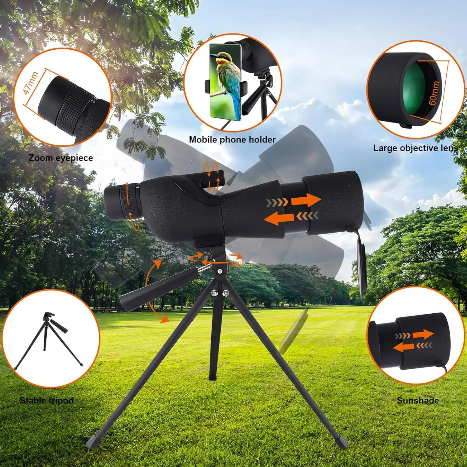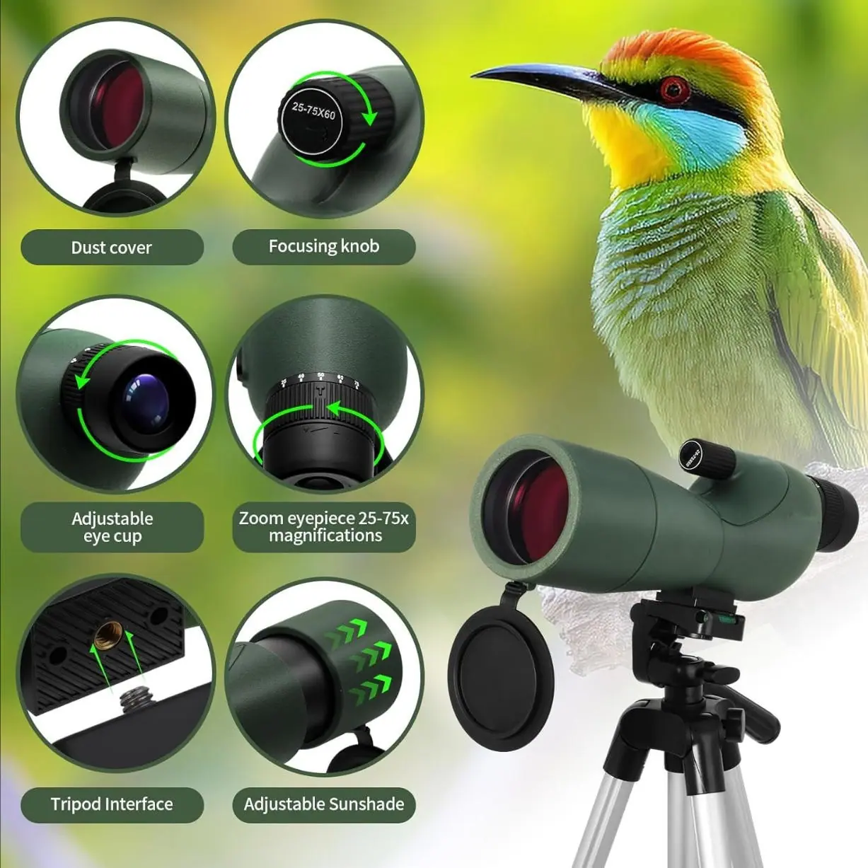 Luneta Terrestre HD 25-75x60mm para Adultos, Observação com Tripé, Ideal para Observação de Aves, Tiro, Caça, Cenários da Vida Selvagem, Aventuras ao Ar Livre e Exploração da Natureza, Telescópio Monocular de Longa Distância de Alta Definição | Clara| Durável| Presente de Festival