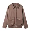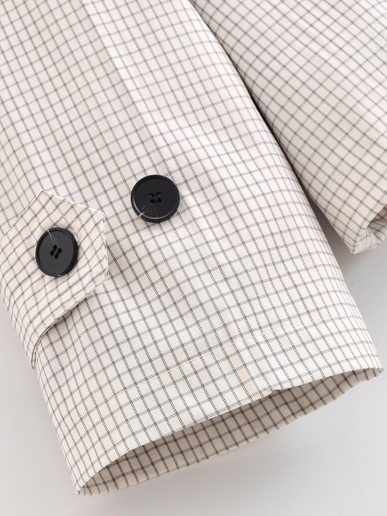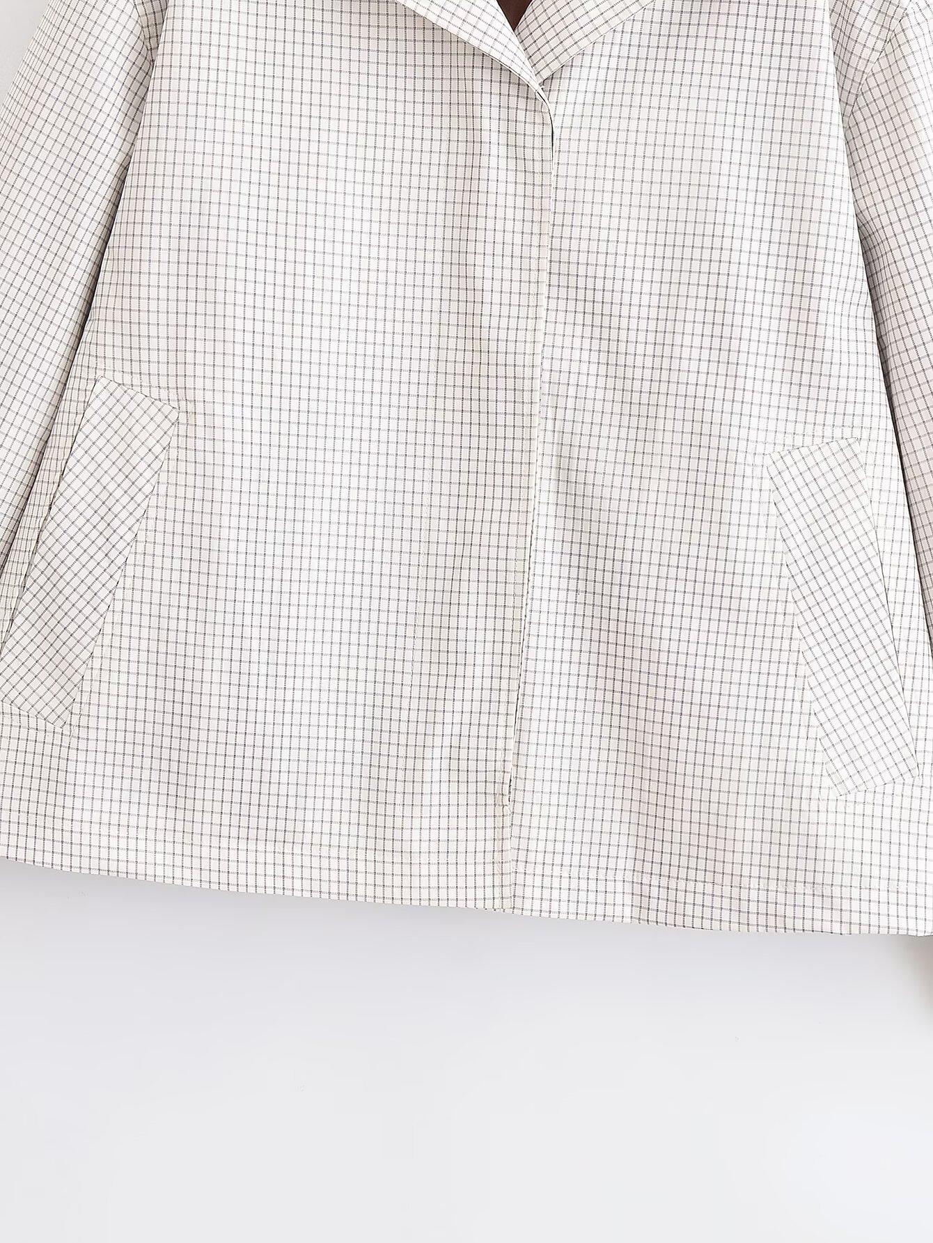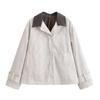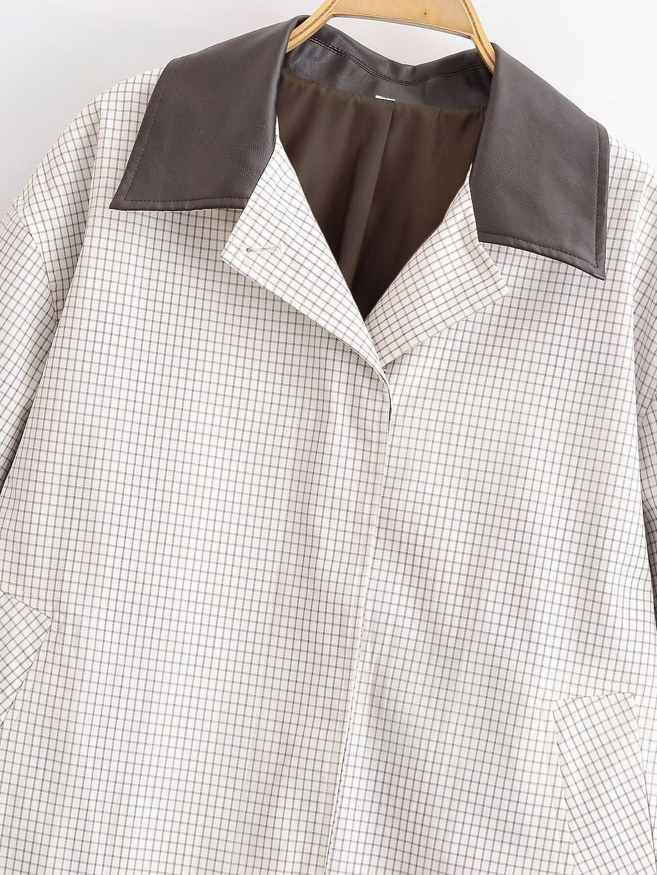 Moda feminina transfronteiriça outono/inverno 2025 estilo europeu e americano jaqueta trench coat xadrez curta com lapela PU color block mulheres A711681