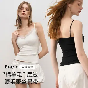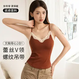 Outono e inverno doce estilo ins renda laço decote quadrado regata escovada feminina com sutiã embutido confortável versátil quente camisola