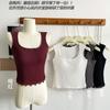 Nova Regata Canelada Decote V Renda Francesa Alça Fina Feminina Quente Modeladora Amigável à Pele Escovada