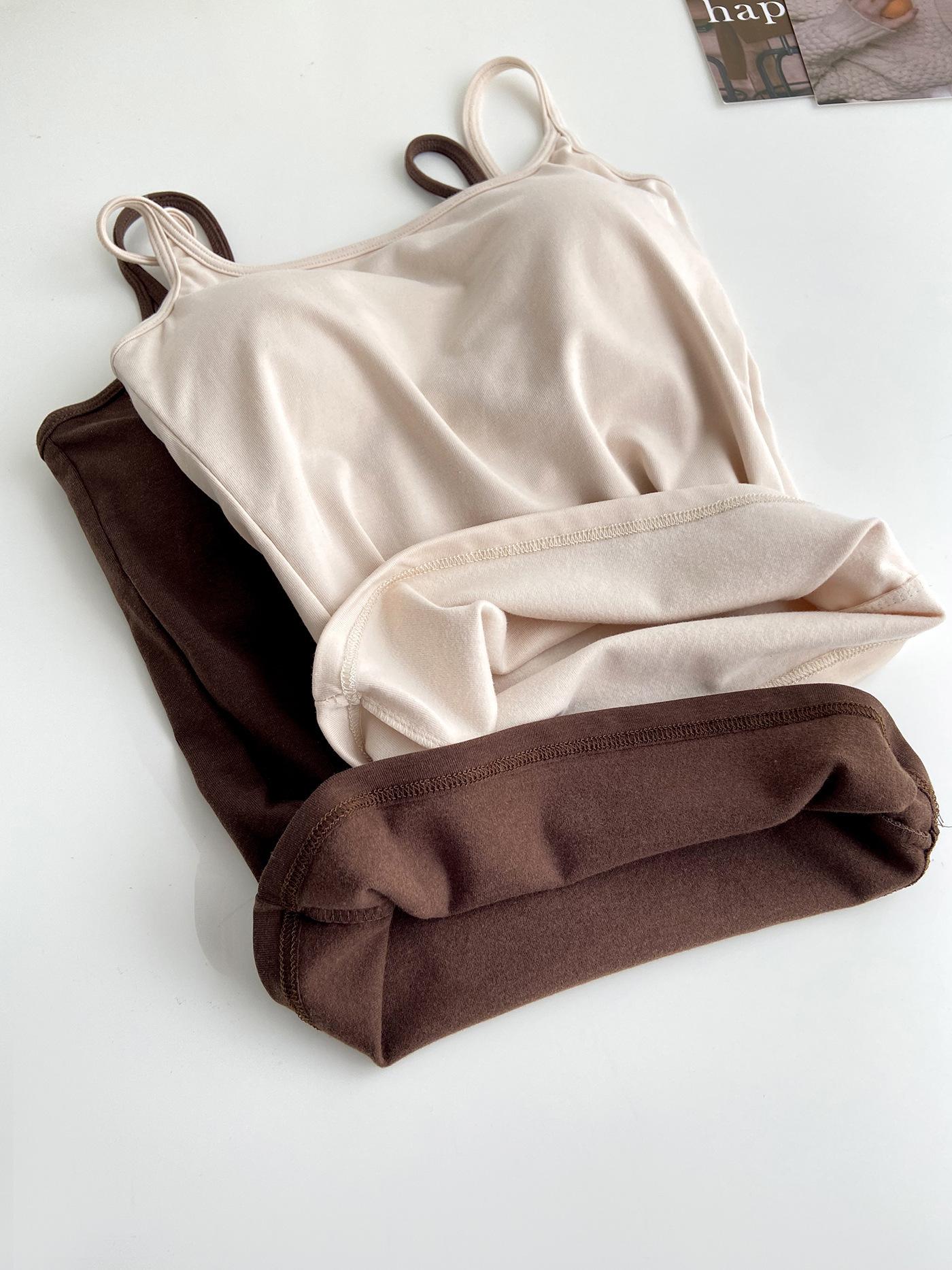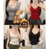 Outono e inverno lã quente integrada com bojo regata de alça fina roupa íntima moda feminina caimento slim emagrecedor pode ser usada por fora colete longo