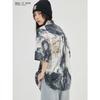 Camiseta tie-dye feminina de verão fina solta retrô estilo Hong Kong chique manga curta camiseta feminina senso de design nicho chique top