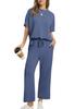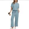 Compre Conjunto Feminino Casual de Moda Transfronteiriça Europeia e Americana 2025 Top de Manga Curta de Cor Sólida Calças Casuais Cropped Calças de Perna Larga no atacado no Joom.pro