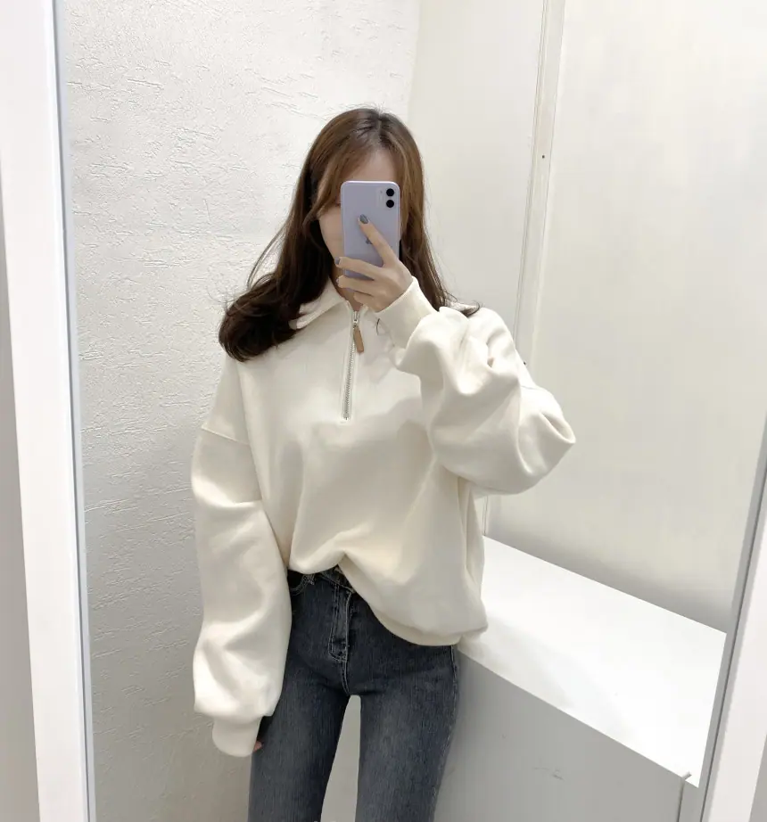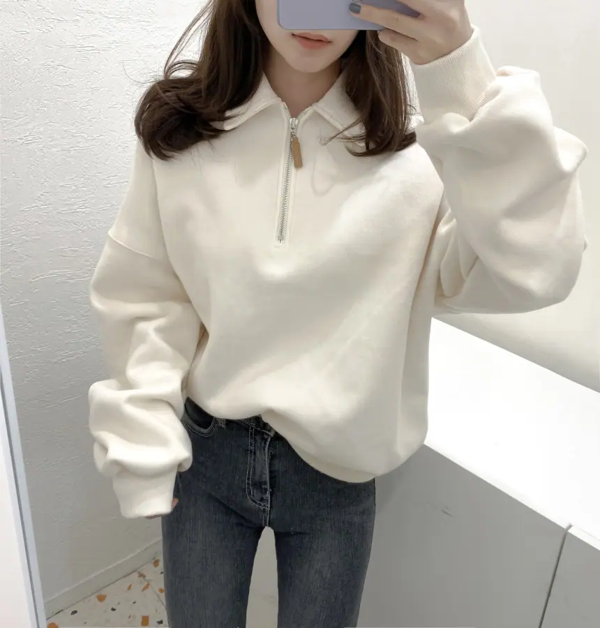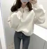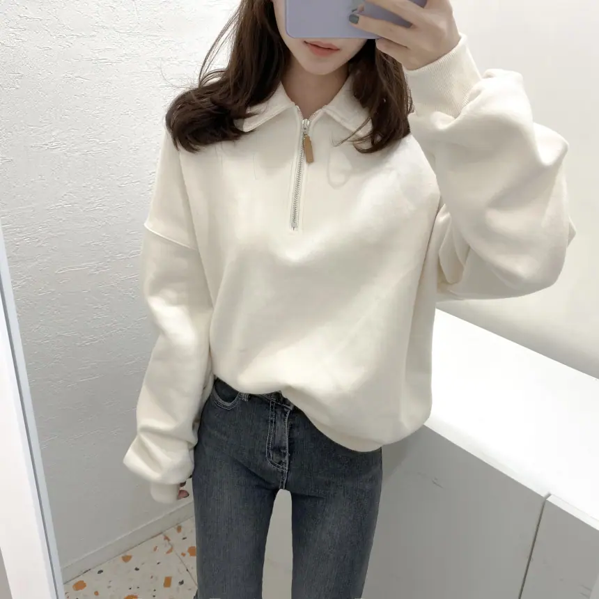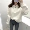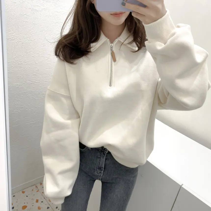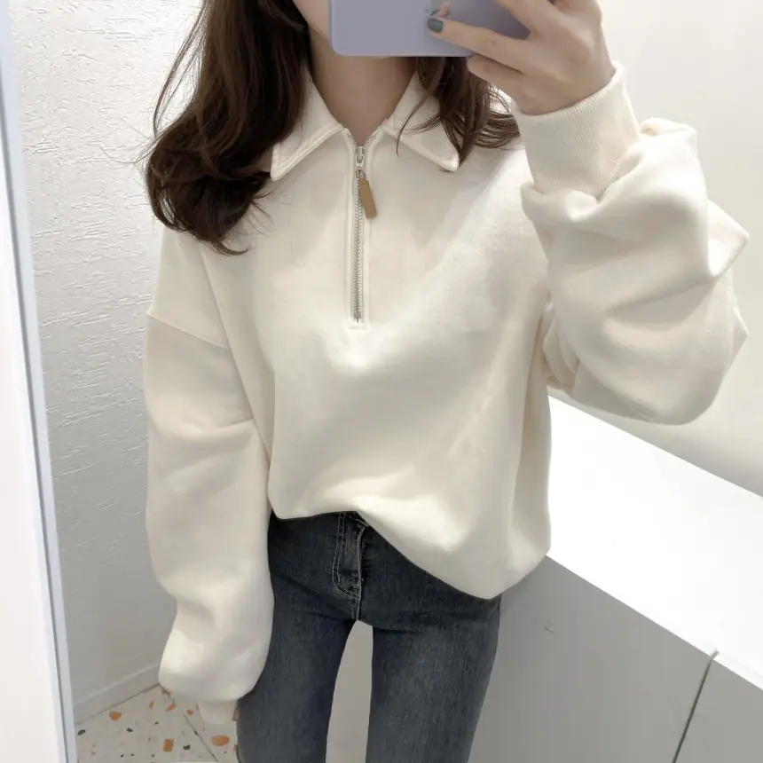Enviado Moletom Feminino de Lã Sólido com Gola Polo e Manga Longa