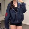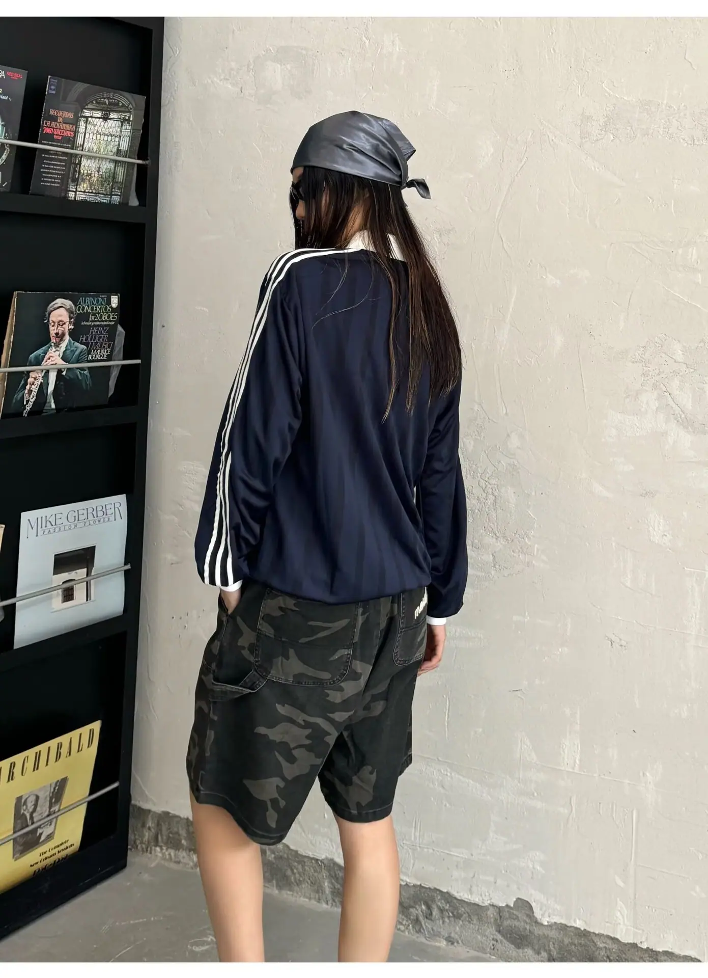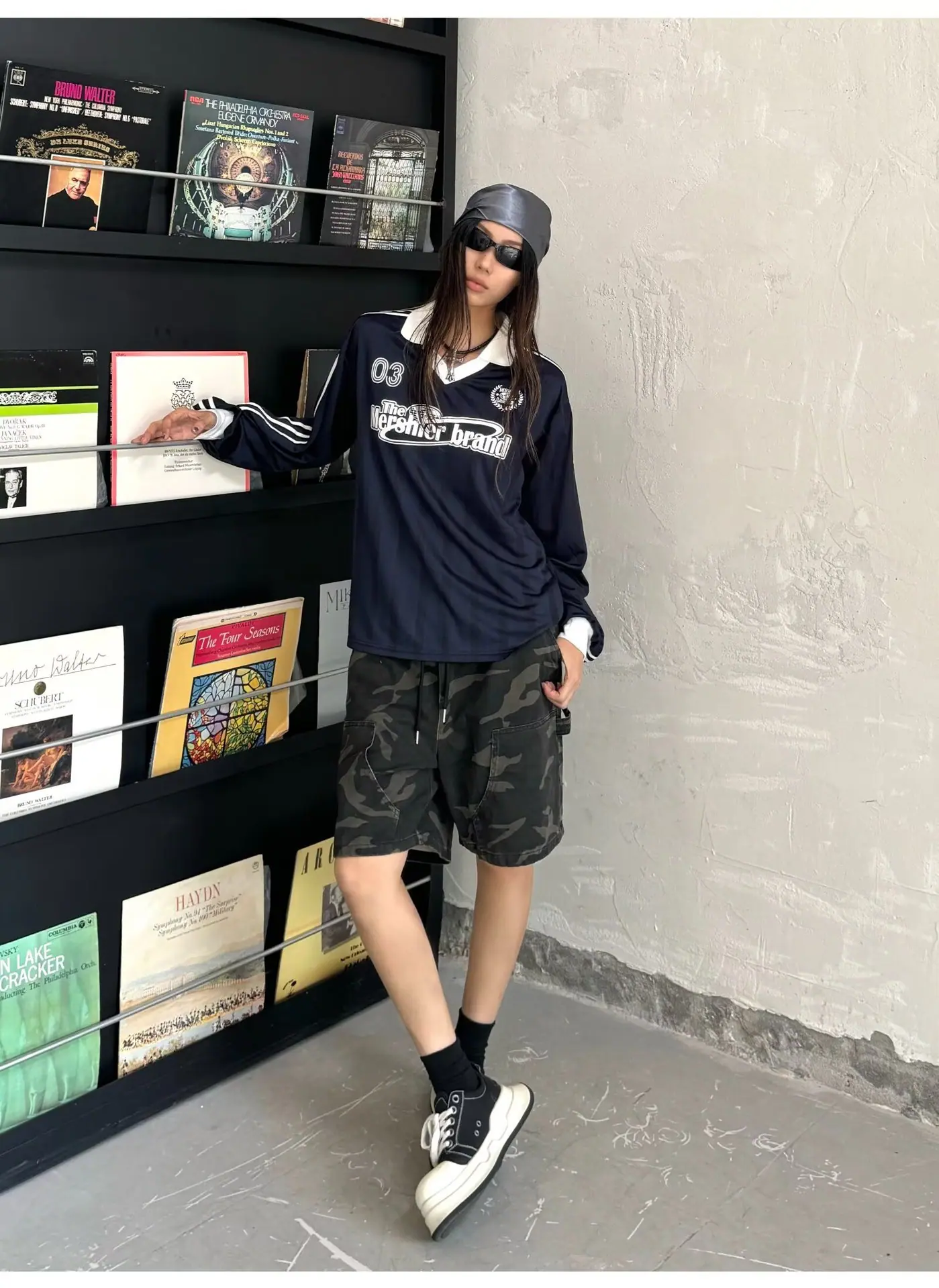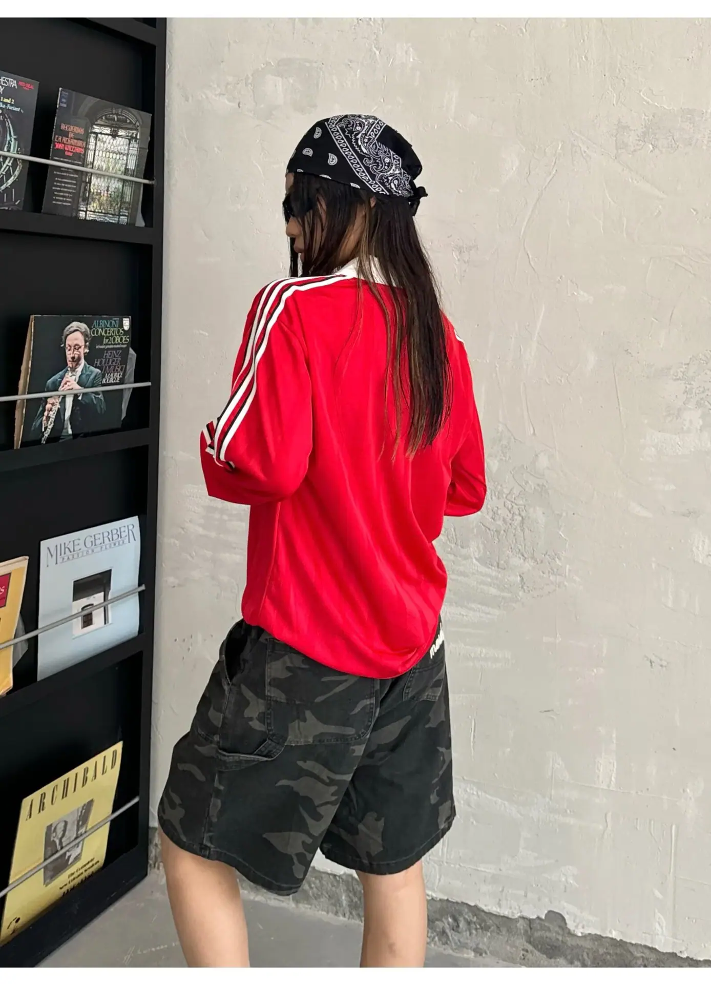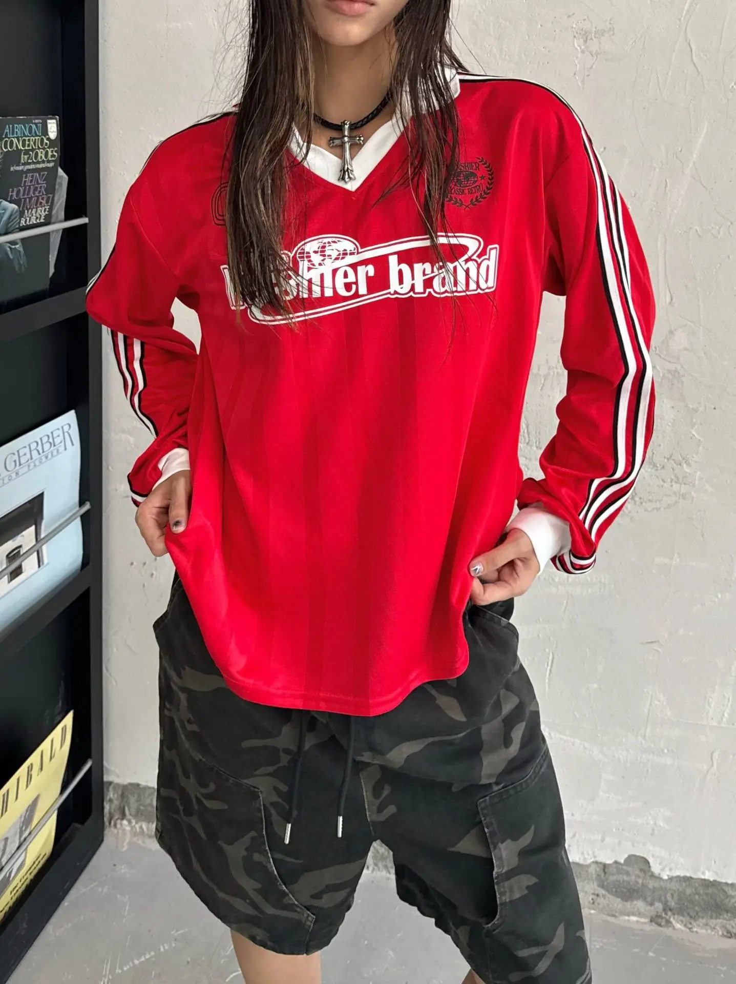 Moletom Casual Retrô Americano de Primavera e Outono Listrado Decote V Estampa de Letras Masculino e Feminino Solto Versátil Manga Longa Jersey Tendência