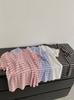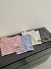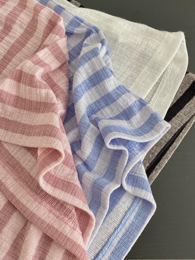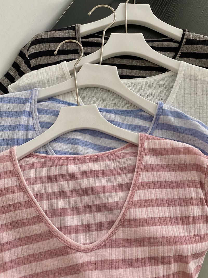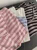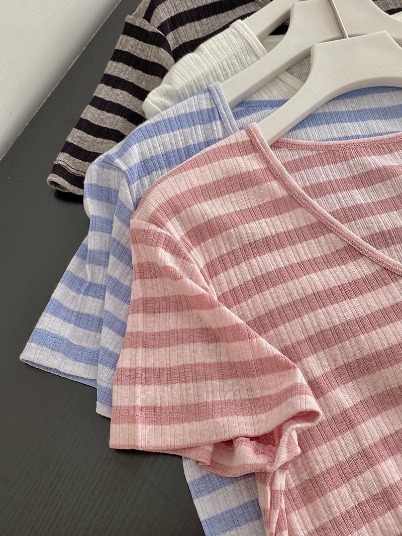 2025 Primavera/Verão Versão Coreana Nova Simples Diária Deslocamento Versátil Decote em V Listrada Manga Curta Camiseta Top Feminino Atacado Transfronteiriço