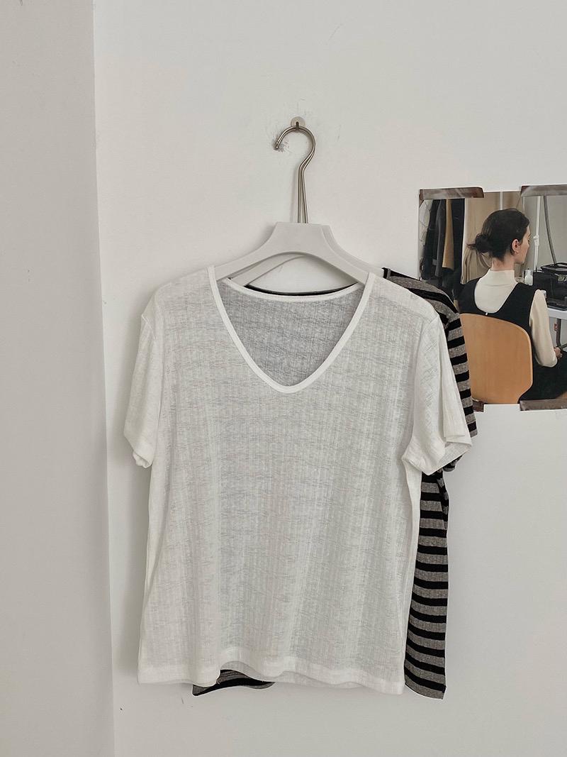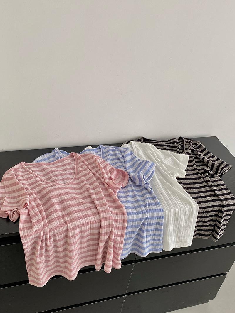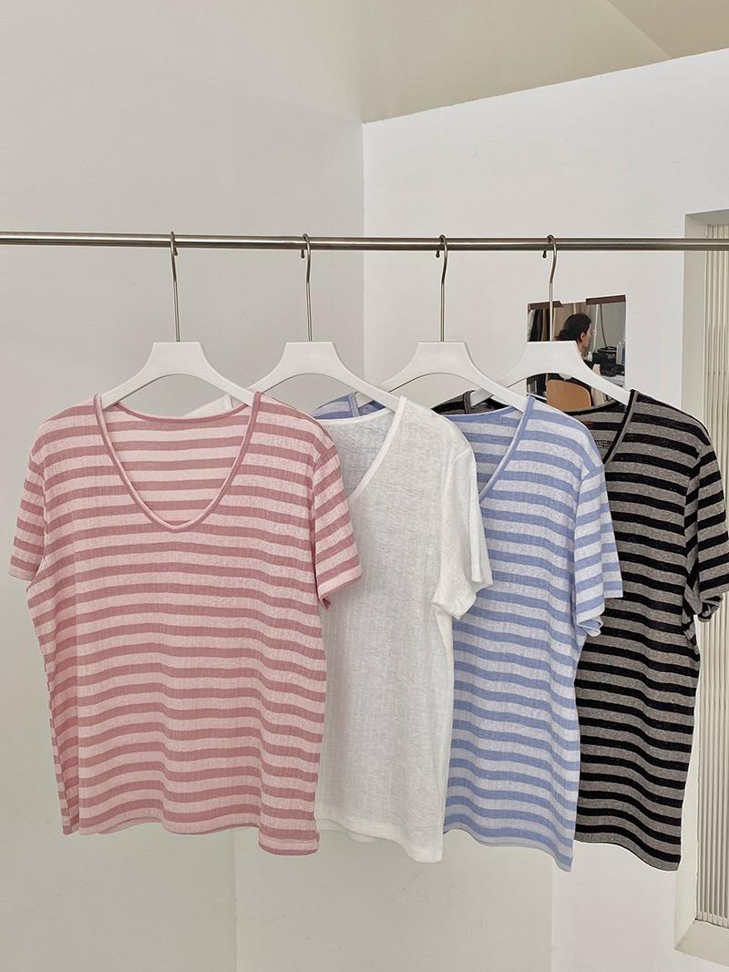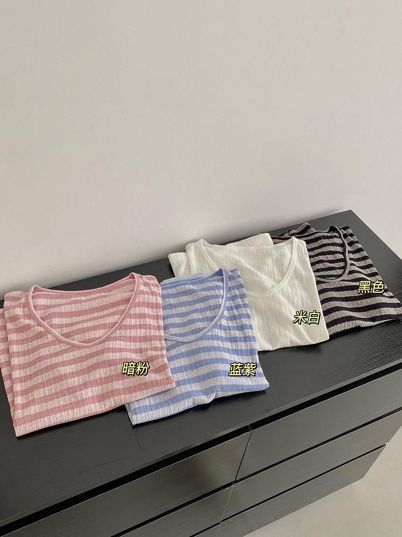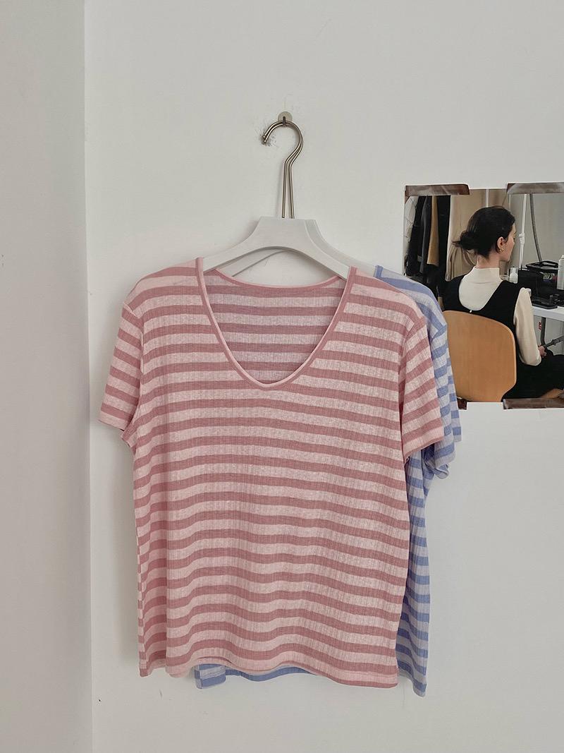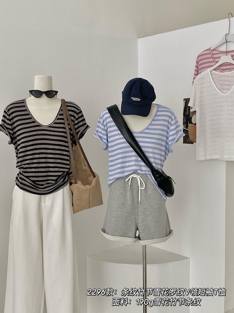 Compre 2025 Primavera/Verão Versão Coreana Nova Simples Diária Deslocamento Versátil Decote em V Listrada Manga Curta Camiseta Top Feminino Atacado Transfronteiriço no atacado no Joom.pro