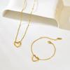 Colar Pulseira Coração Vazado de Aço Inoxidável para Mulheres Ins Design Simples Japonês e Coreano Conjunto de Corrente para Clavícula