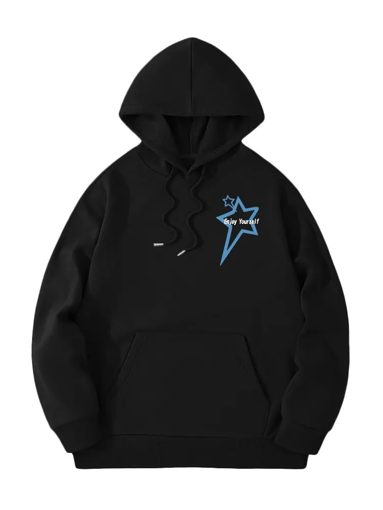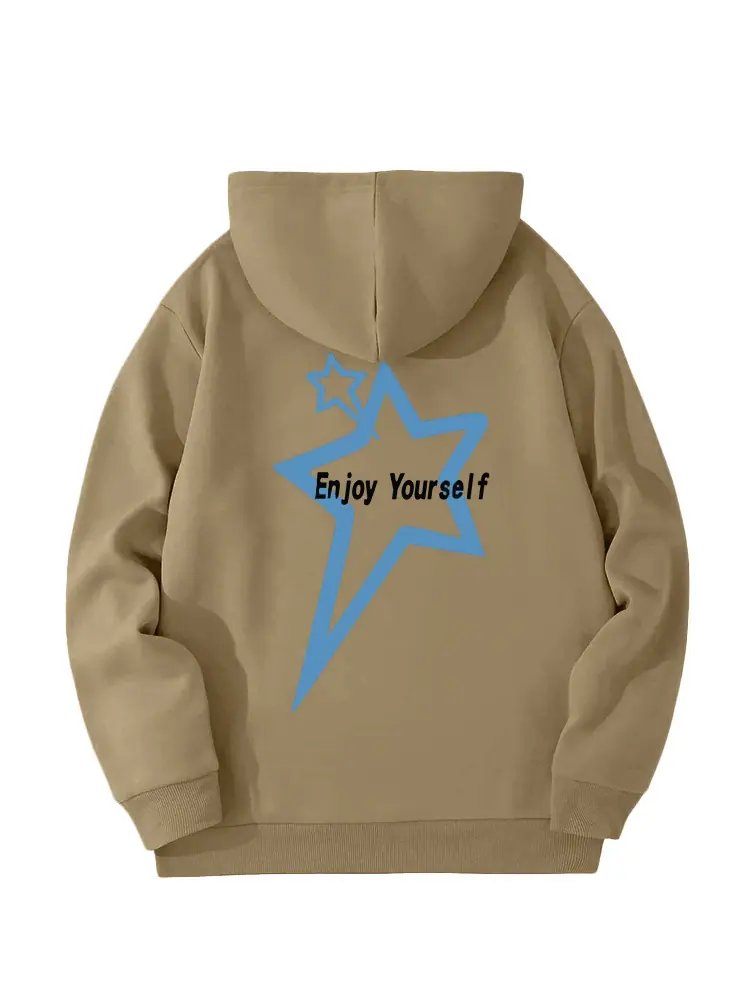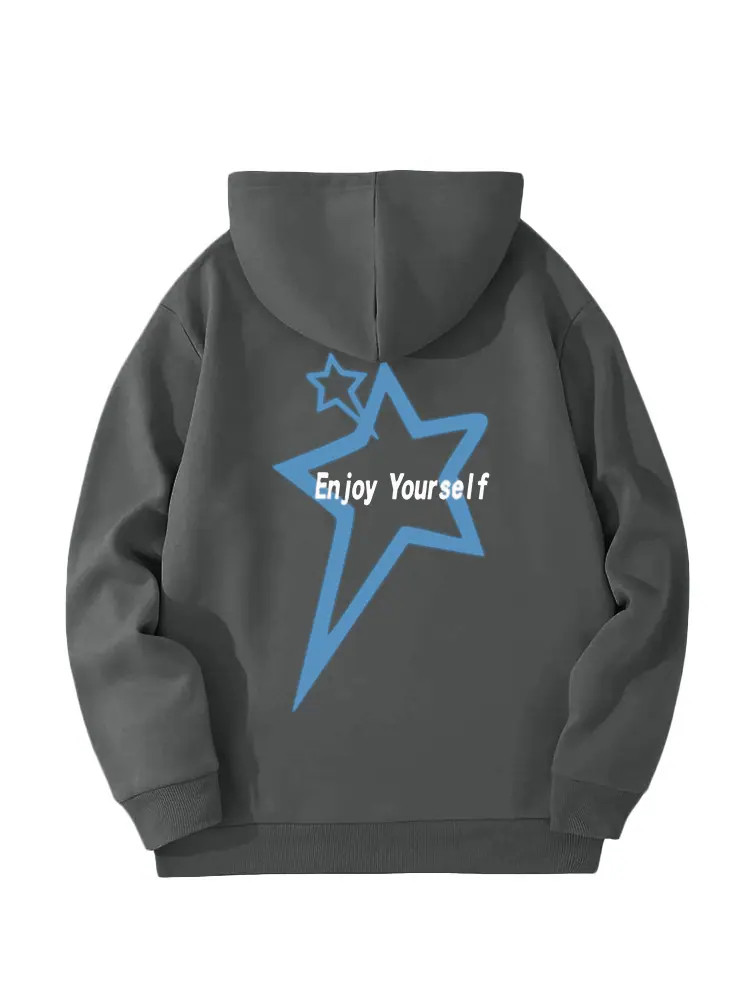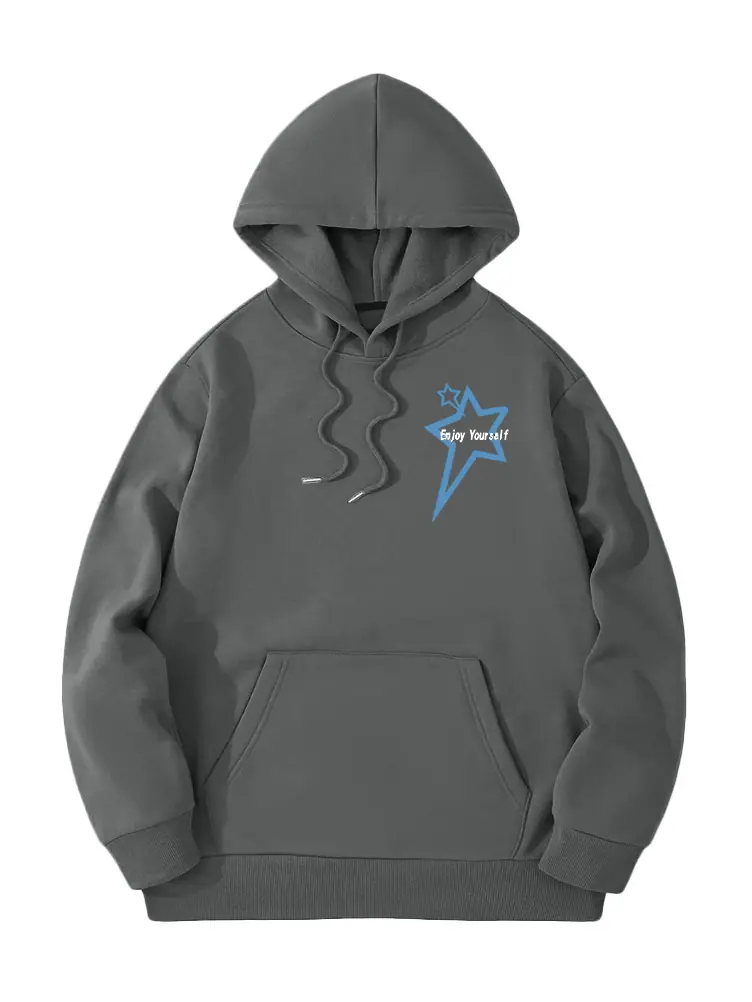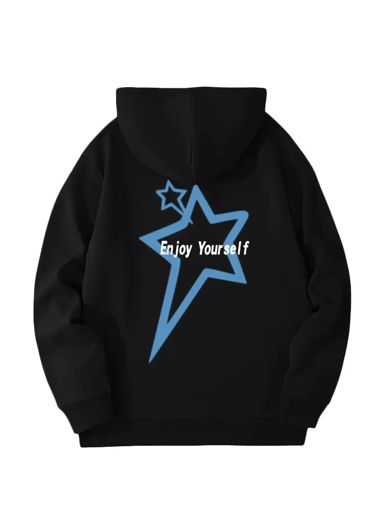 Moletom de Lã Estilo Europeu e Americano Estampa de Slogan de Letra Bolso Canguru Cordão Moletom com Capuz Estampado Oversize