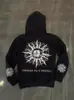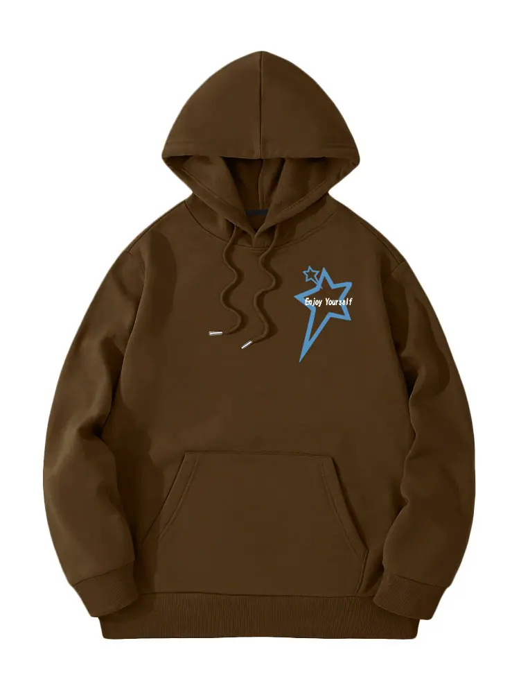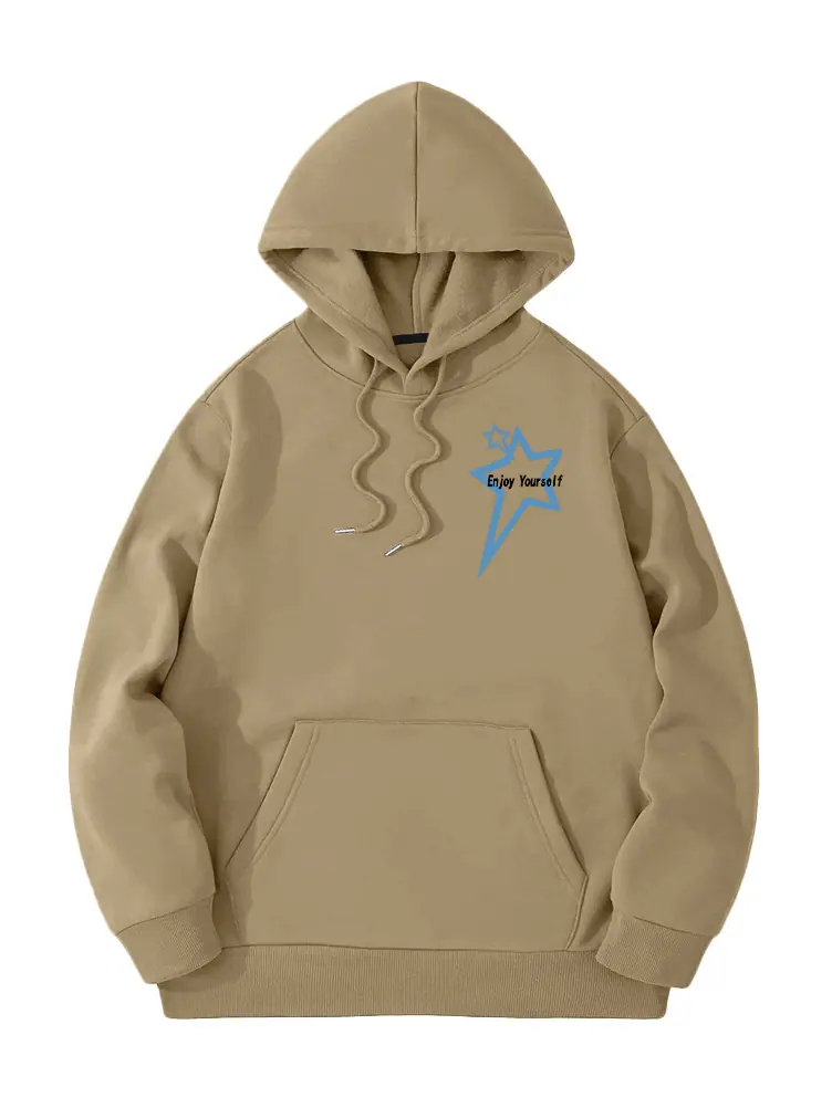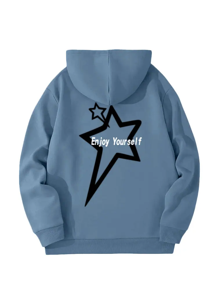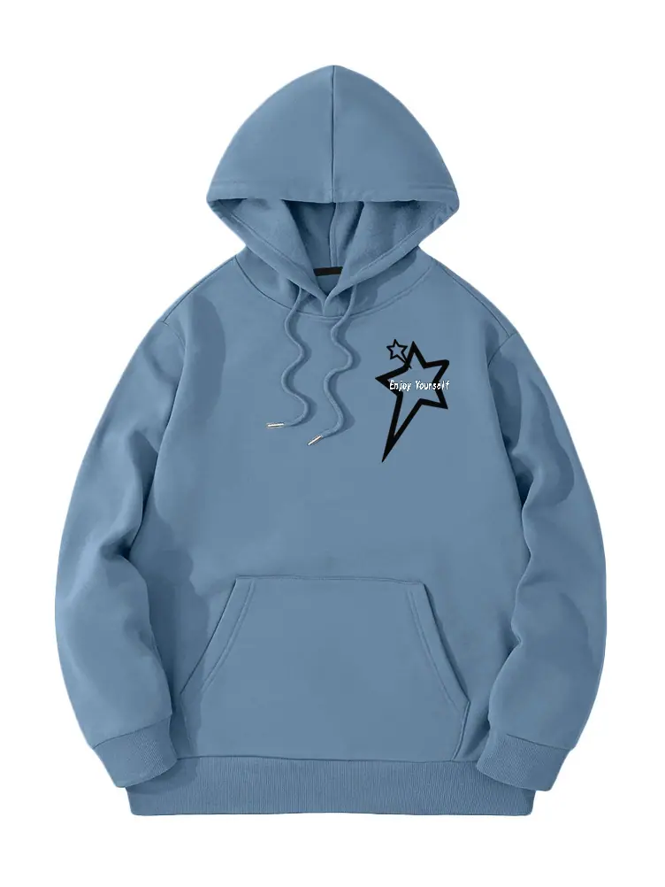 Moletom de Lã Estilo Europeu e Americano Estampa de Slogan de Letra Bolso Canguru Cordão Moletom com Capuz Estampado Oversize