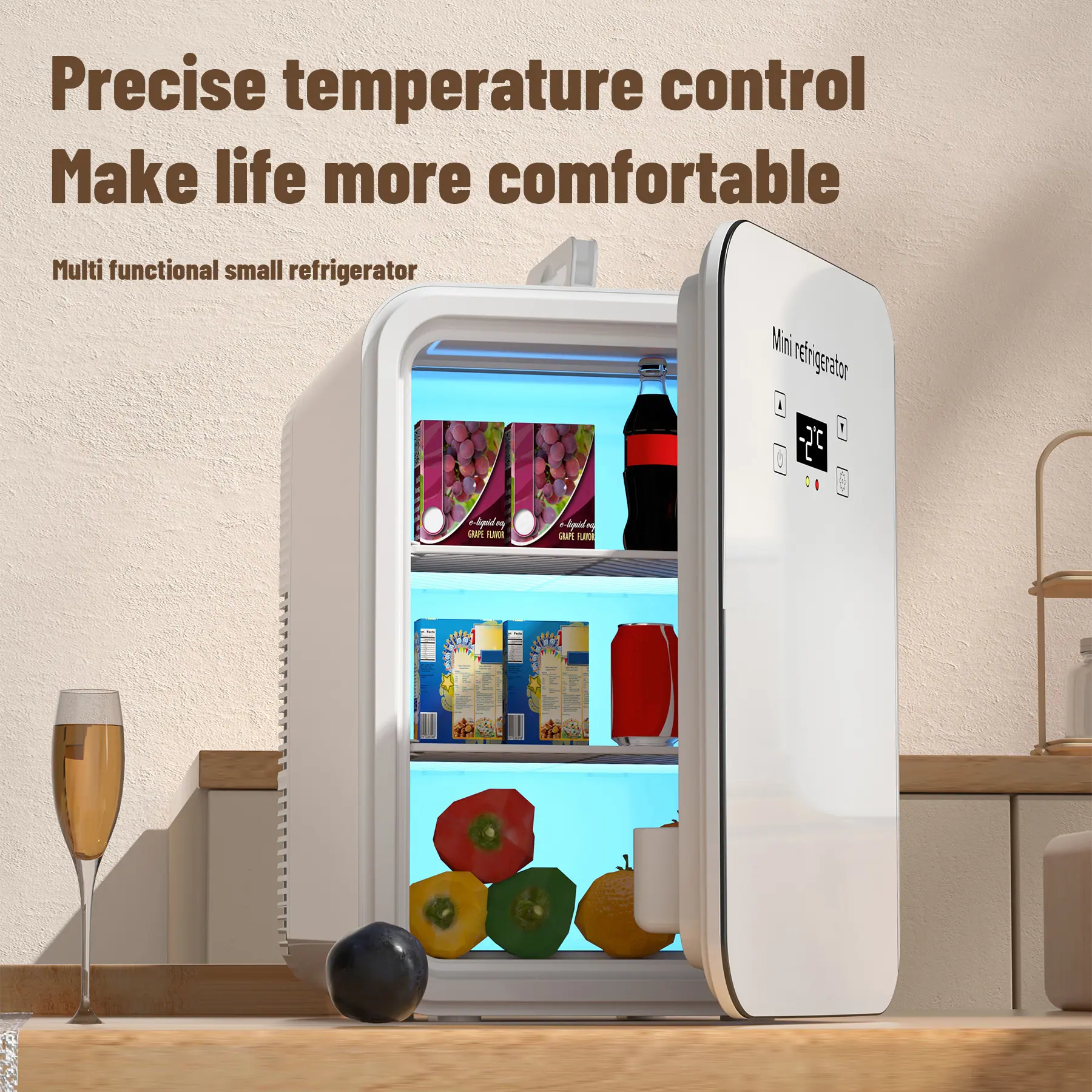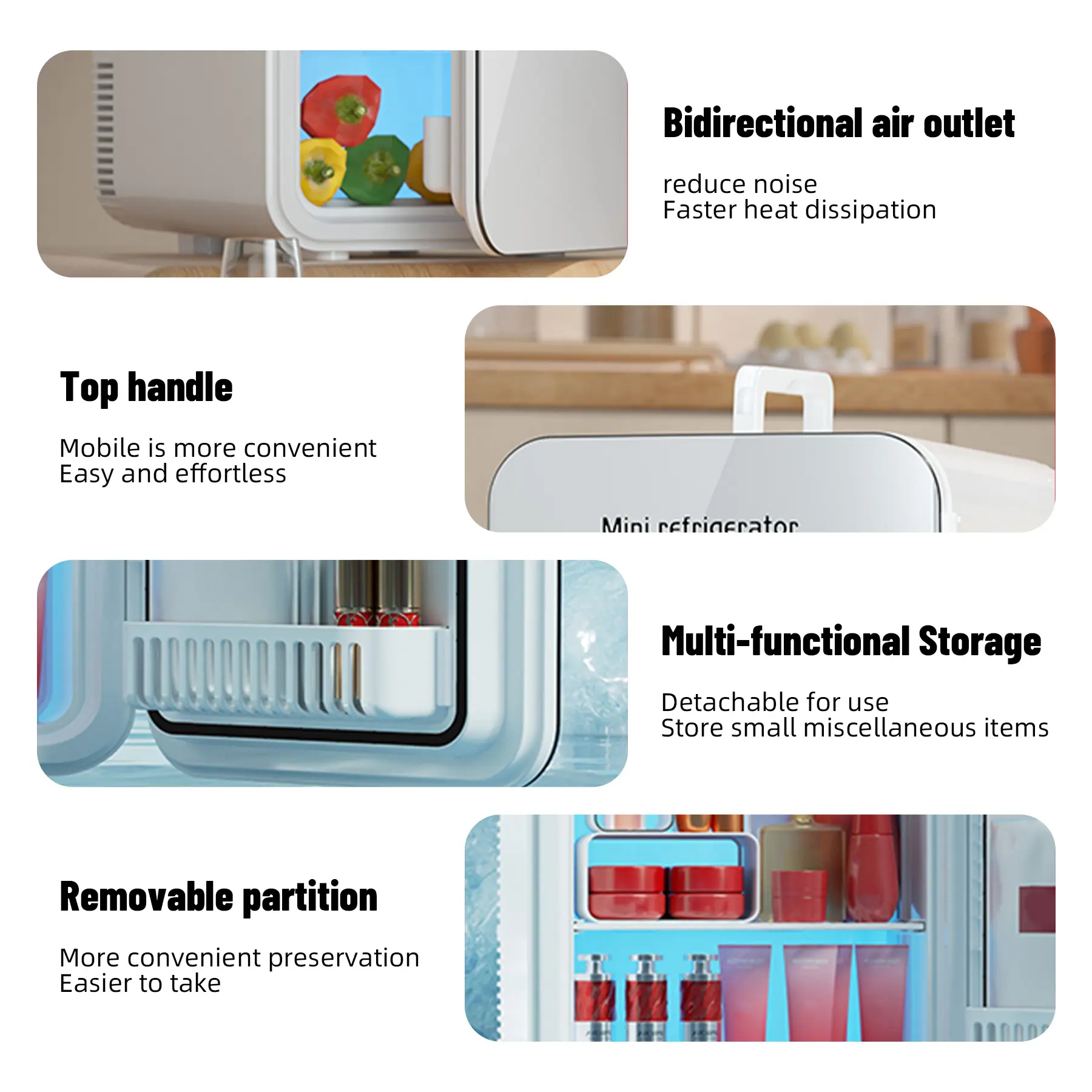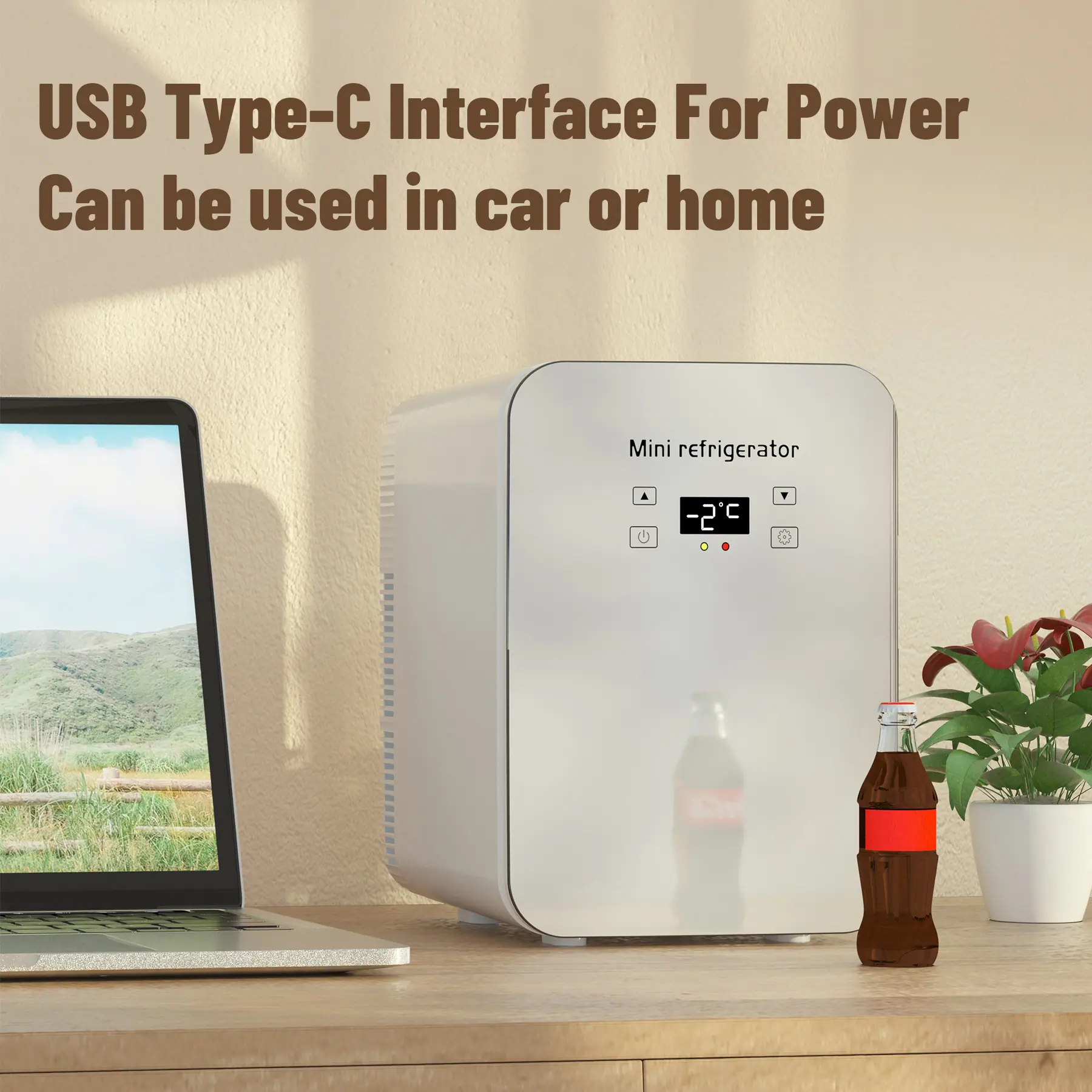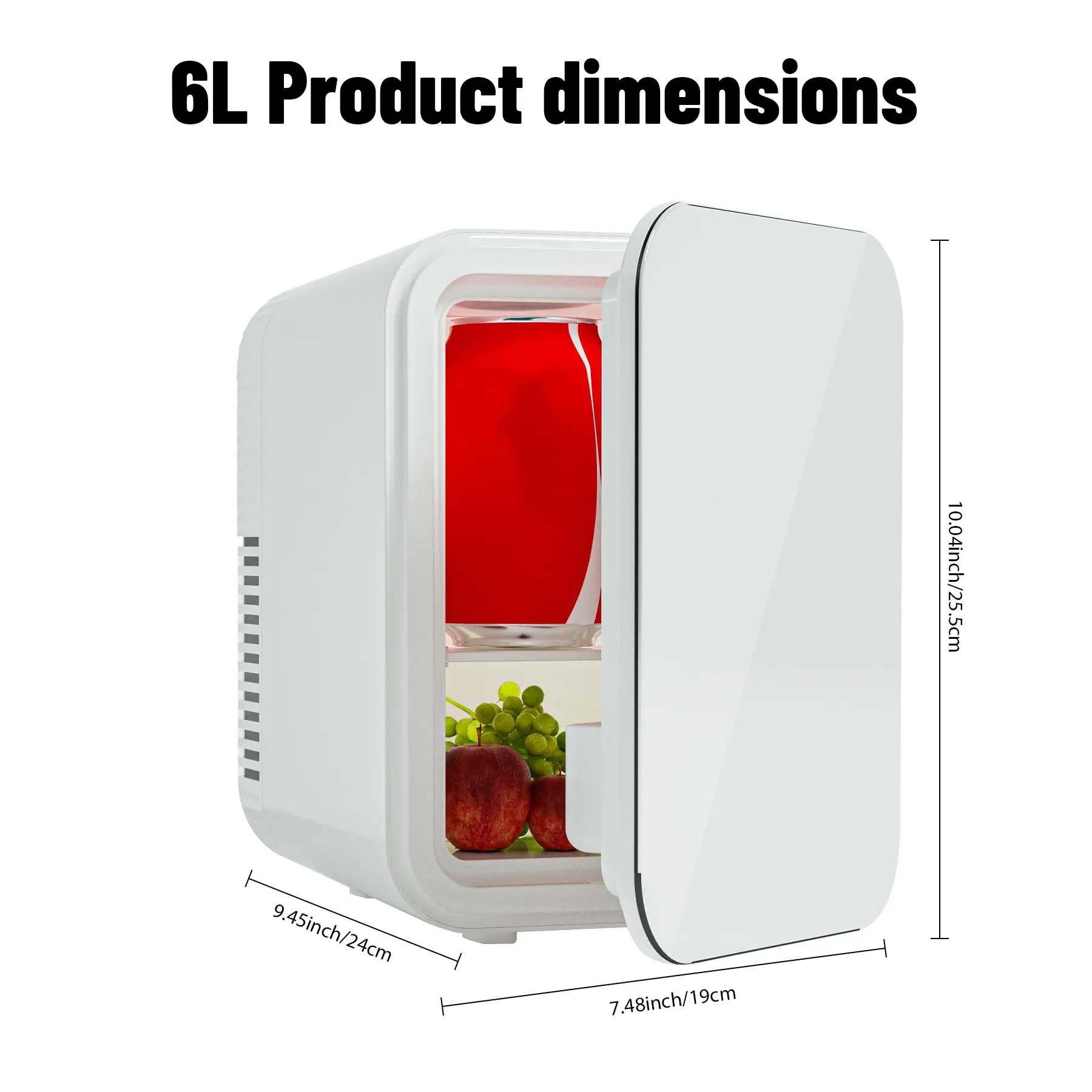 Mini Frigorífico 6 Litros/ 6 Latas, Alimentação USB Tipo-C, Cooler e Aquecedor Portátil para Quartos, Casa, Carro, Viagem/Cuidados com a Pele, Cosméticos/Frutas e Bebidas, Branco