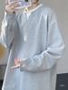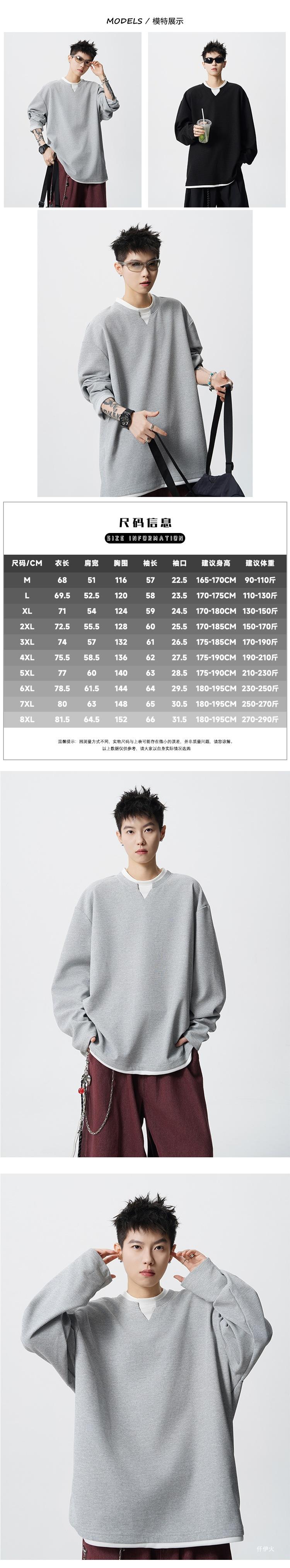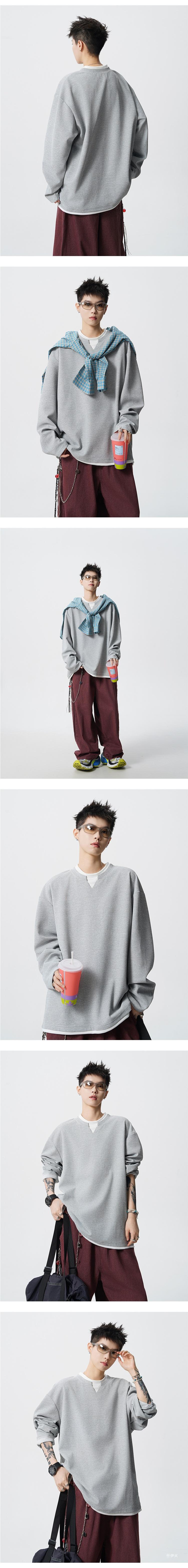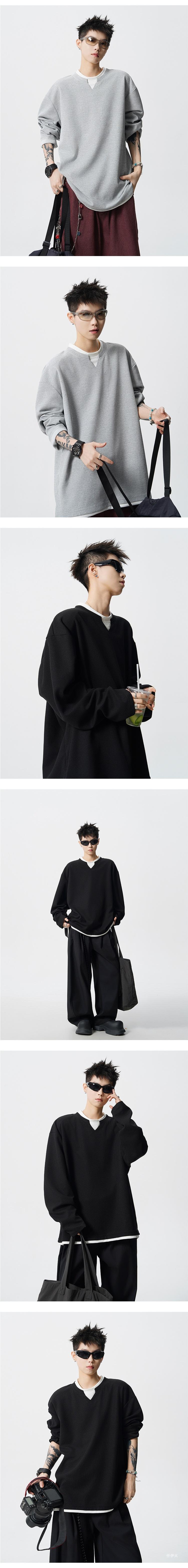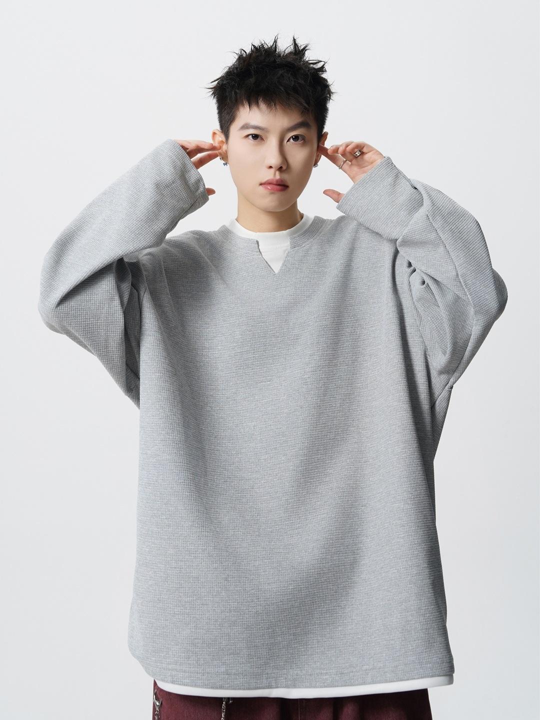 Camiseta Masculina Outono/Inverno Plus Size Decote V Tricô Waffle Manga Longa Aparência de Duas Peças Camiseta Base Camiseta Top Marca de Tendência Masculina