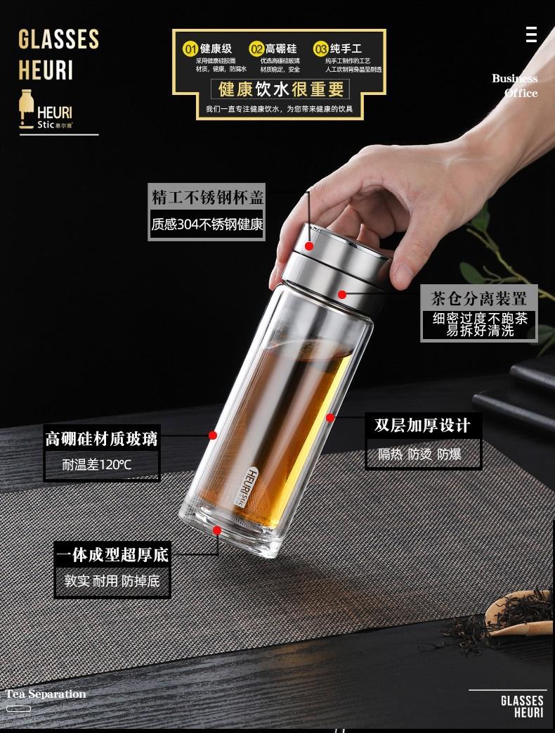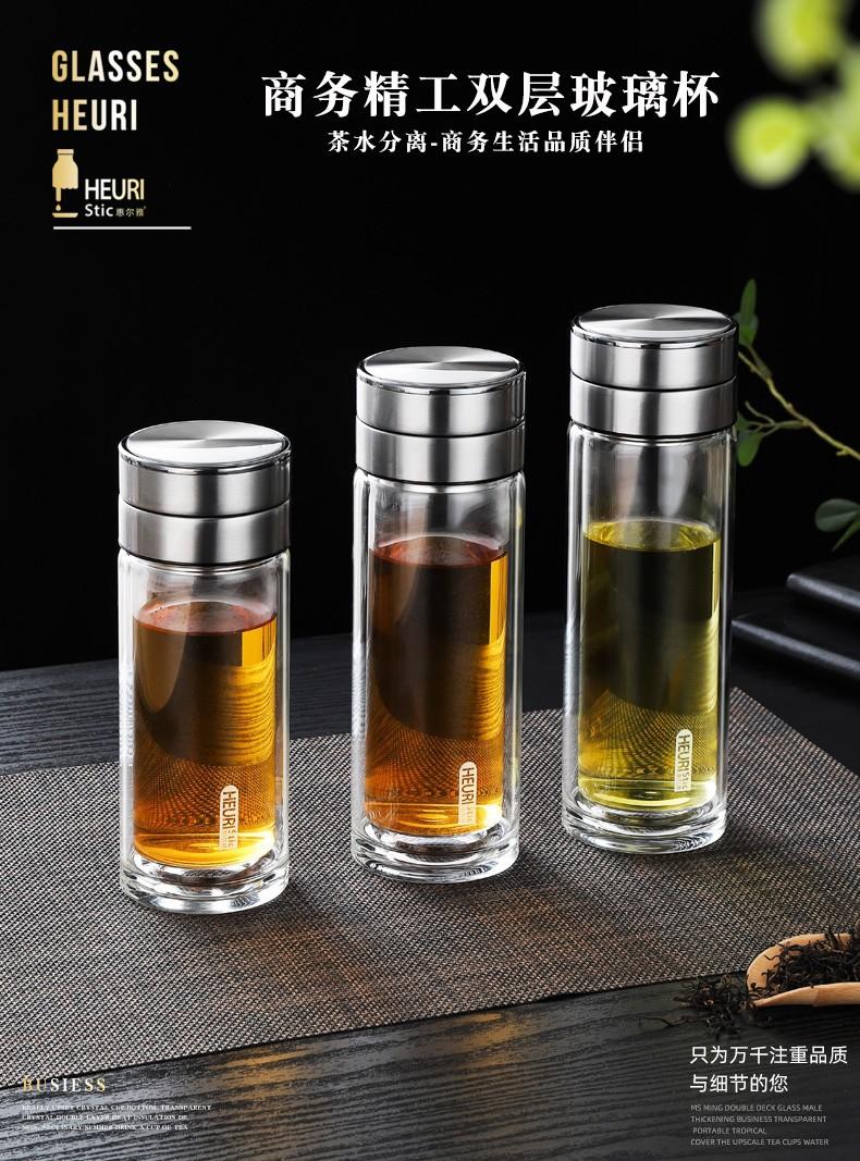 Compre Copo para Chá Huierya com Separação de Água Vidro Borossilicato Alto de Camada Dupla Espessado Copo de Chá Masculino Copo Especial Portátil lo no atacado no Joom.pro