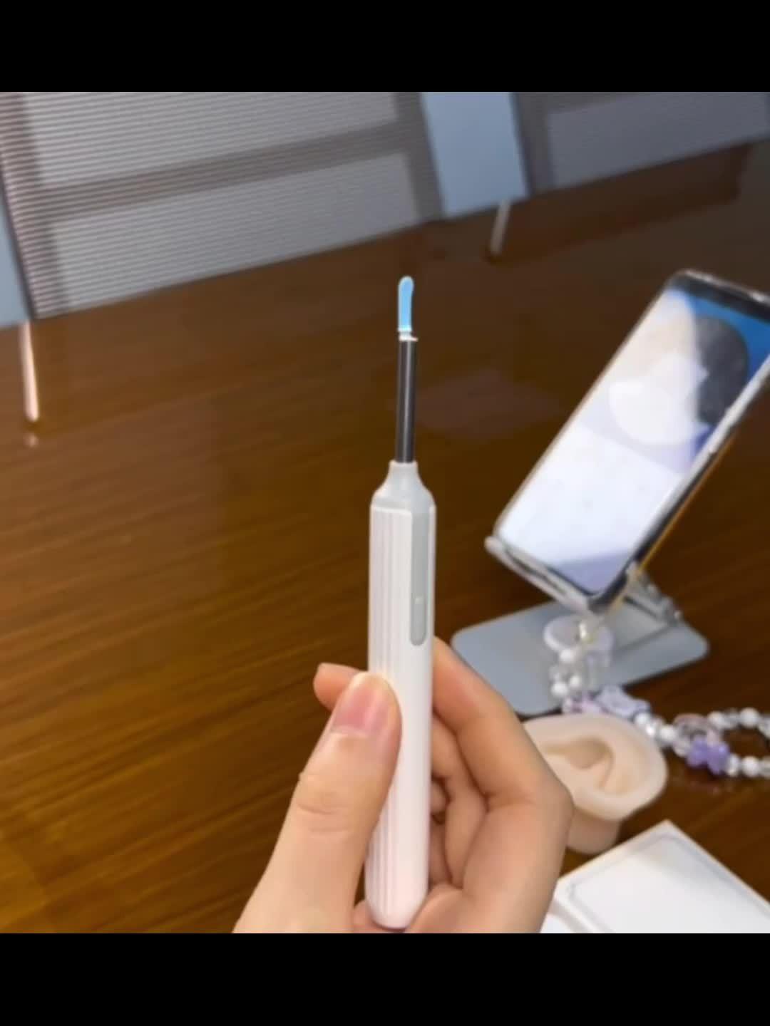 Combina um instrumento de cuidado auricular com uma câmera, oferecendo uma maneira higiênica e conveniente de limpar seus ouvidos.