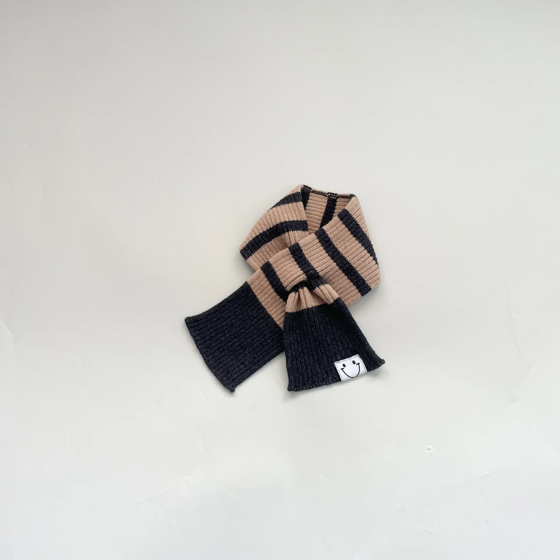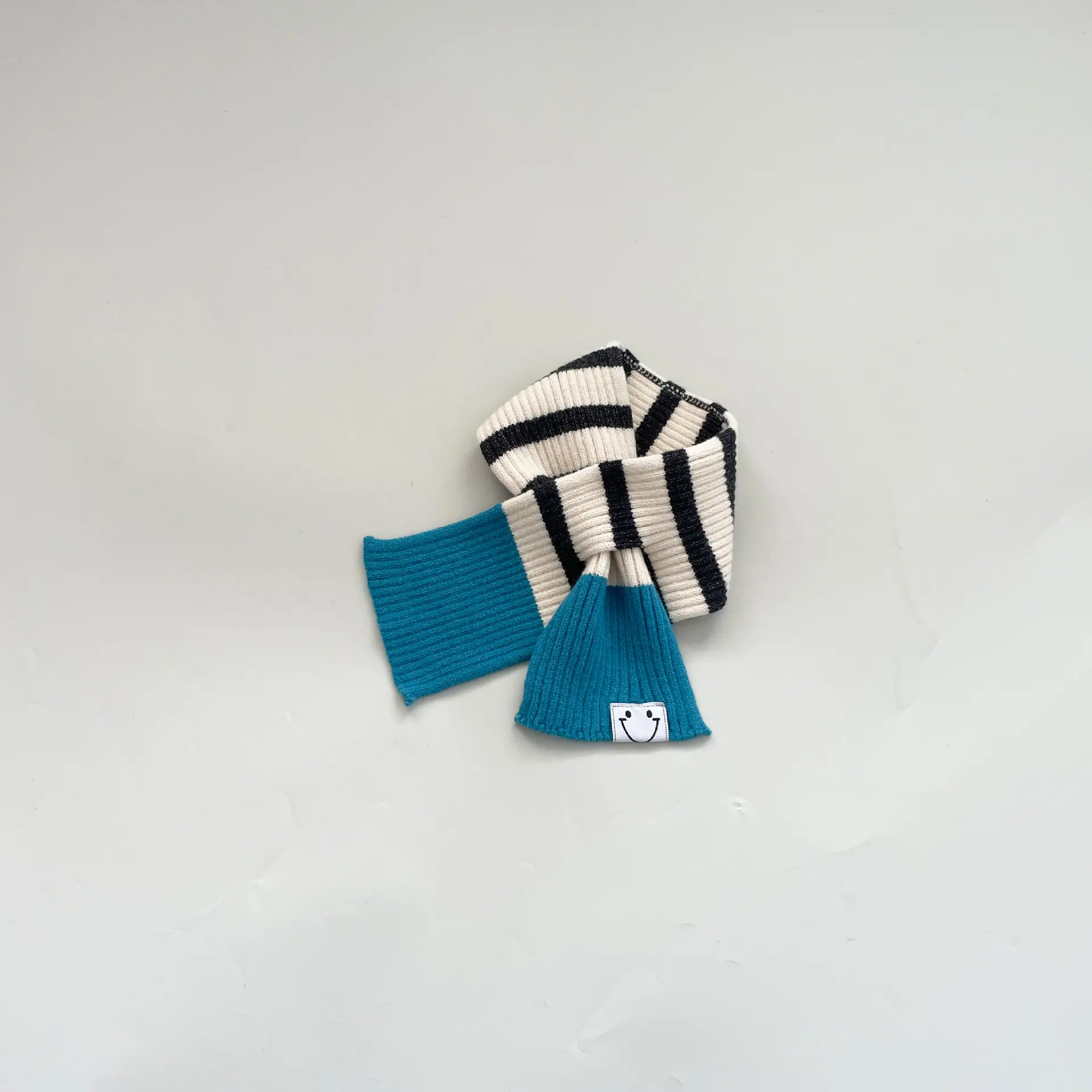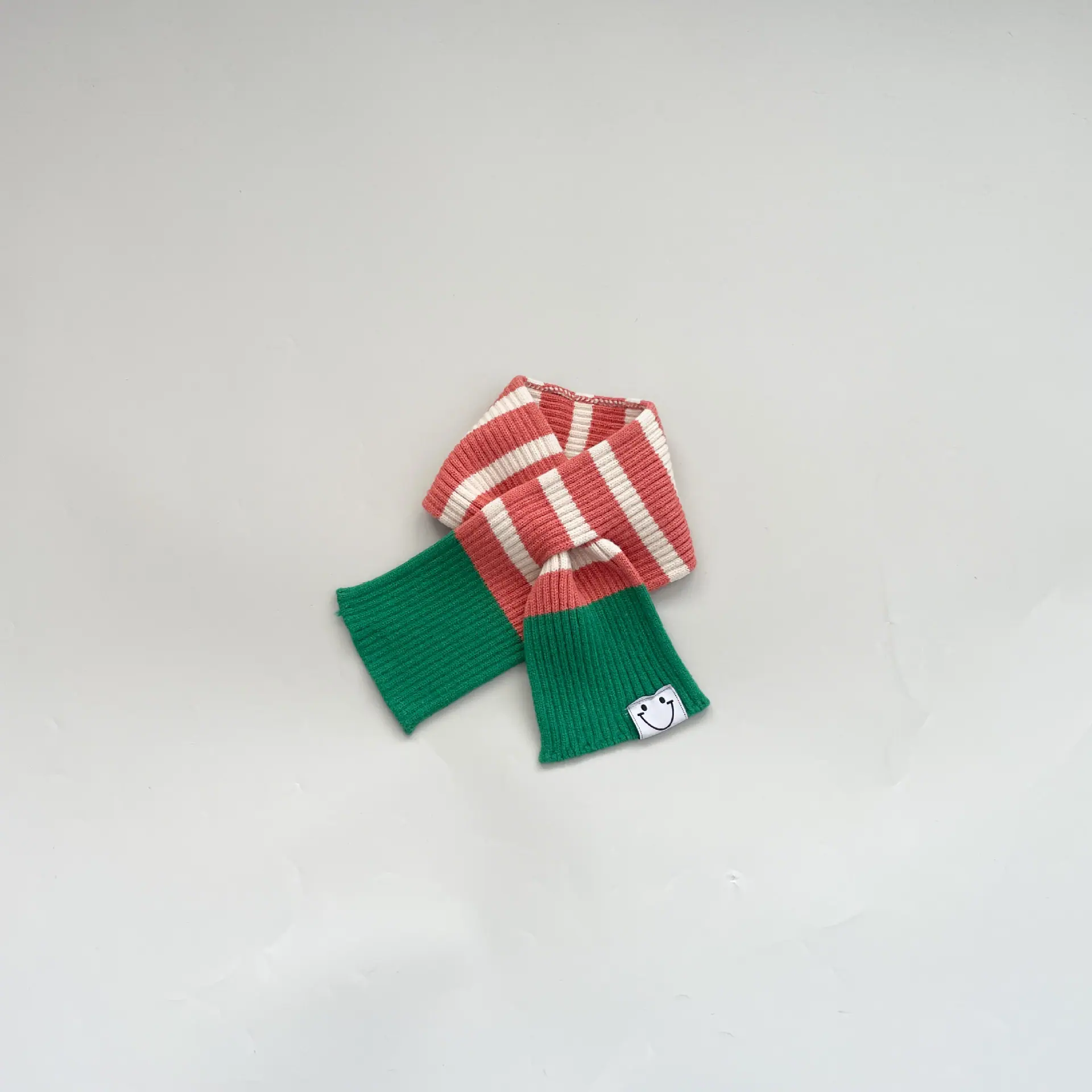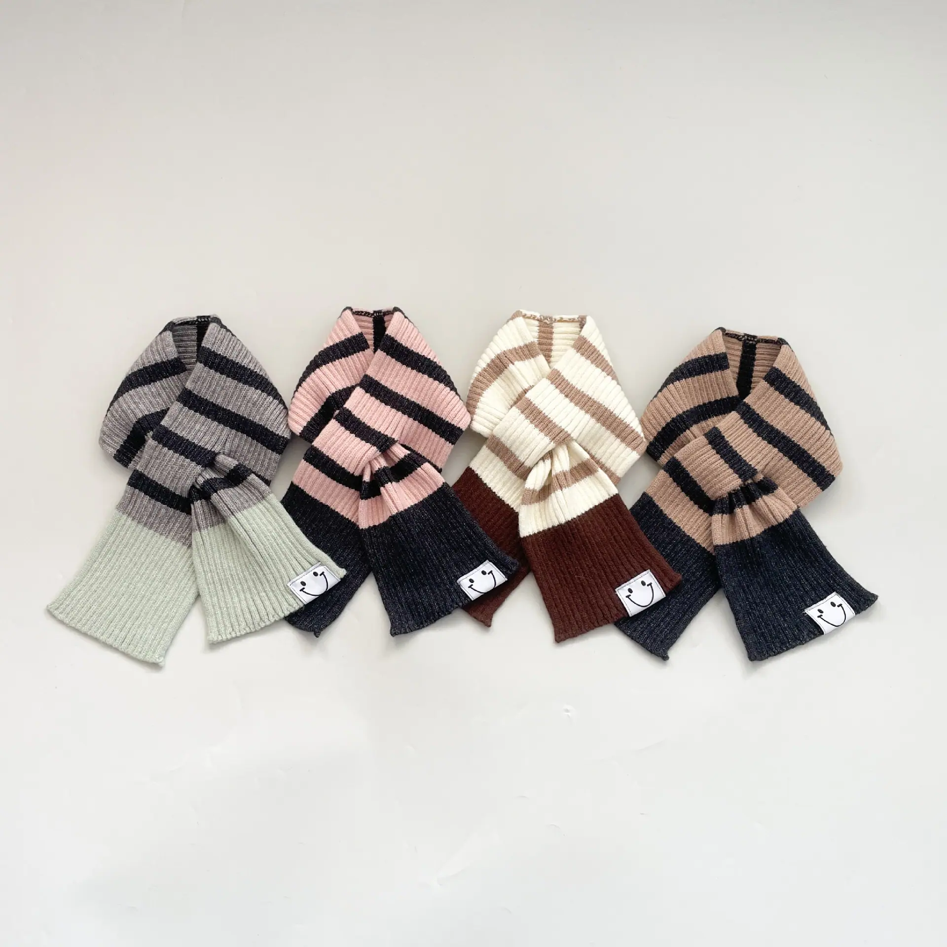 Ins cachecol infantil simples de desenho animado com carinha sorridente listrado combinação de cores cruzado quente para meninos e meninas estilo ocidental cachecol de tricô