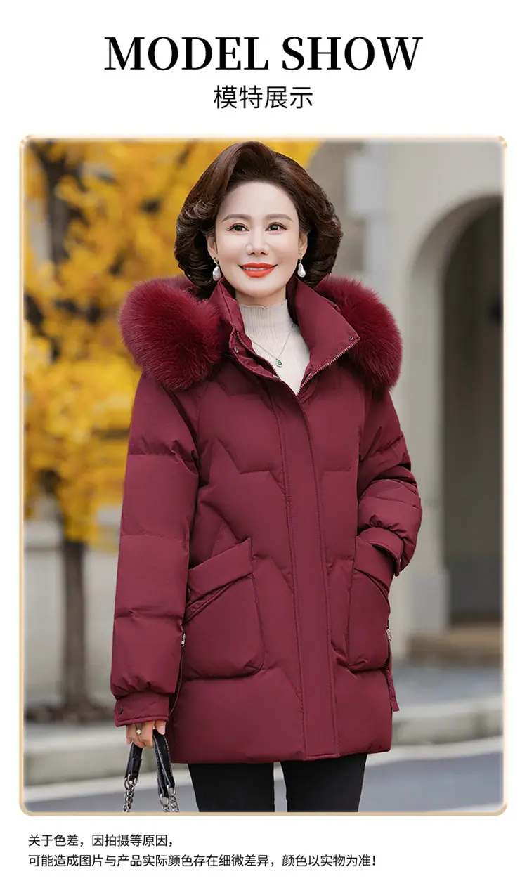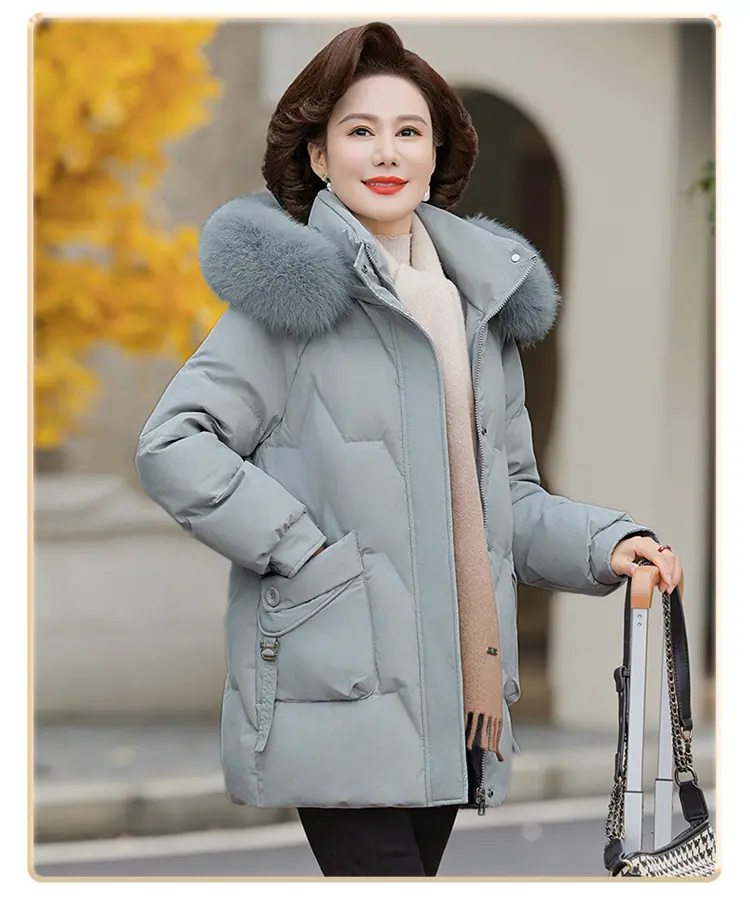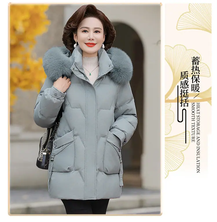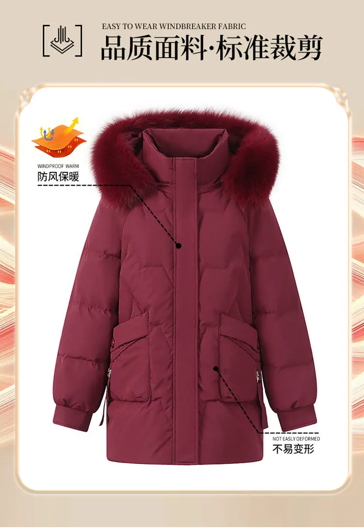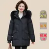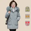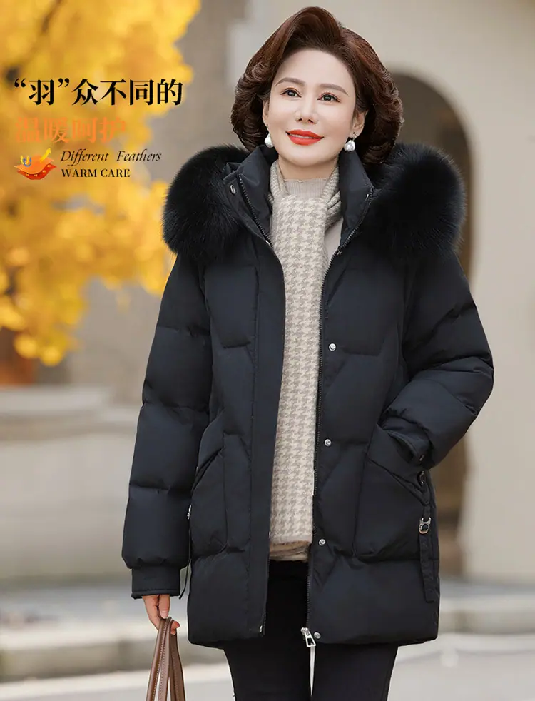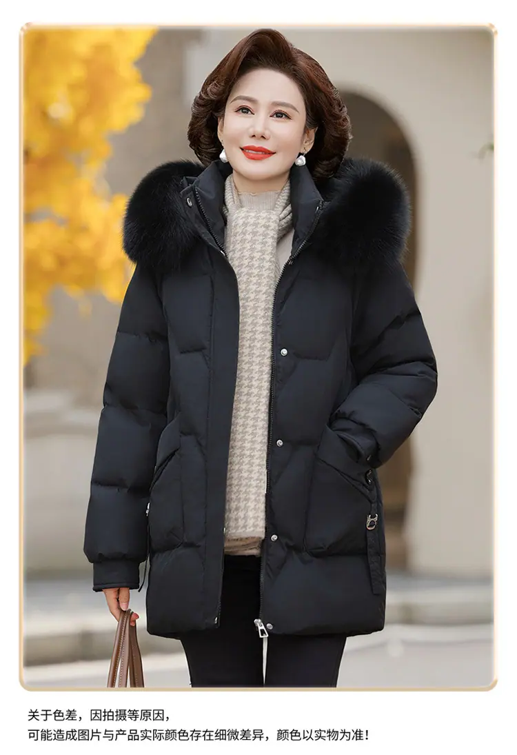 Casaco de Penas Feminino Penas de Ganso Branco 2025 Inverno Novo Comprimento Médio Espessado Quente Casaco para Mãe de Meia Idade