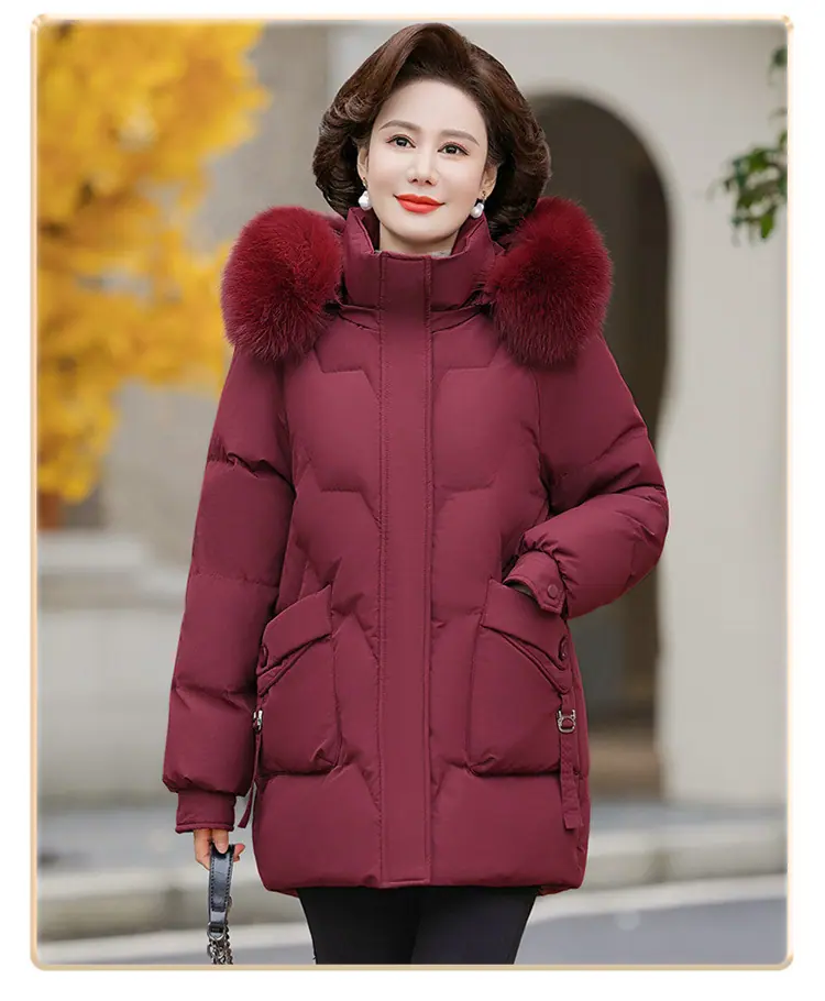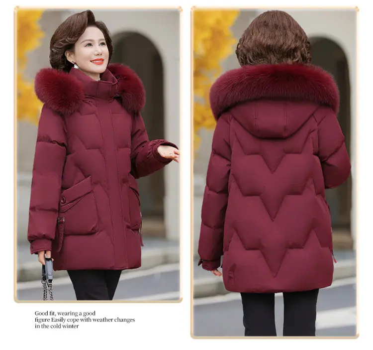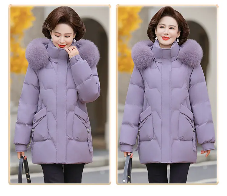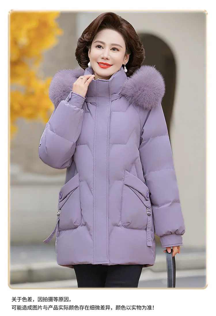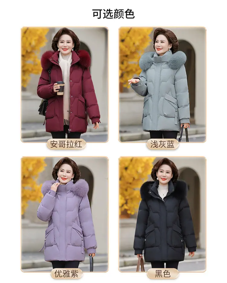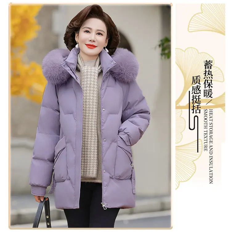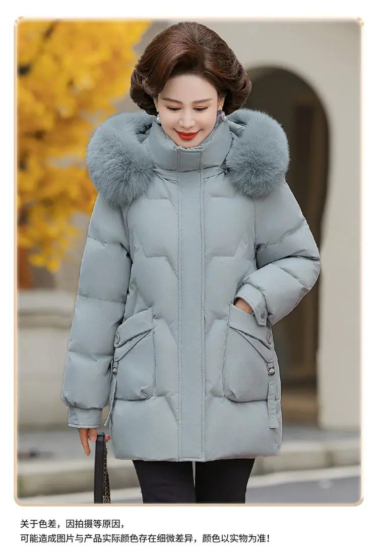 Casaco de Penas Feminino Penas de Ganso Branco 2025 Inverno Novo Comprimento Médio Espessado Quente Casaco para Mãe de Meia Idade