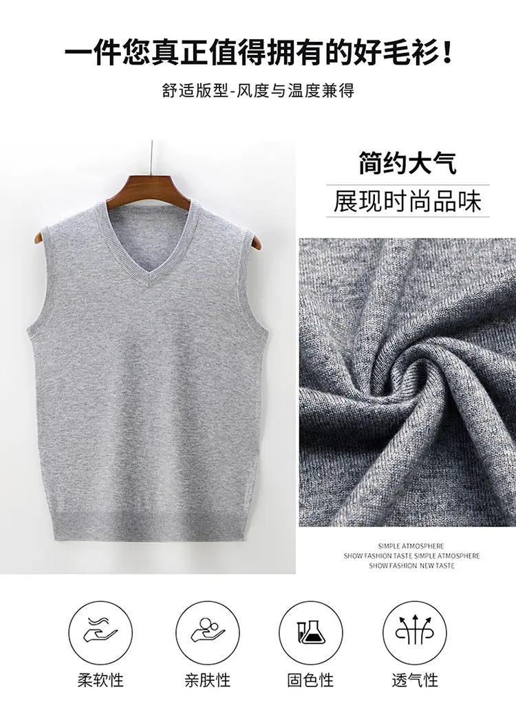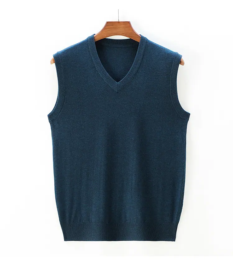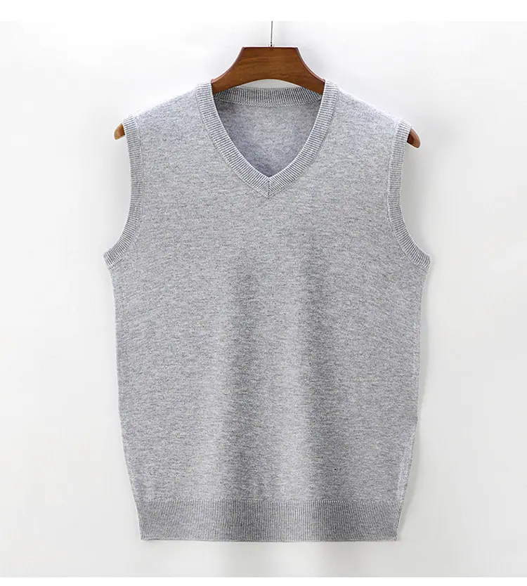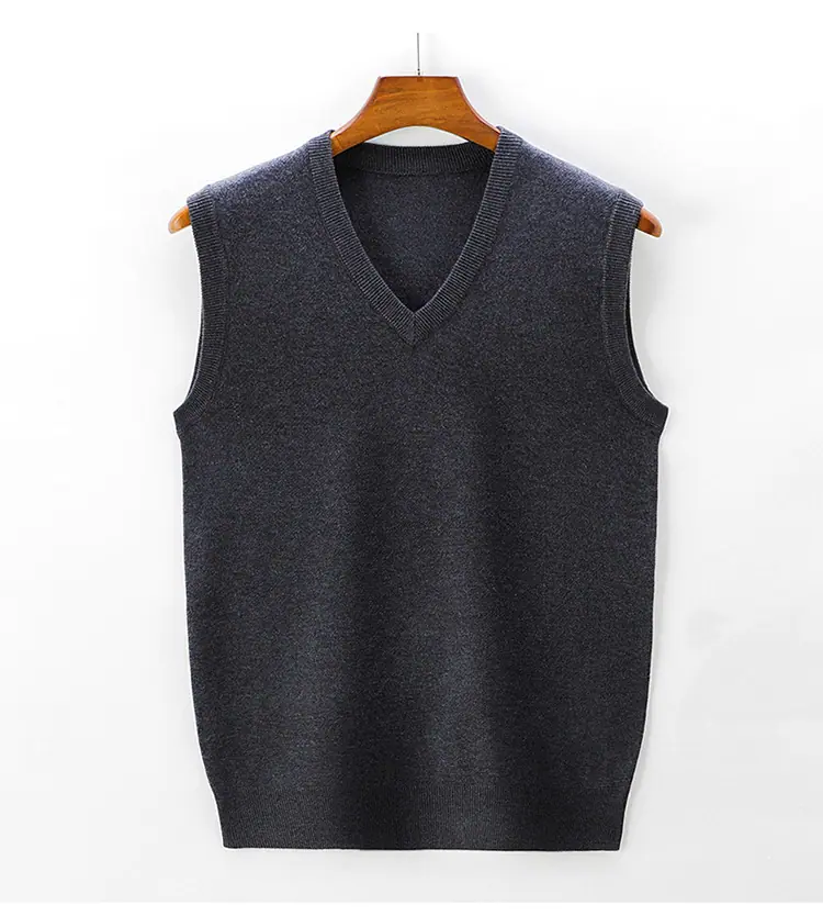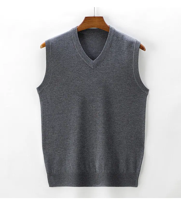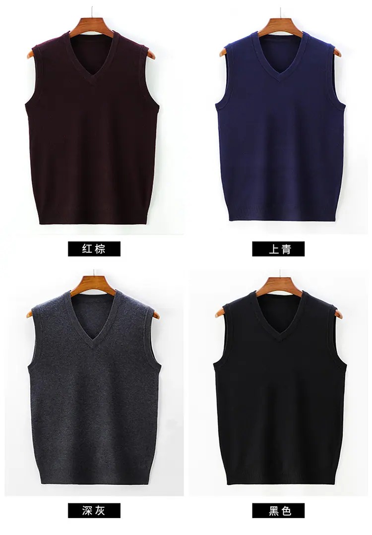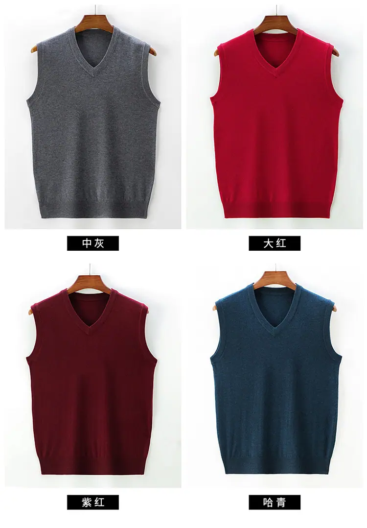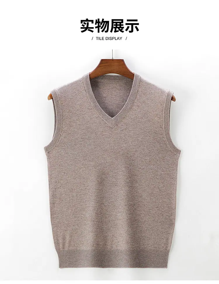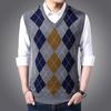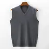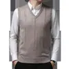 Colete Fino de Primavera e Outono Transfronteiriço Colete Sem Mangas Masculino Suéter Colete com Faixa de Cintura Colete para Pai Outono e Inverno Decote em V Tricotado Cavalo
