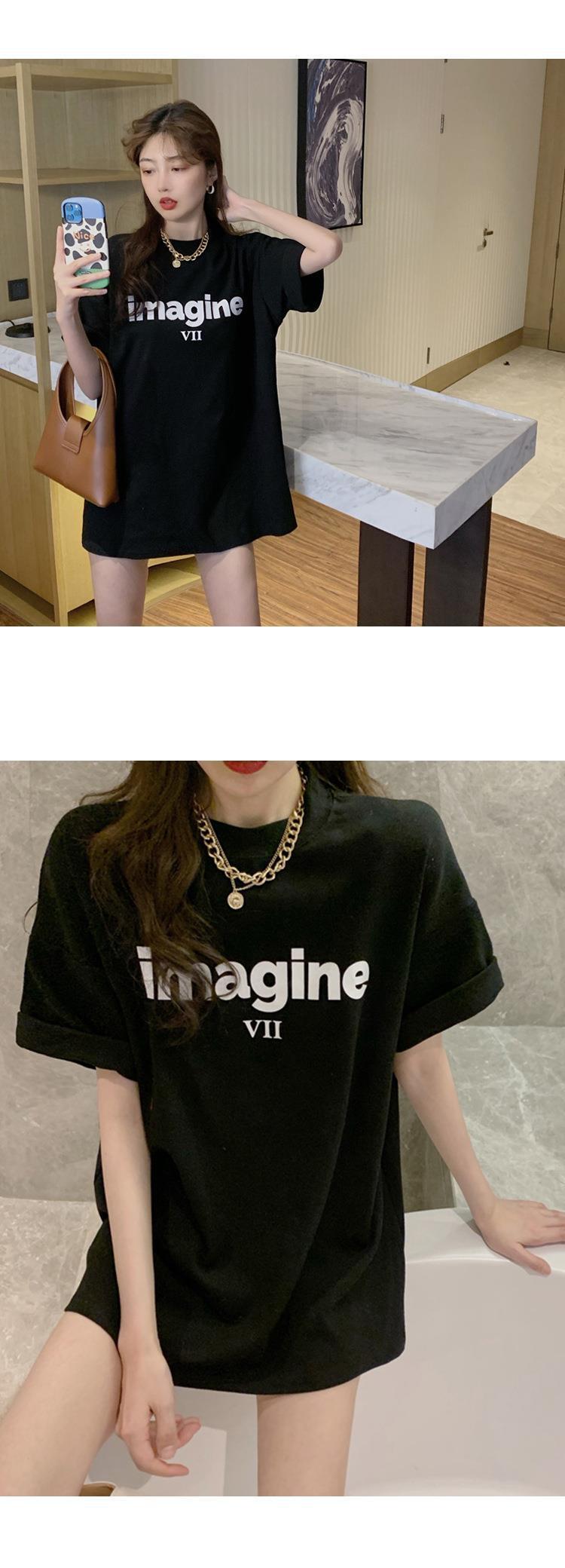 Camiseta Feminina Plus Size Manga Curta 2025 Verão Estilo Coreano Novo Solto Letra Feminina Roupa Feminina Top Feminino Atacado