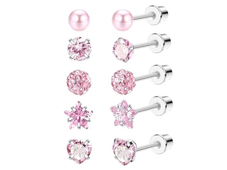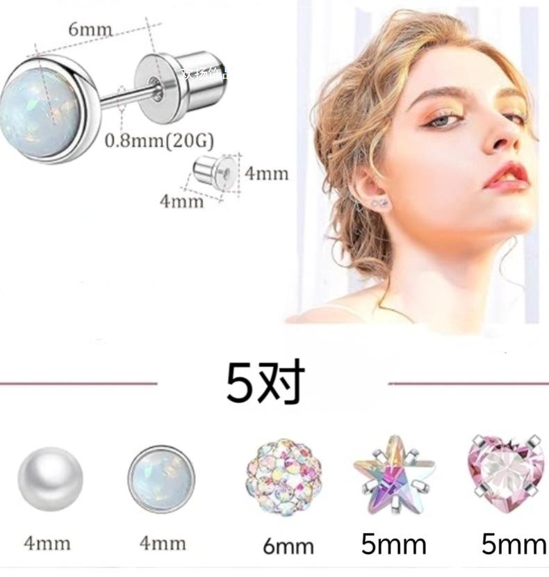 Steel color white pearl + aurora color (pictured) 5 pairs in a set, Steel pink series (pictured) 5 pairs in a ...