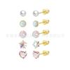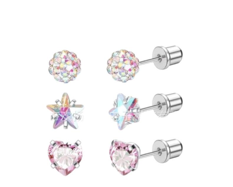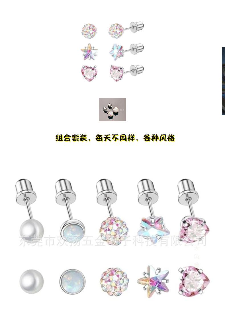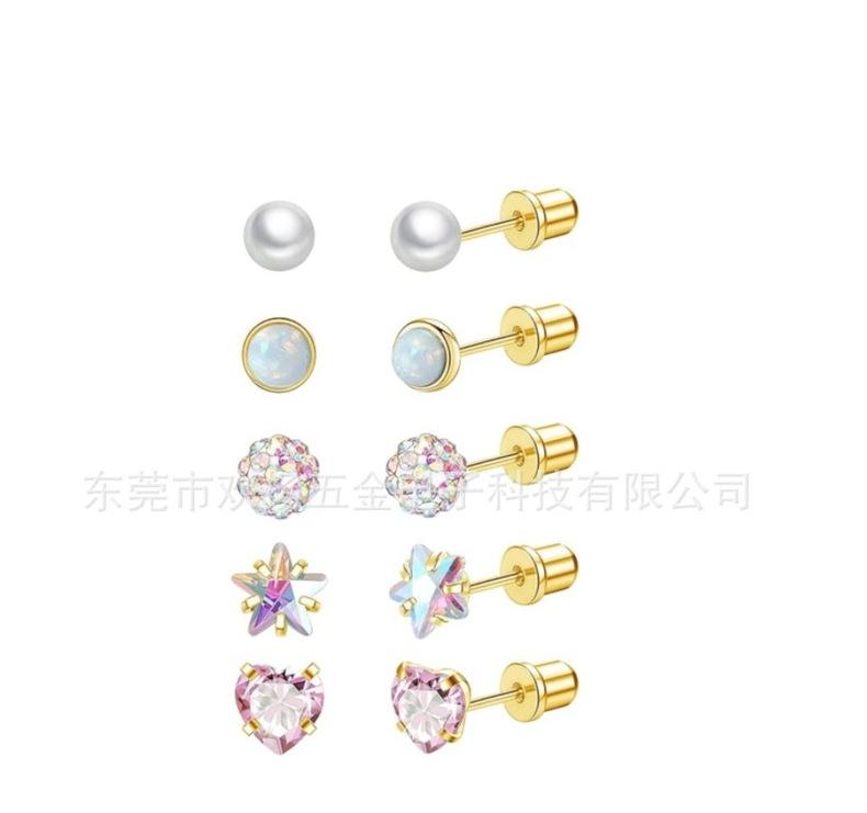 Combinação Espelho Cruzado Estrela de Cinco Pontas Amor Zircônia Cor Brincos Pérola Diamante Bola Rosca Externa Joias Aço Titânio