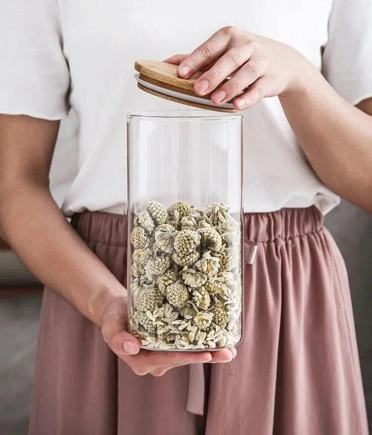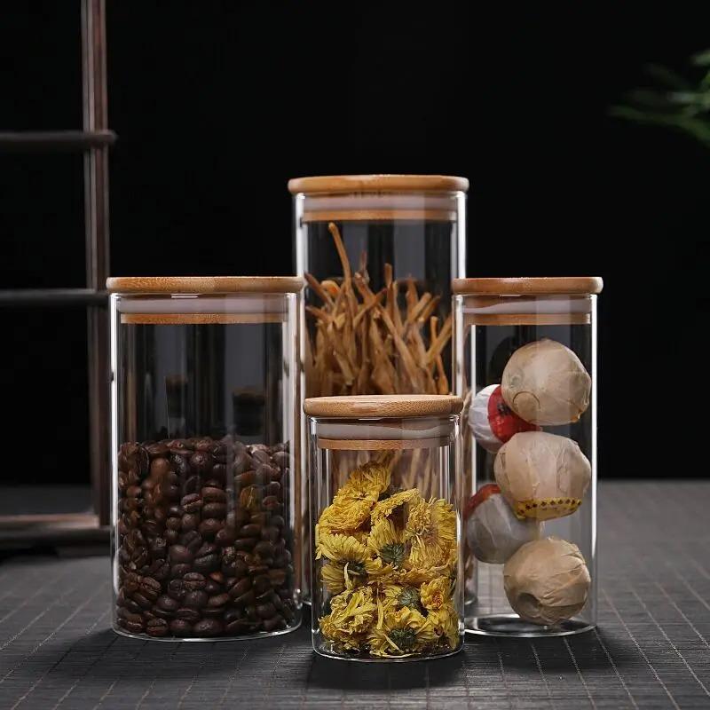 Recipiente de Armazenamento de Cozinha Recipiente para Alimentos com Tampa de Bambu Vidro Selado para Alimentos de Alto Borosilicato Diversos de Cozinha Organizador de Grãos