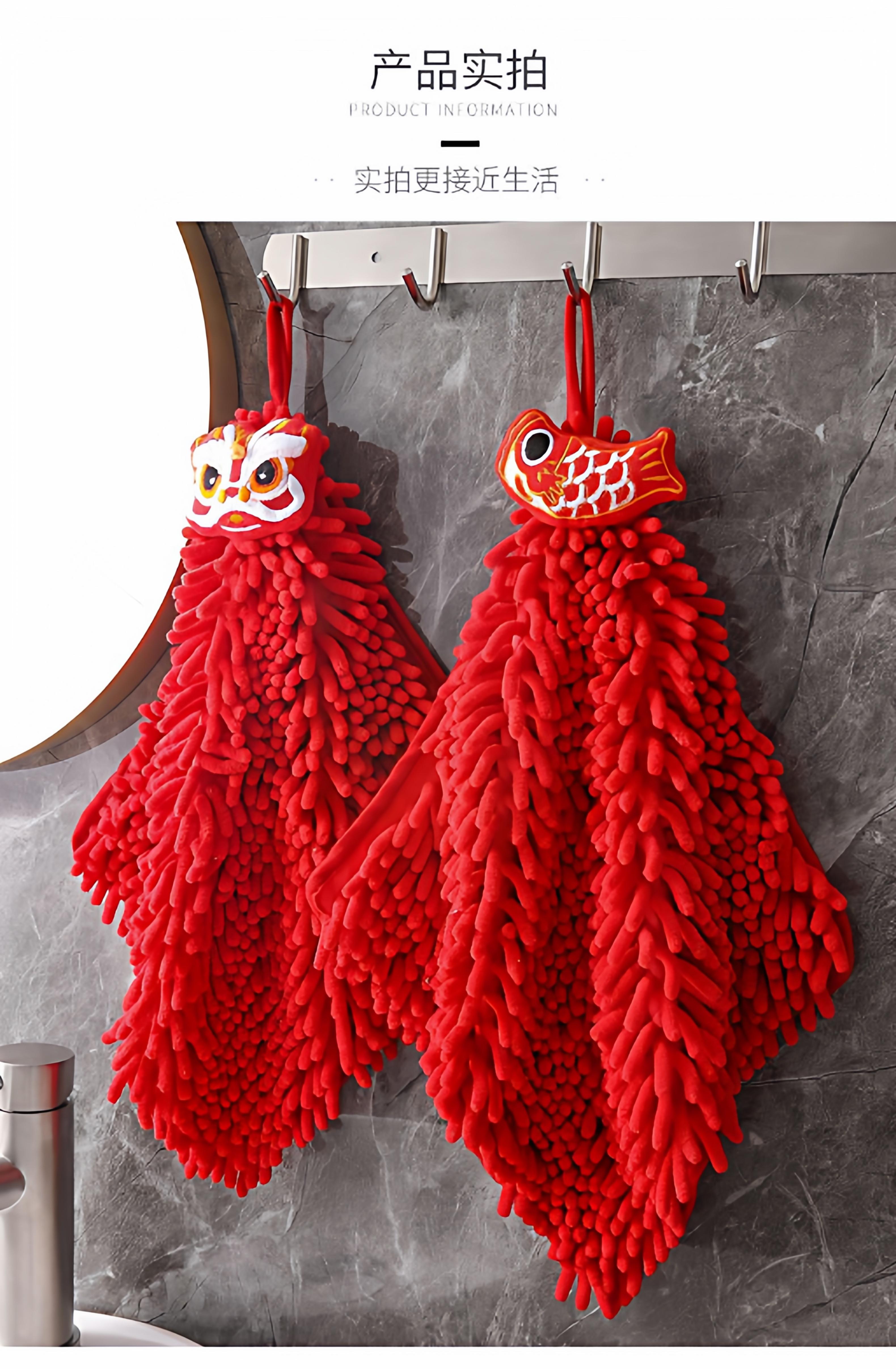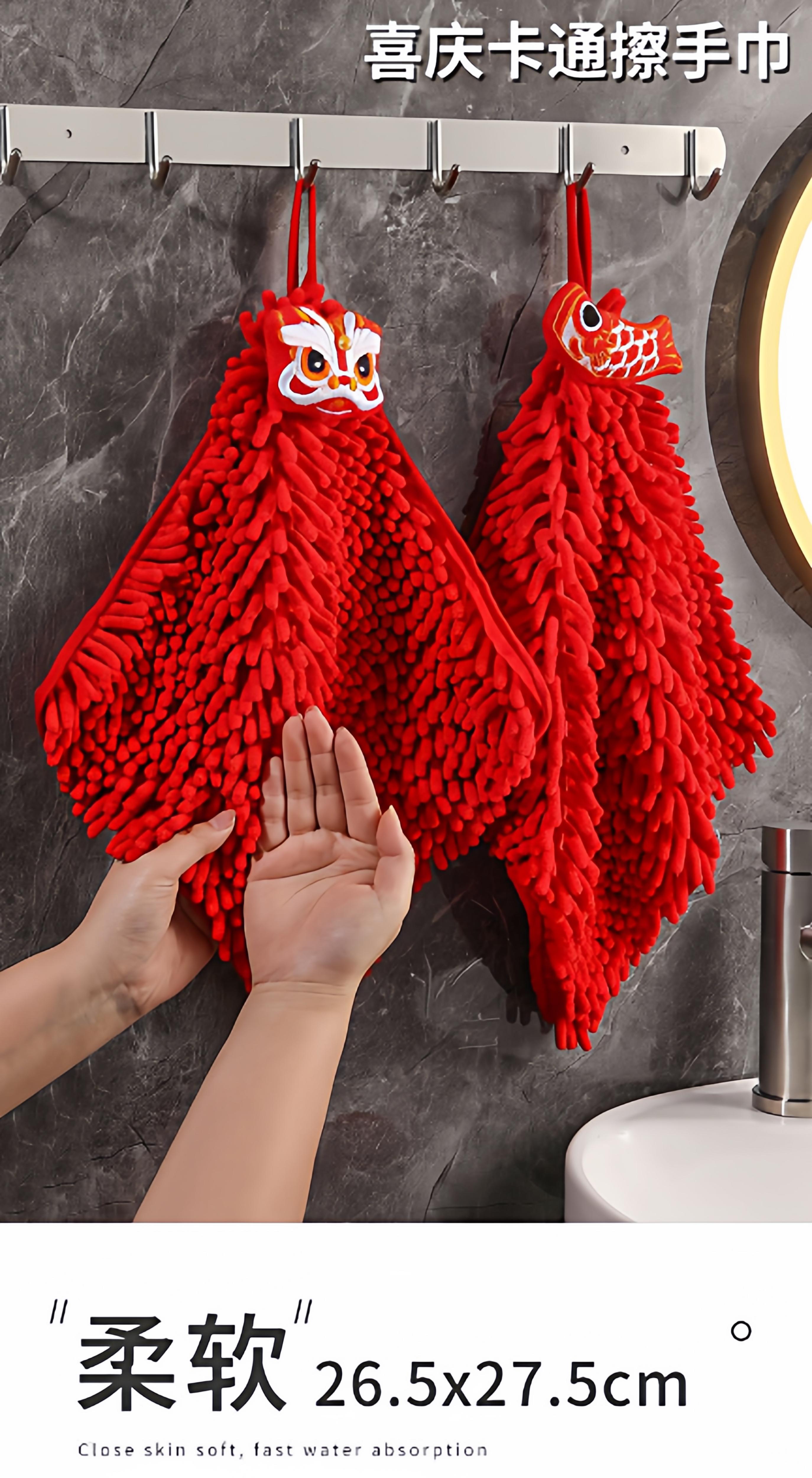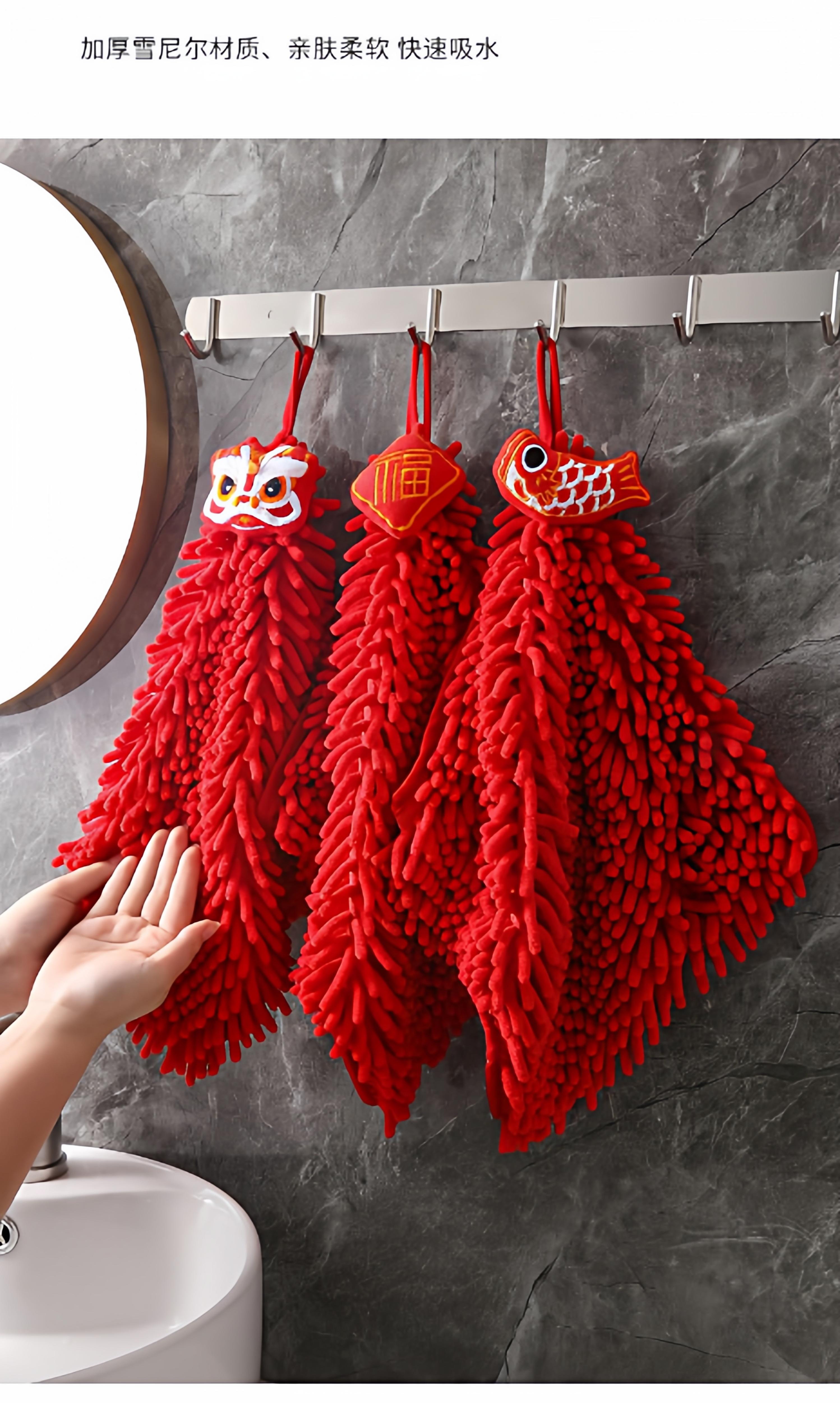 Hand Towel Ping An Fu [1 piece] Free 1 Hook, Hand Towel Koi Fish [1 piece] Free 1 hook, Hand towel red lion [1 piece] with 1 hook