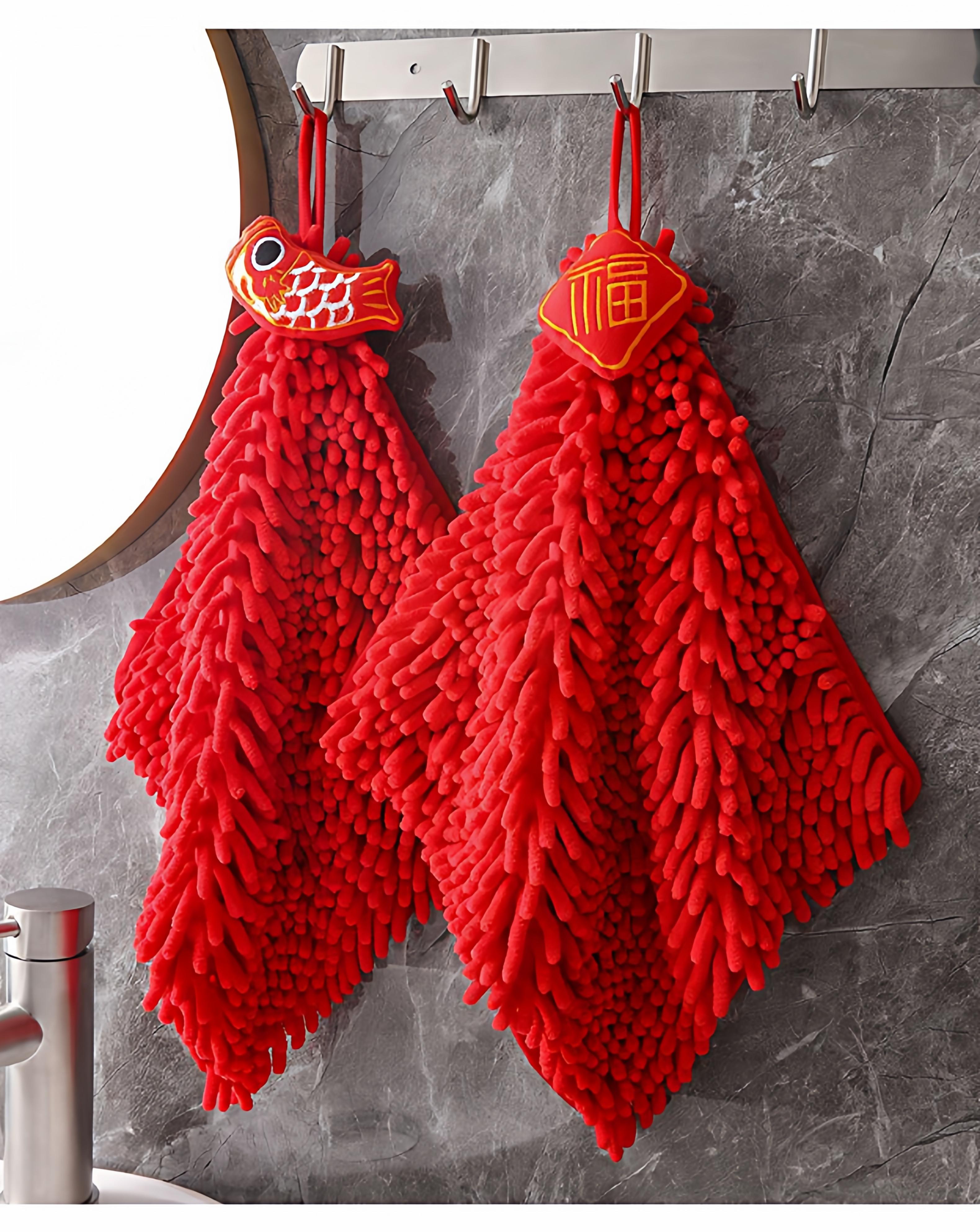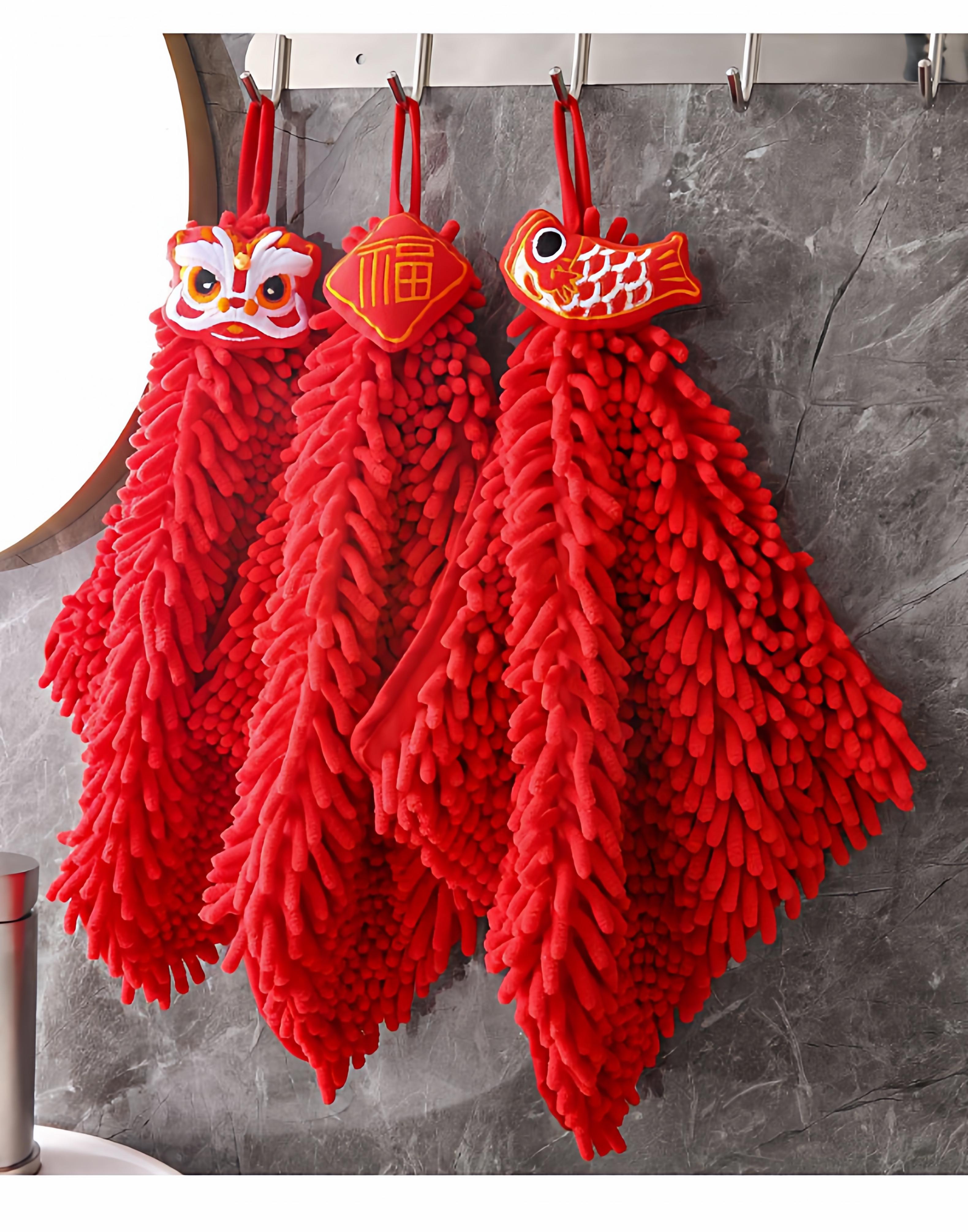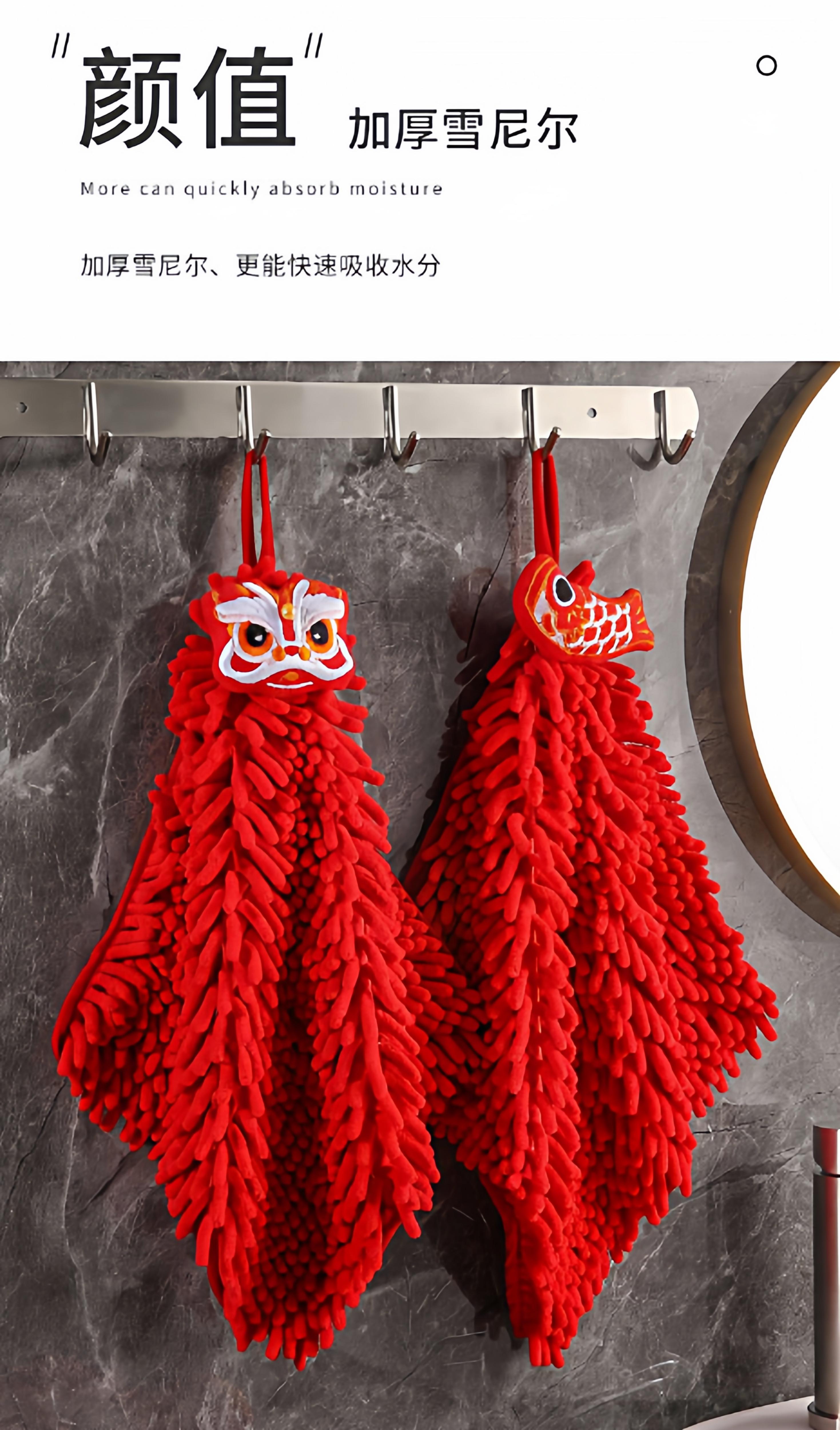 Hand Towel Ping An Fu [1 piece] Free 1 Hook, Hand Towel Koi Fish [1 piece] Free 1 hook, Hand towel red lion [1 piece] with 1 hook