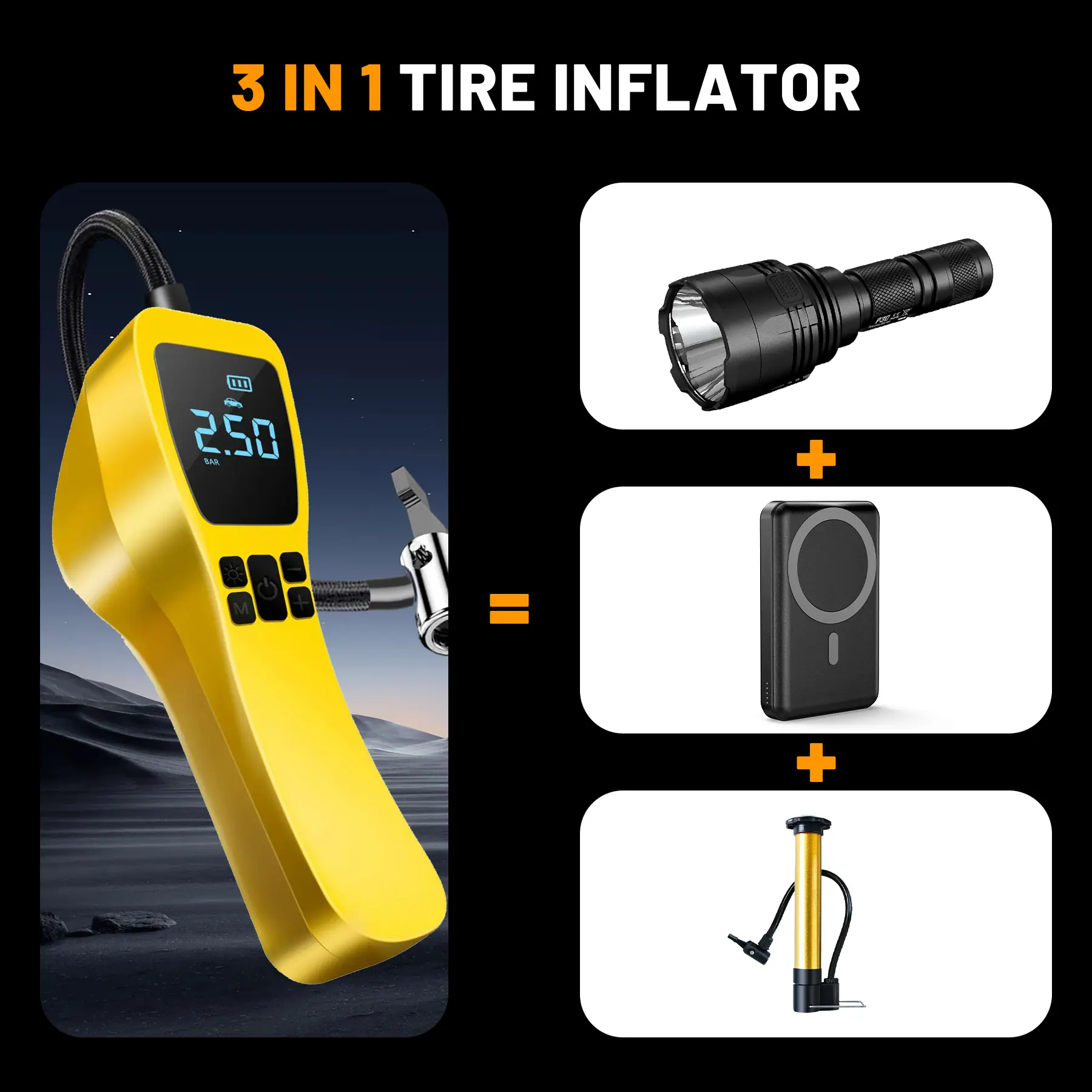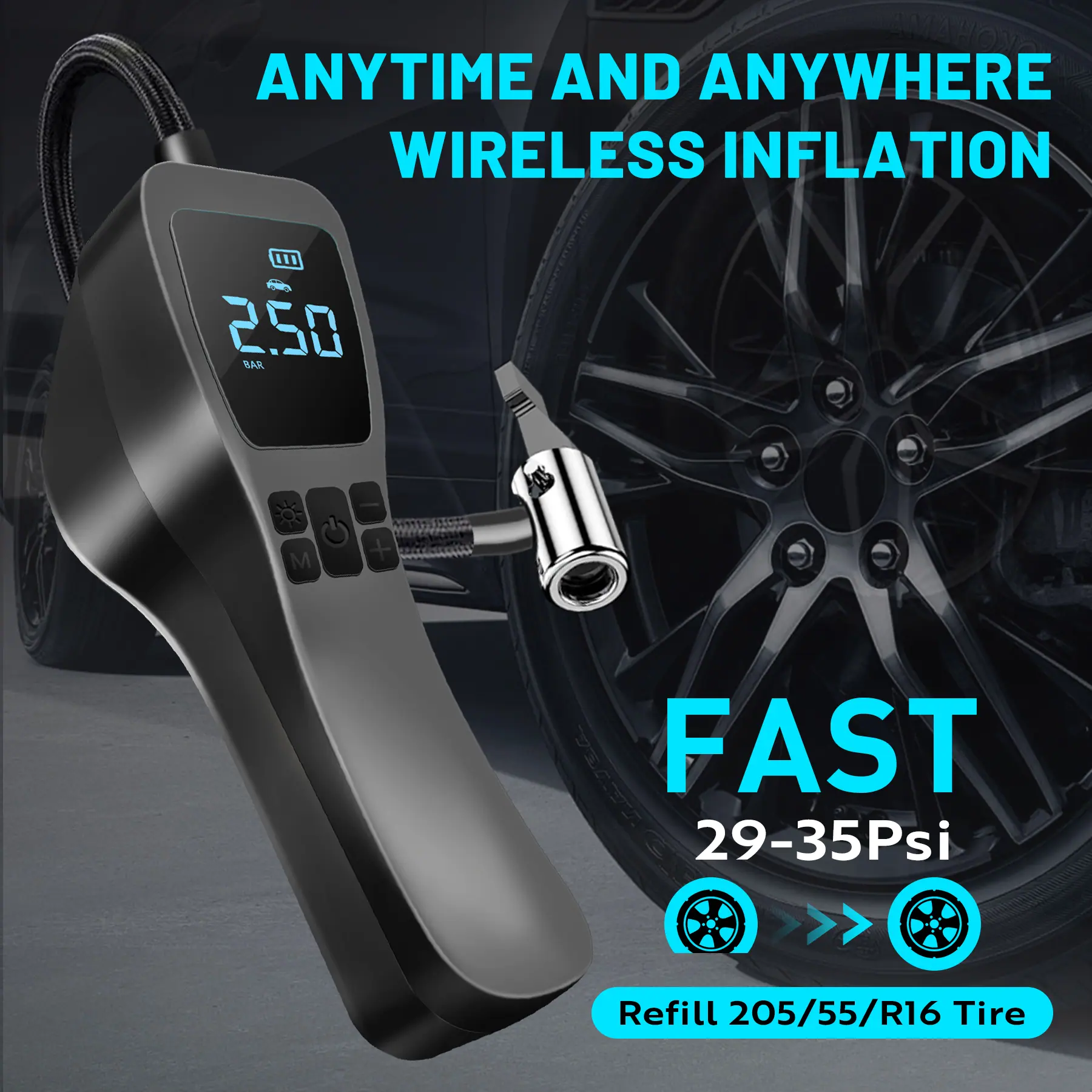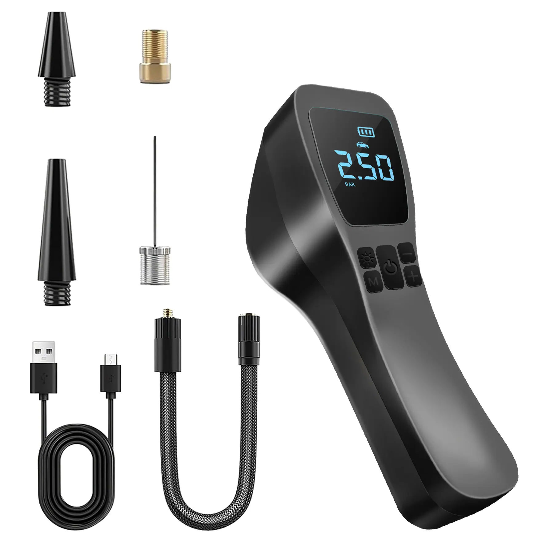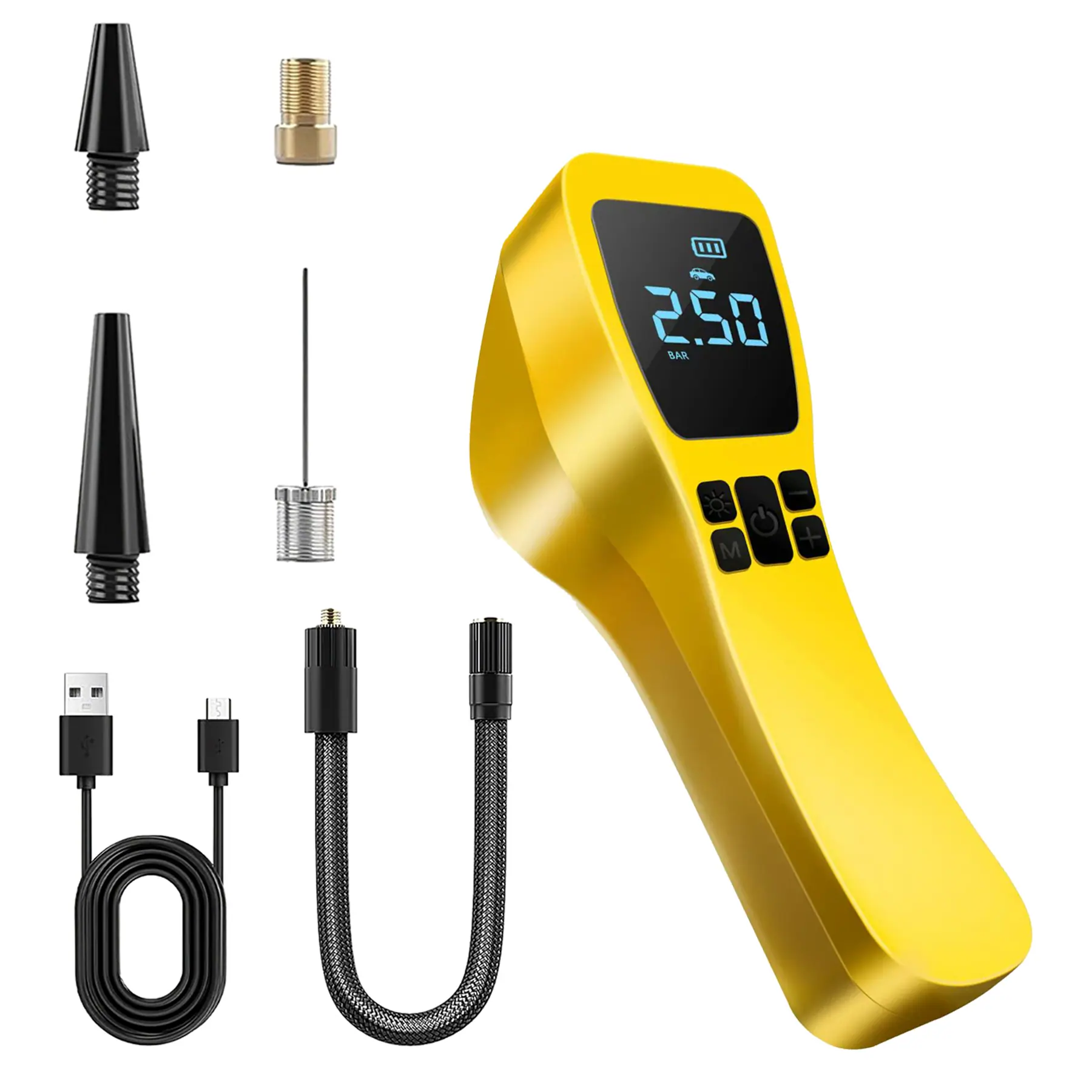 Compressor de ar portátil para carro, inflador de pneus digital, display digital, bateria de lítio recarregável, luz LED. Adequado para carros, bicicletas, motocicletas e bolas. Menos de 9V, conector USB Tipo-C