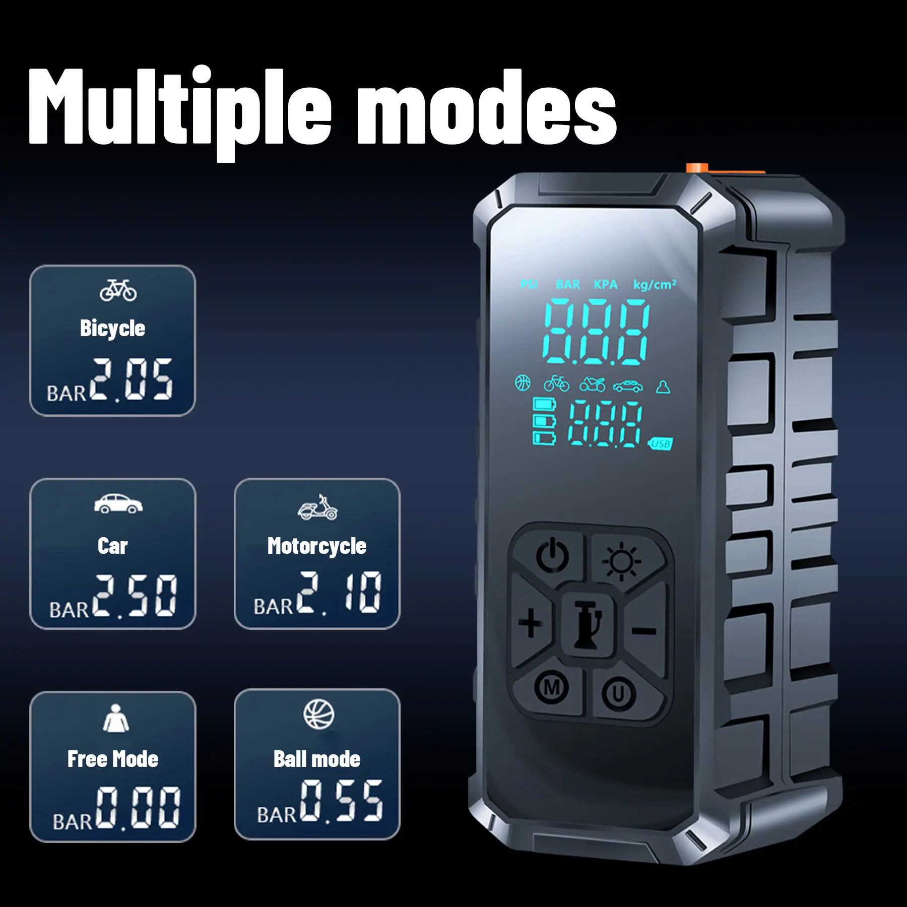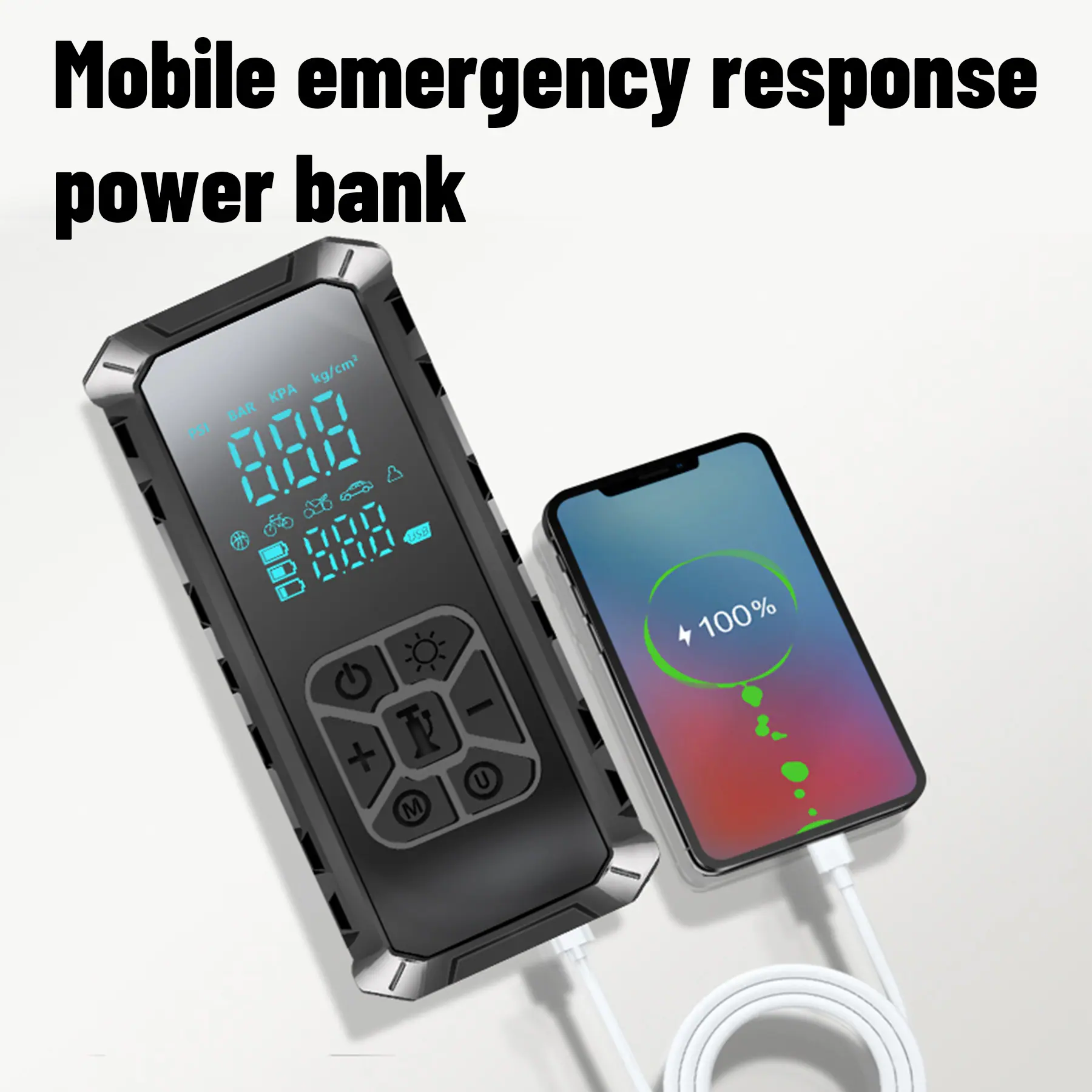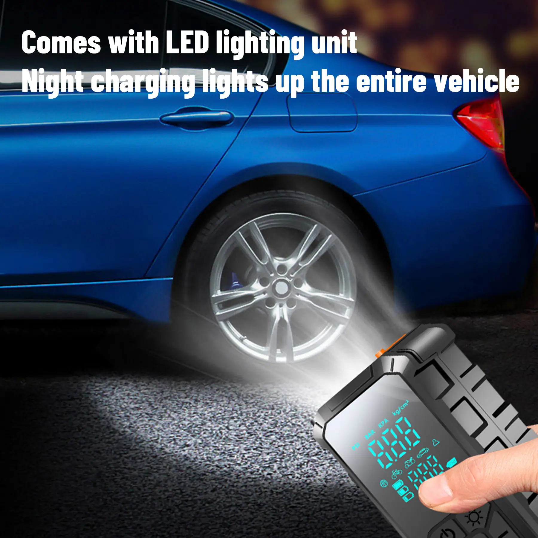 Inflador de Pneus Portátil para Carro 10000mAh, Compressor de Ar, Partida Auxiliar Portátil para Carro, Bomba Elétrica 150 PSI com Luz LED e Manômetro Digital, Saída USB-A para Motocicletas, Carros, Bicicletas e Bolas Esportivas, Inflador Multiuso | Compressor de Ar Compacto | Conectividade USB, Bomba de Ar para Pneus de Carro