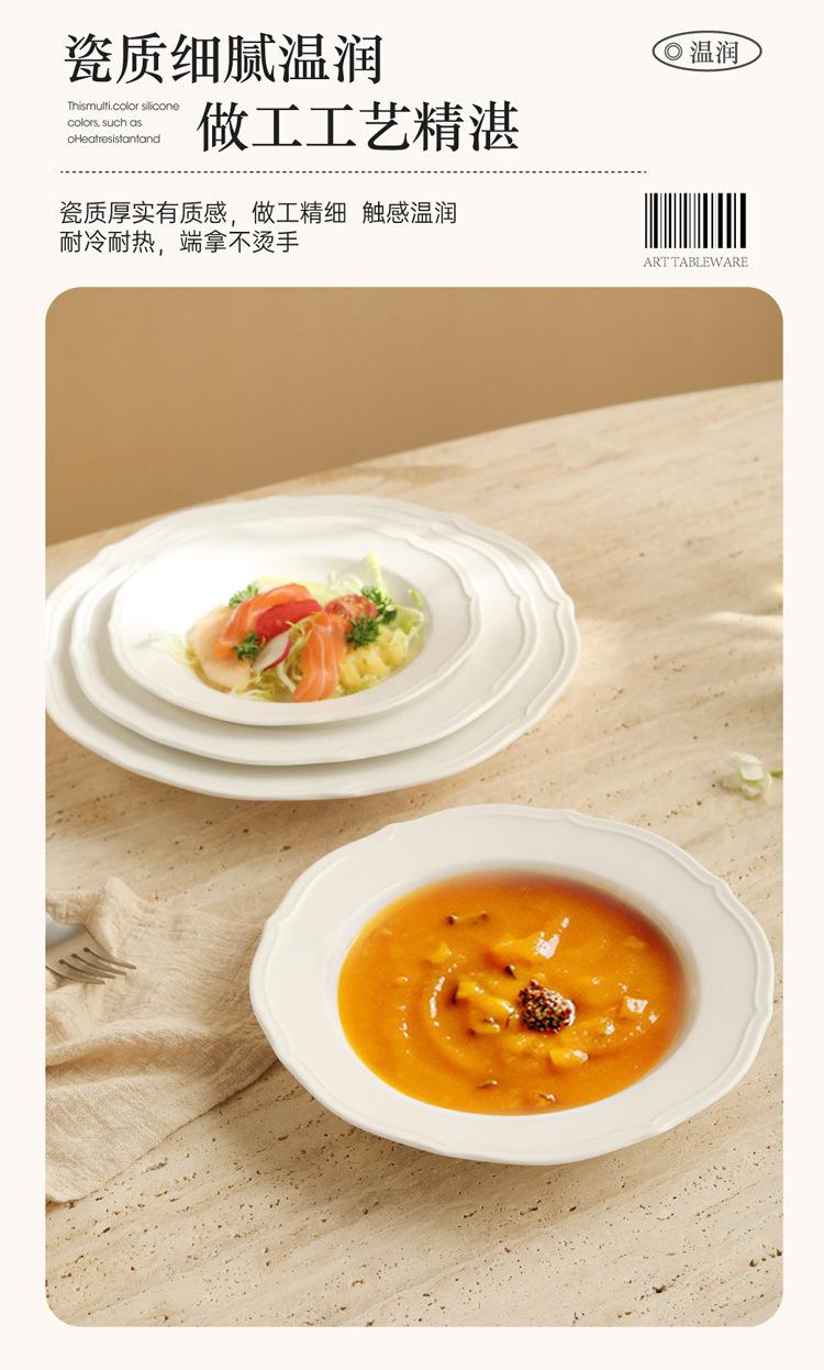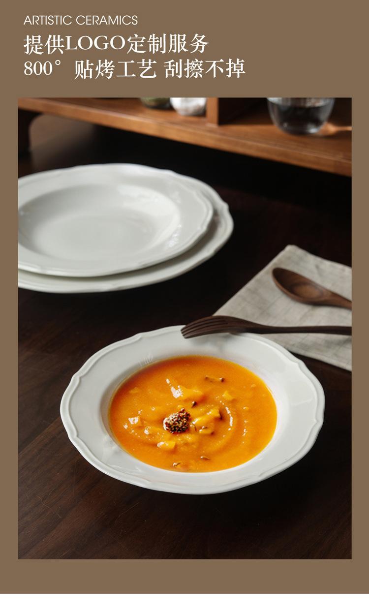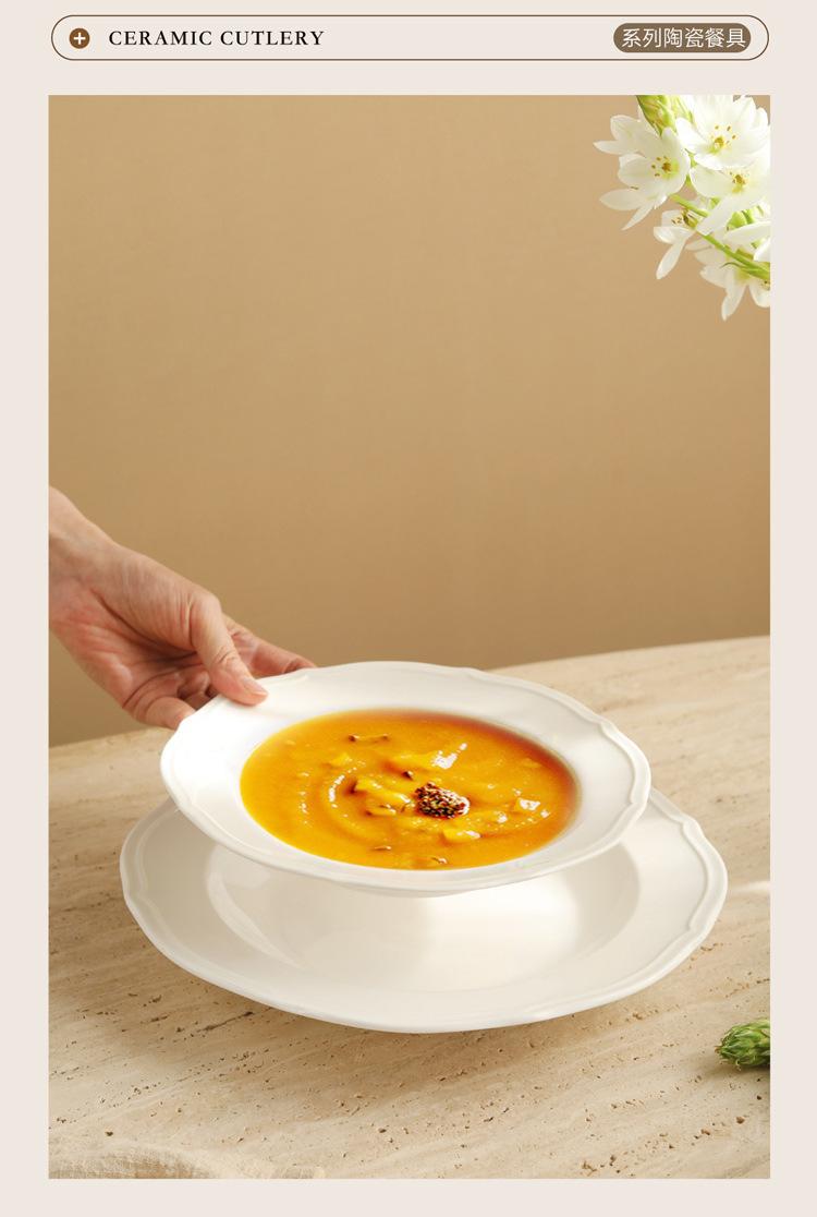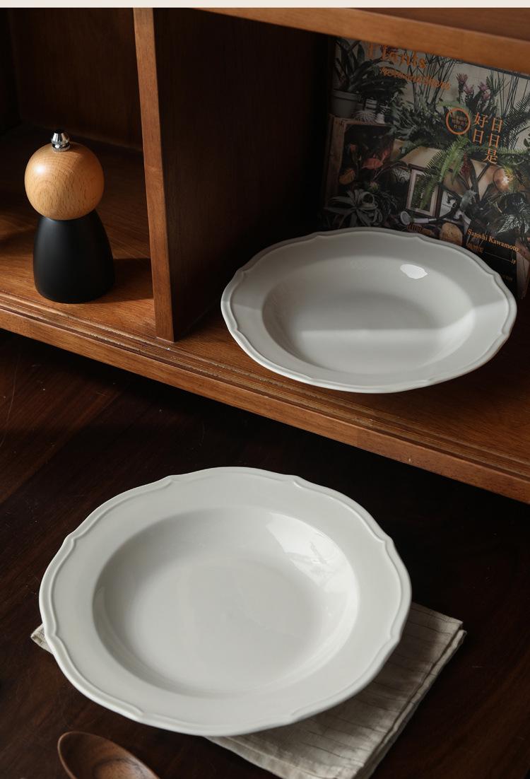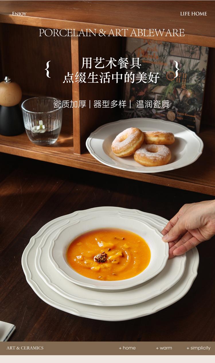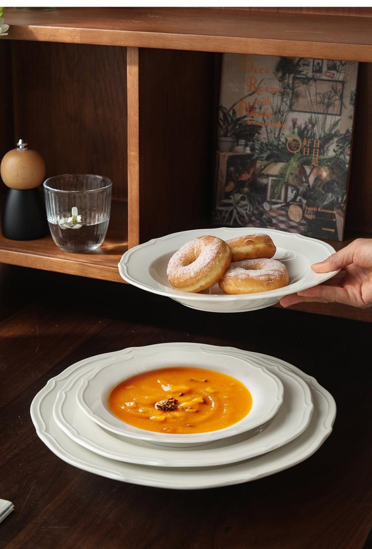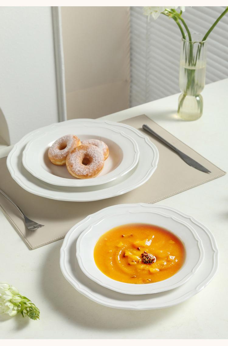Estilo ins prato de renda francesa em relevo prato de sopa de cerâmica branca pura prato para massa comida ocidental prato fundo prato de sobremesa prato de salada