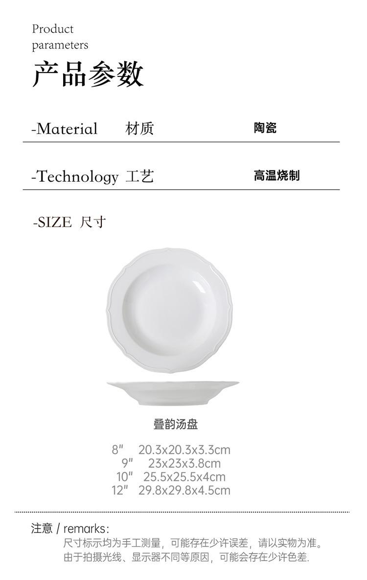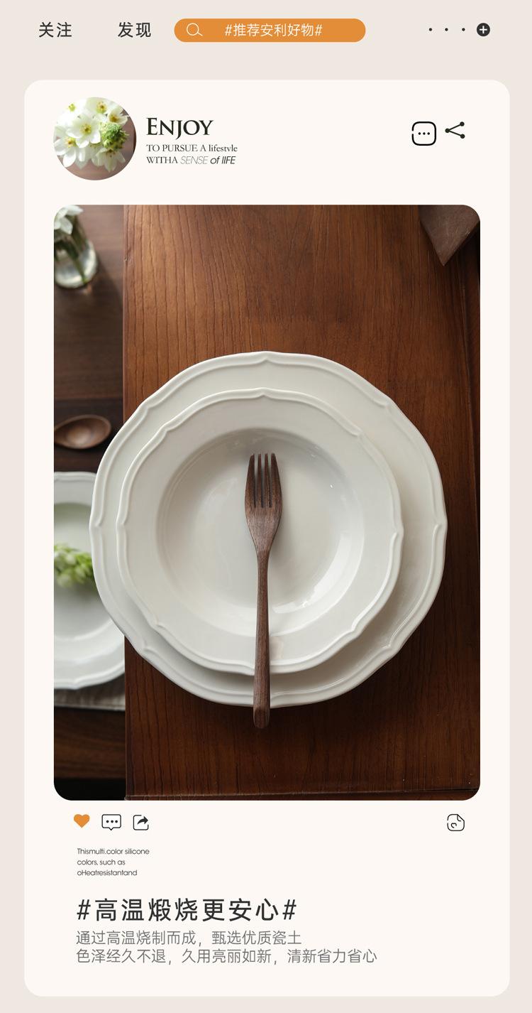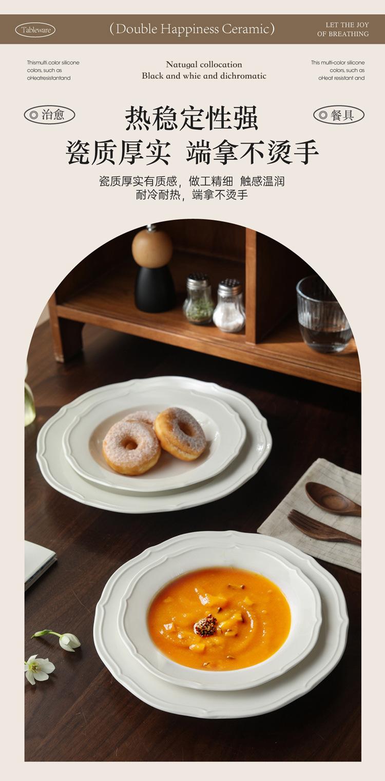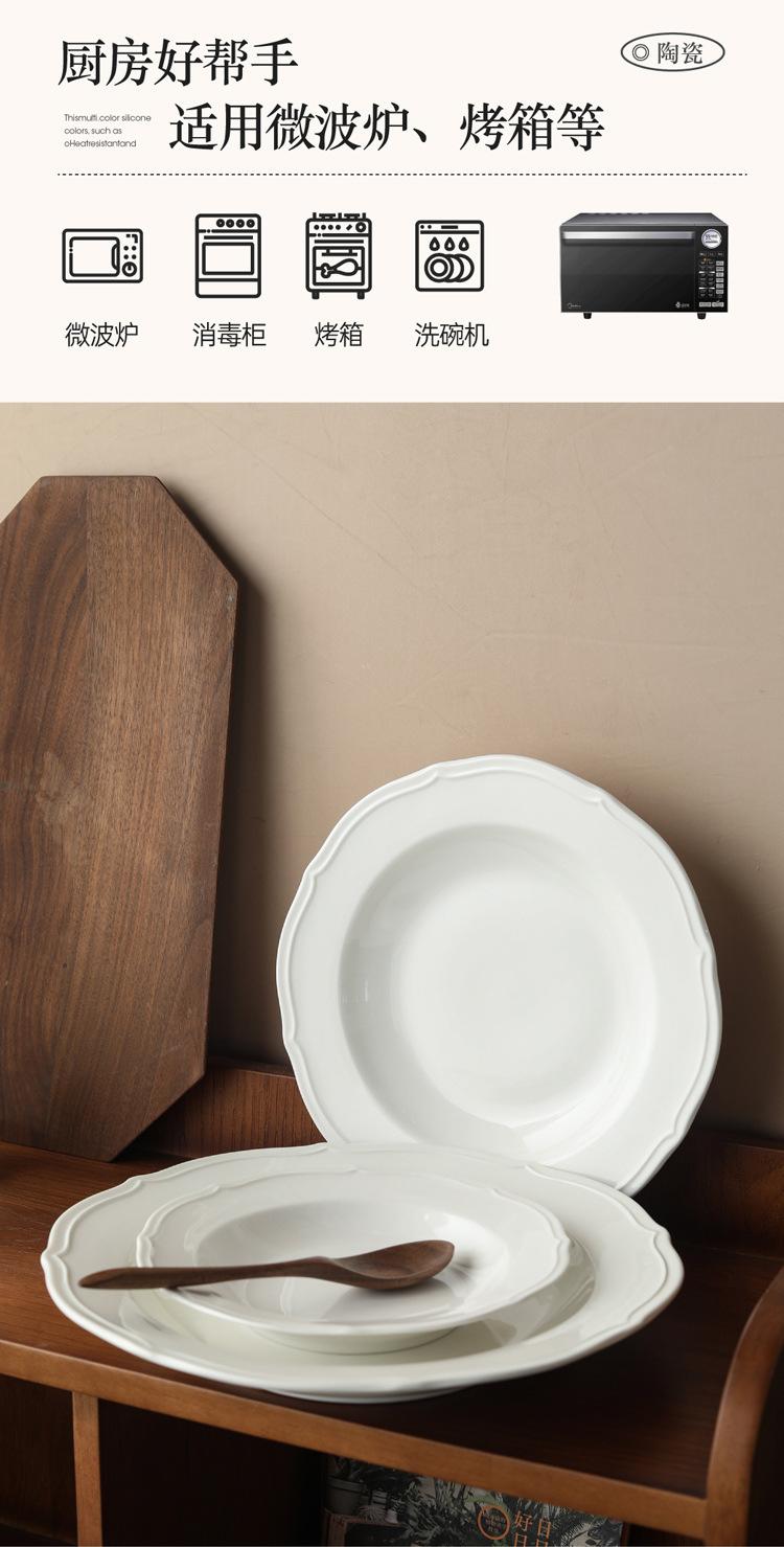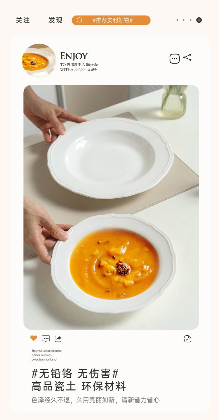 Estilo ins prato de renda francesa em relevo prato de sopa de cerâmica branca pura prato para massa comida ocidental prato fundo prato de sobremesa prato de salada