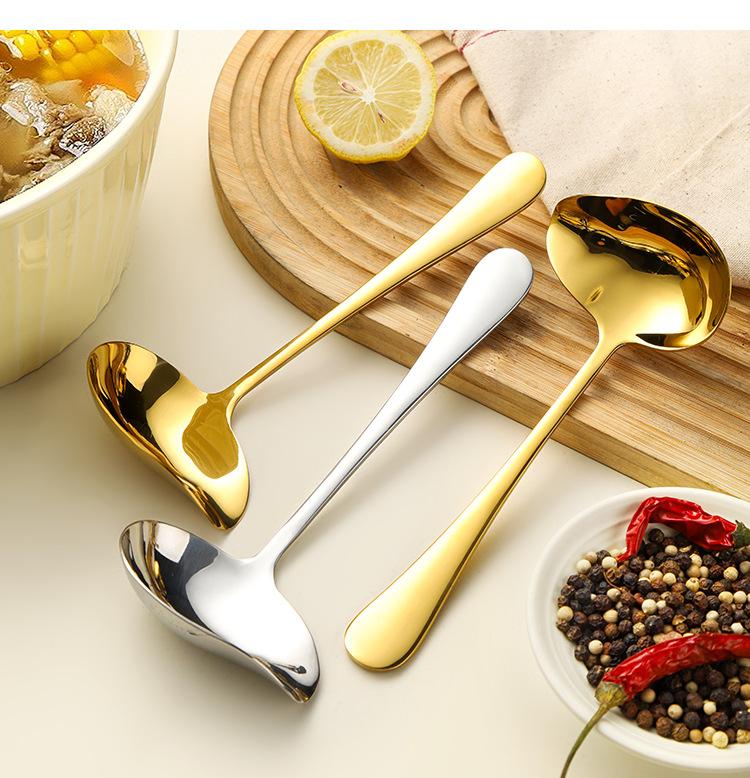 Compre Colher de Aço Inoxidável 304 Concha Dourada Colher Escumadeira Criativa de Alto Valor Espessada Utensílio de Mesa Doméstico Servir Sopa Colher de Sopa Transfronteiriça no atacado no Joom.pro