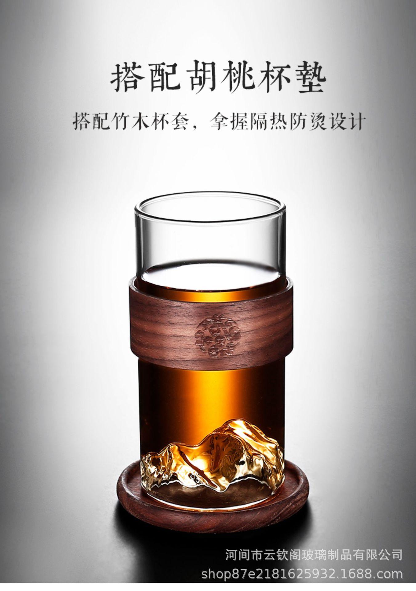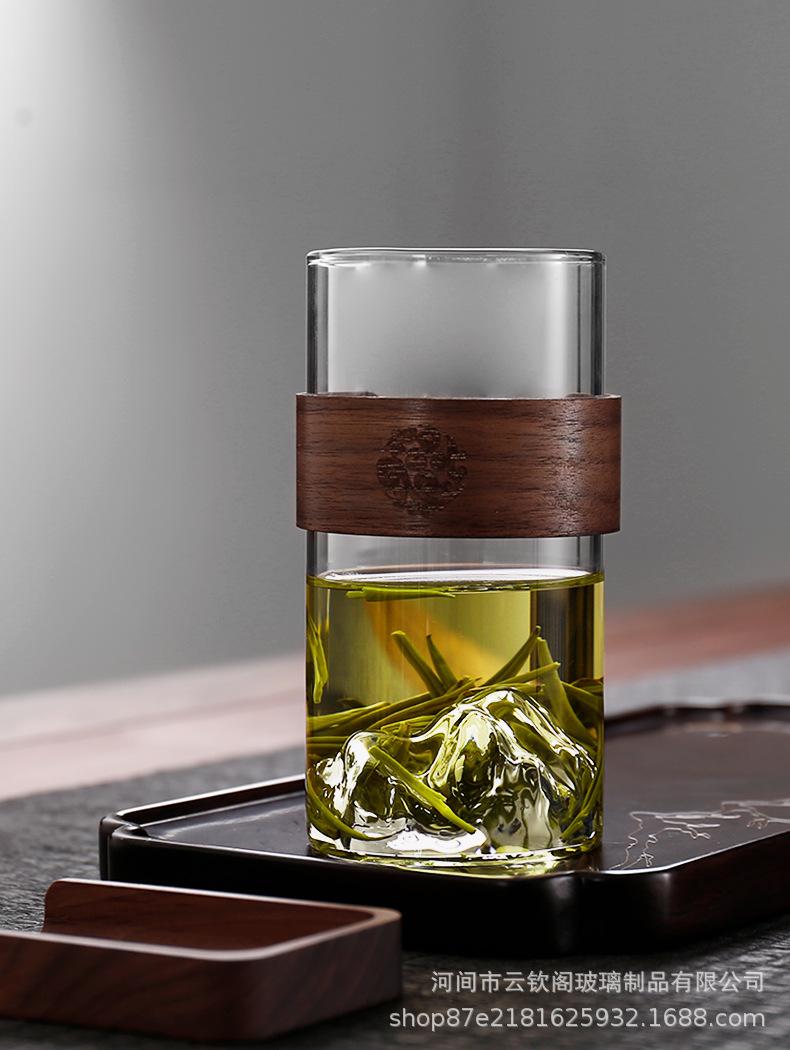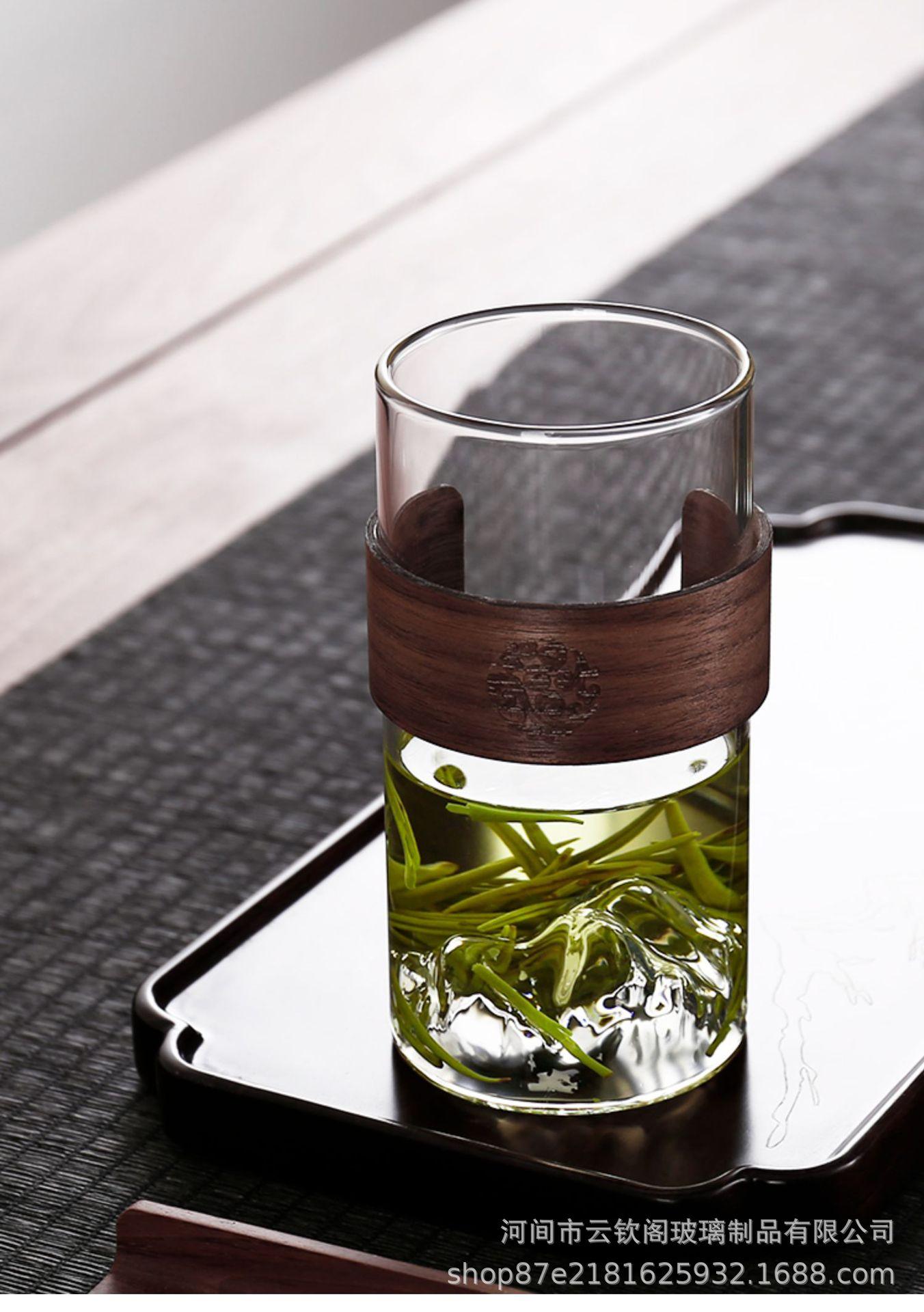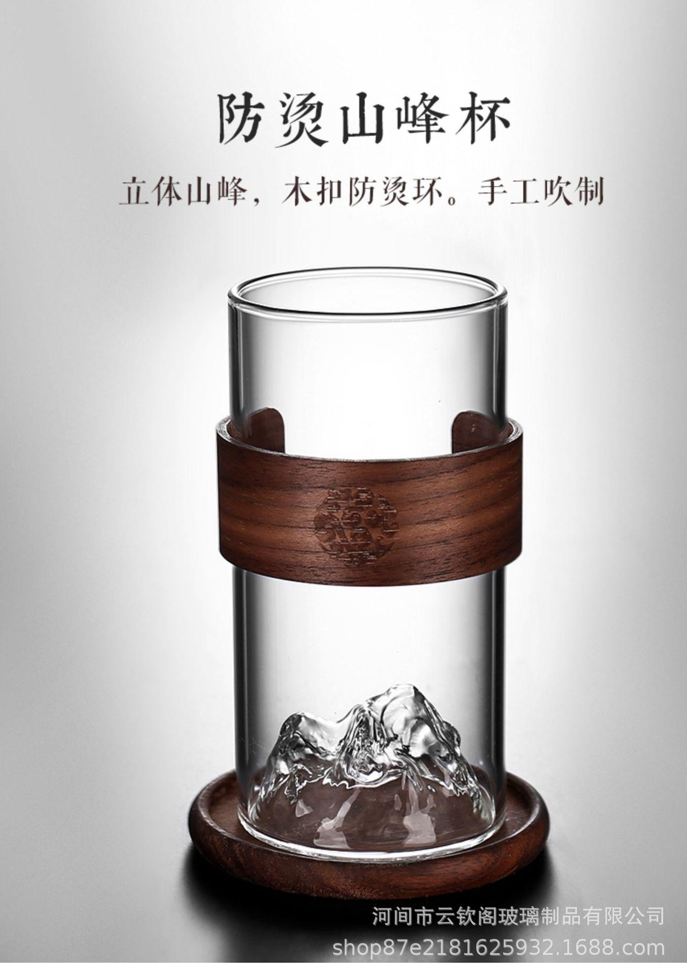 Copo de Vidro, Copo de Chá de Vidro Borossilicato Alto Resistente ao Calor, Copo de Vidro de Camada Única Resistente a Alta Temperatura com Anel de Madeira