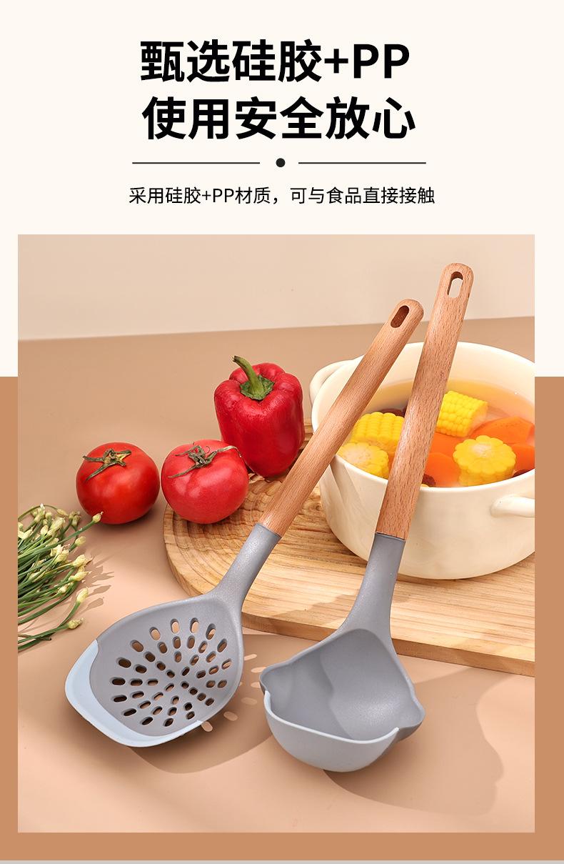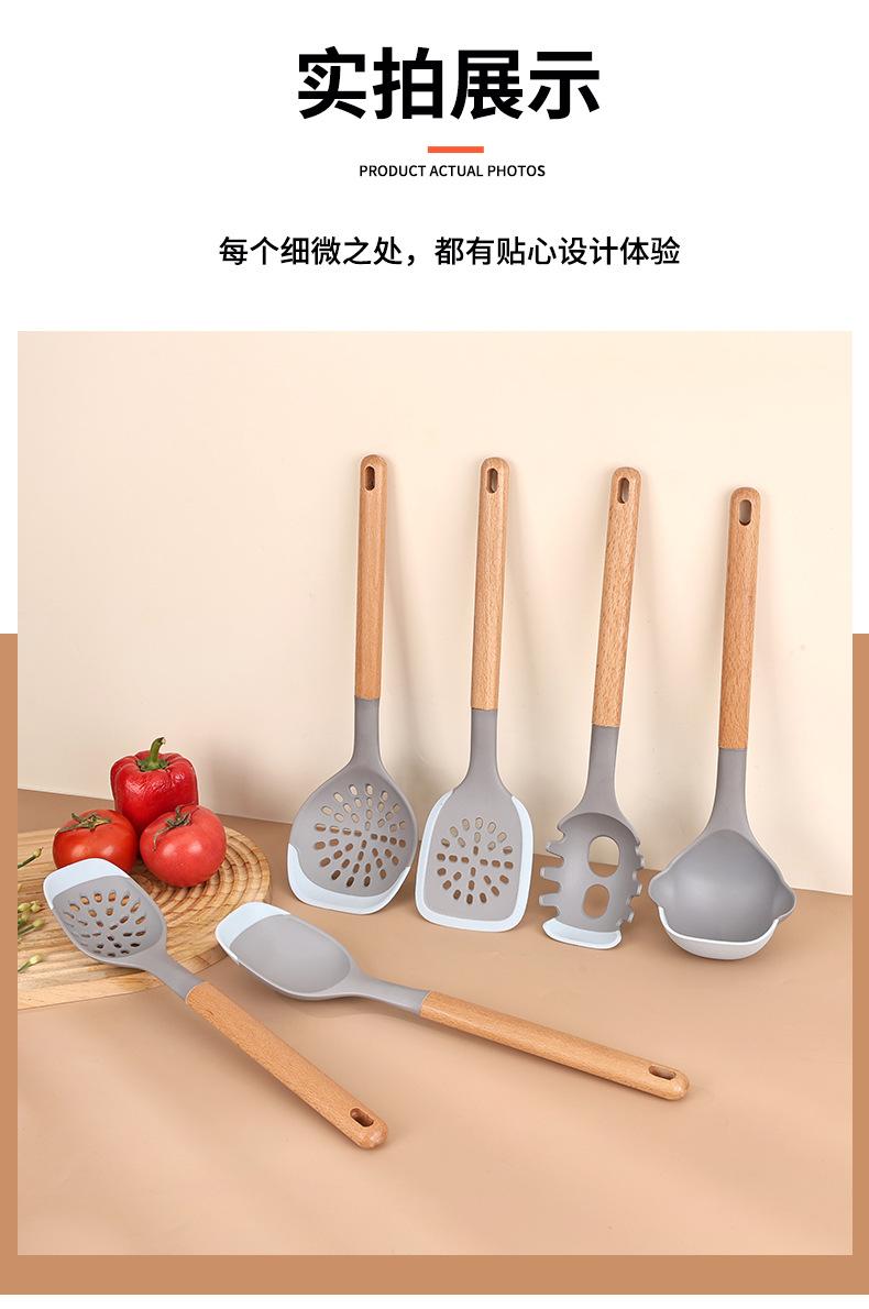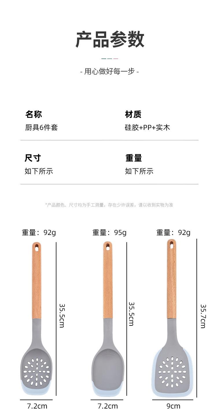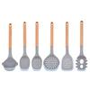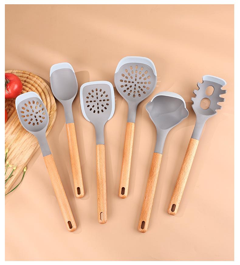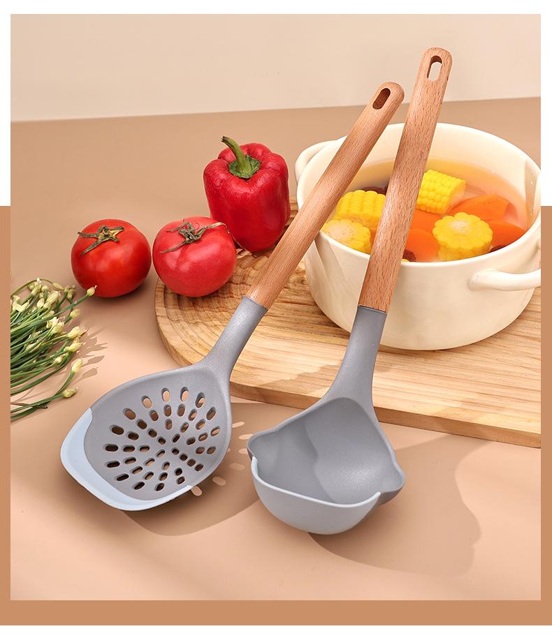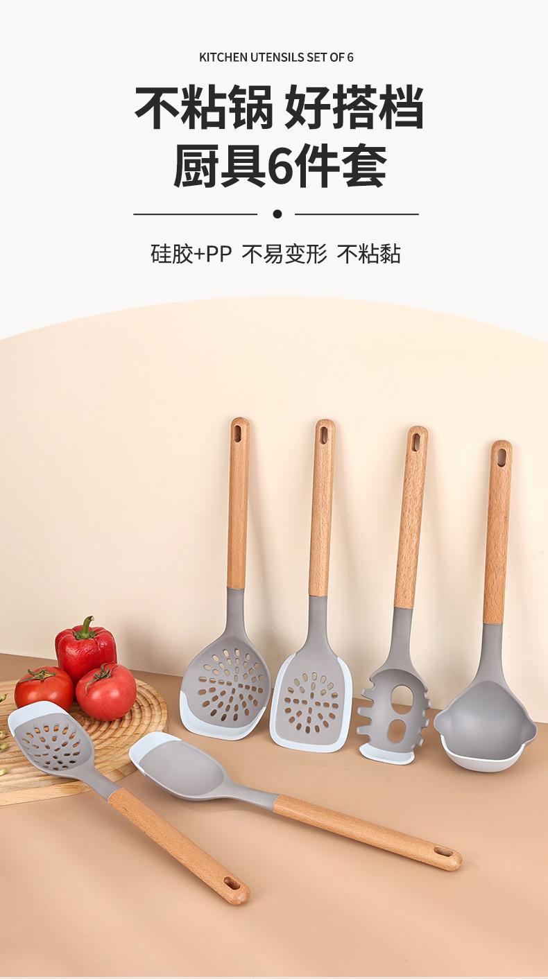 Novo Conjunto de Utensílios de Cozinha de Silicone com Cabo de Madeira 6 Peças Resistente a Altas Temperaturas Antiaderente Espátula de Silicone Concha Escumadeira Escorredor Utensílios de Cozinha