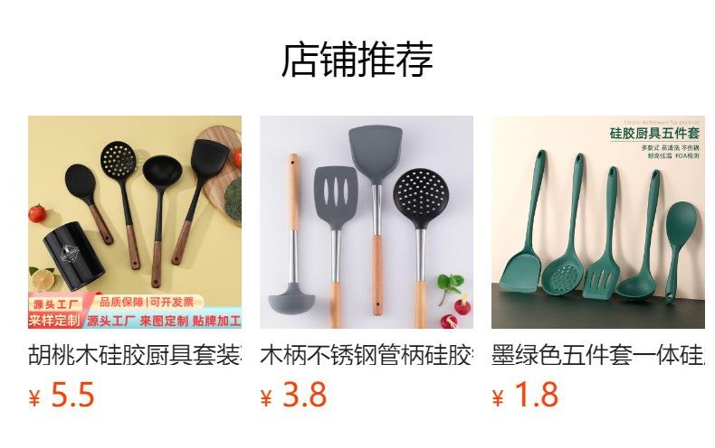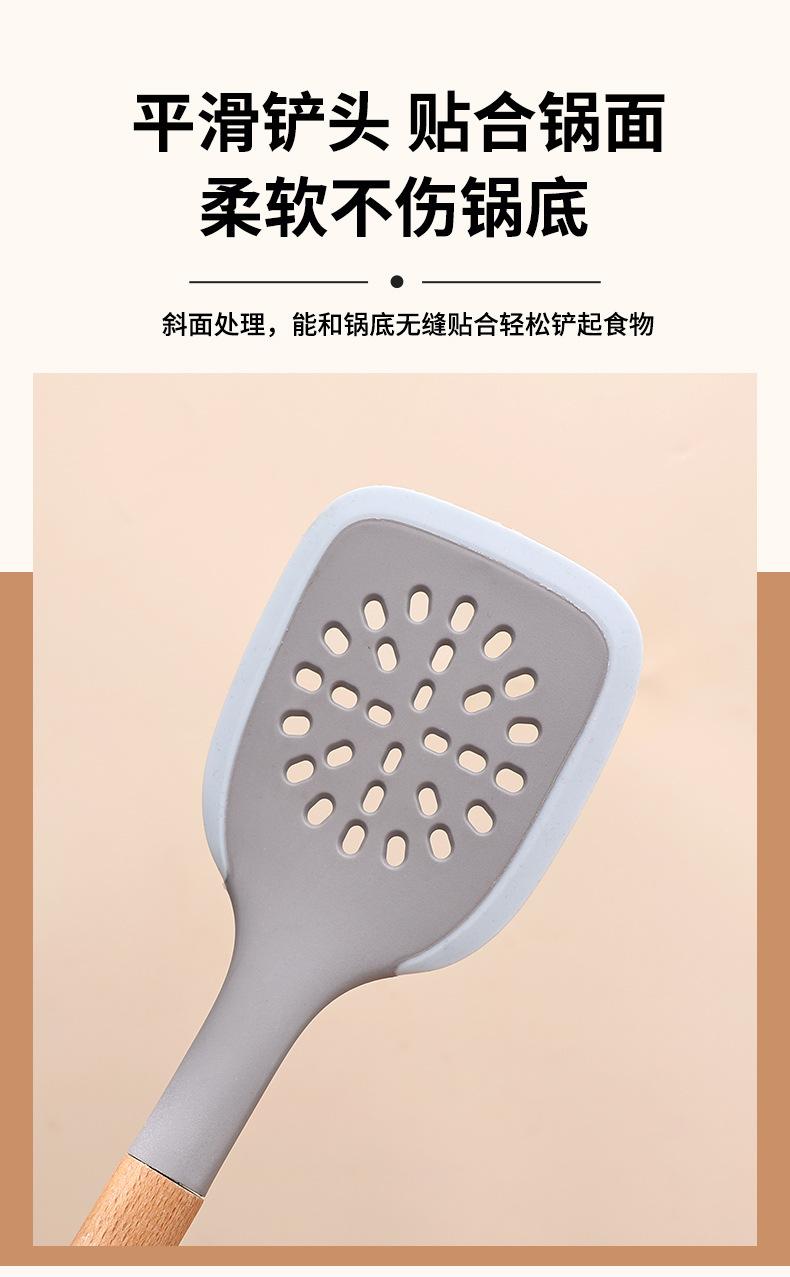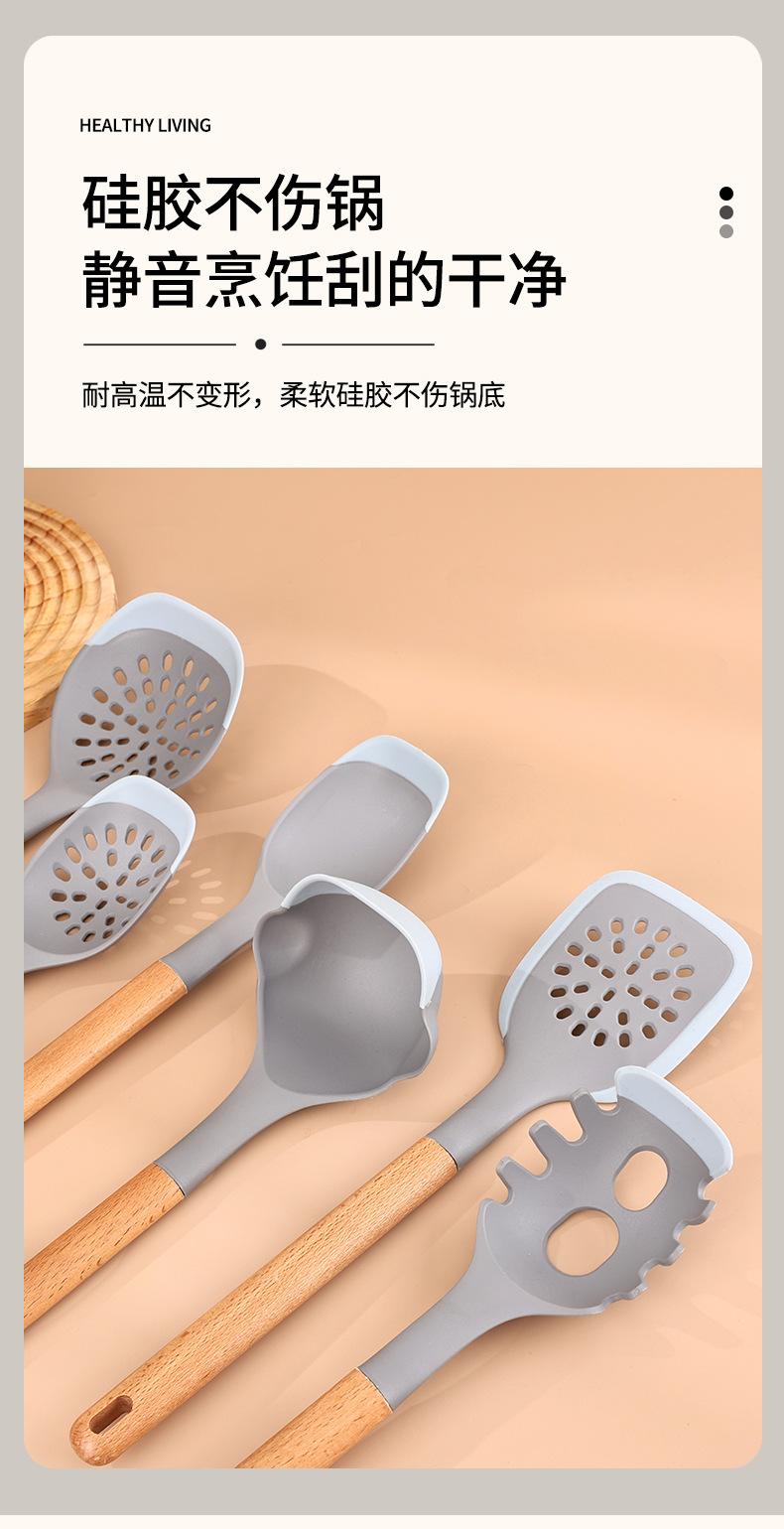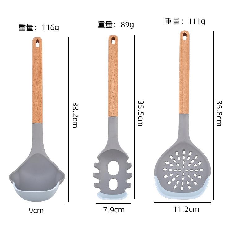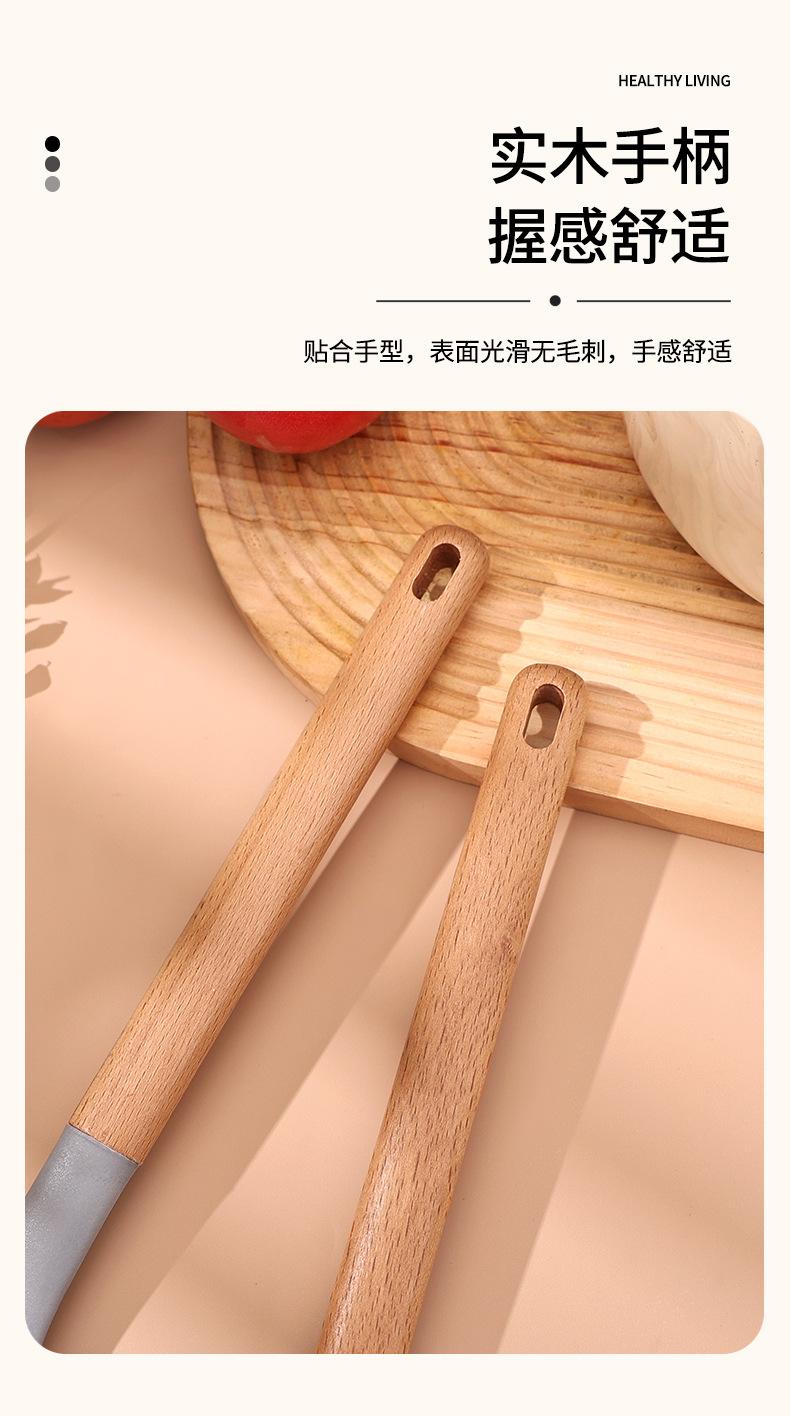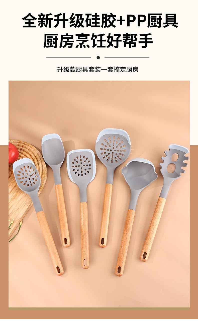 Novo Conjunto de Utensílios de Cozinha de Silicone com Cabo de Madeira 6 Peças Resistente a Altas Temperaturas Antiaderente Espátula de Silicone Concha Escumadeira Escorredor Utensílios de Cozinha