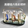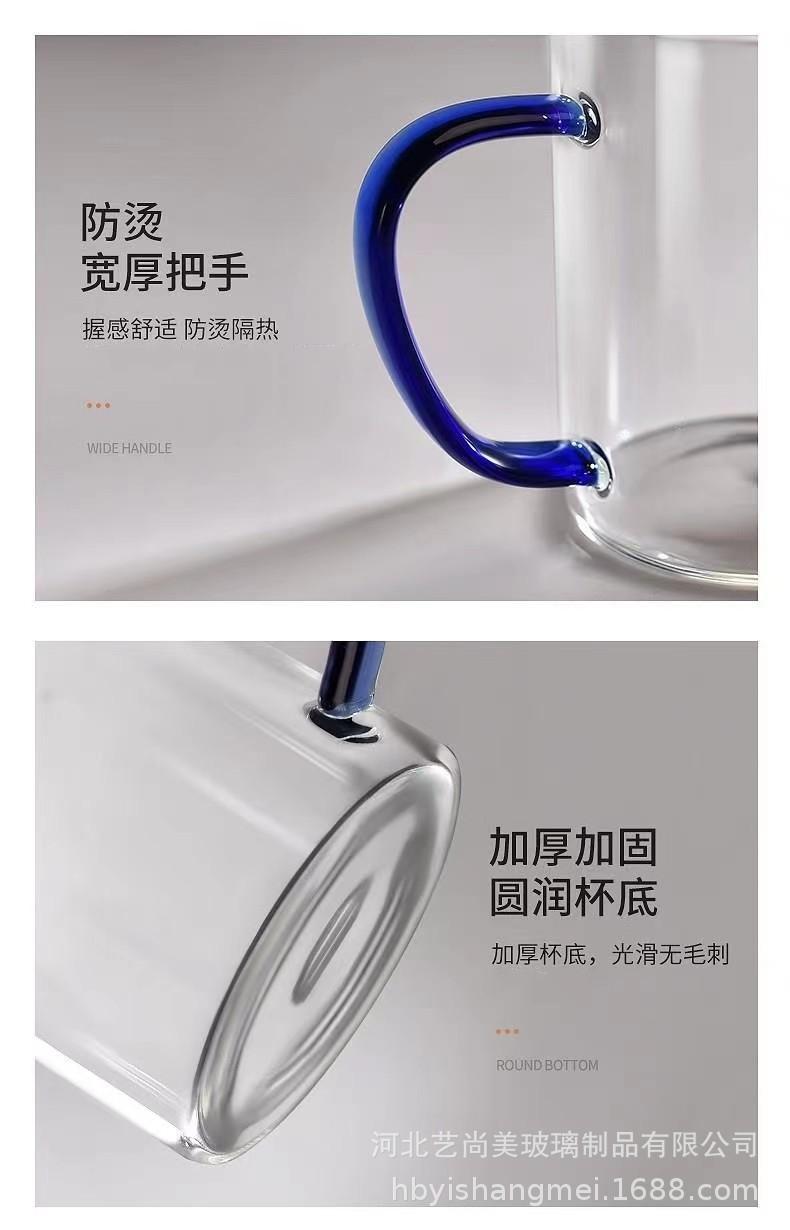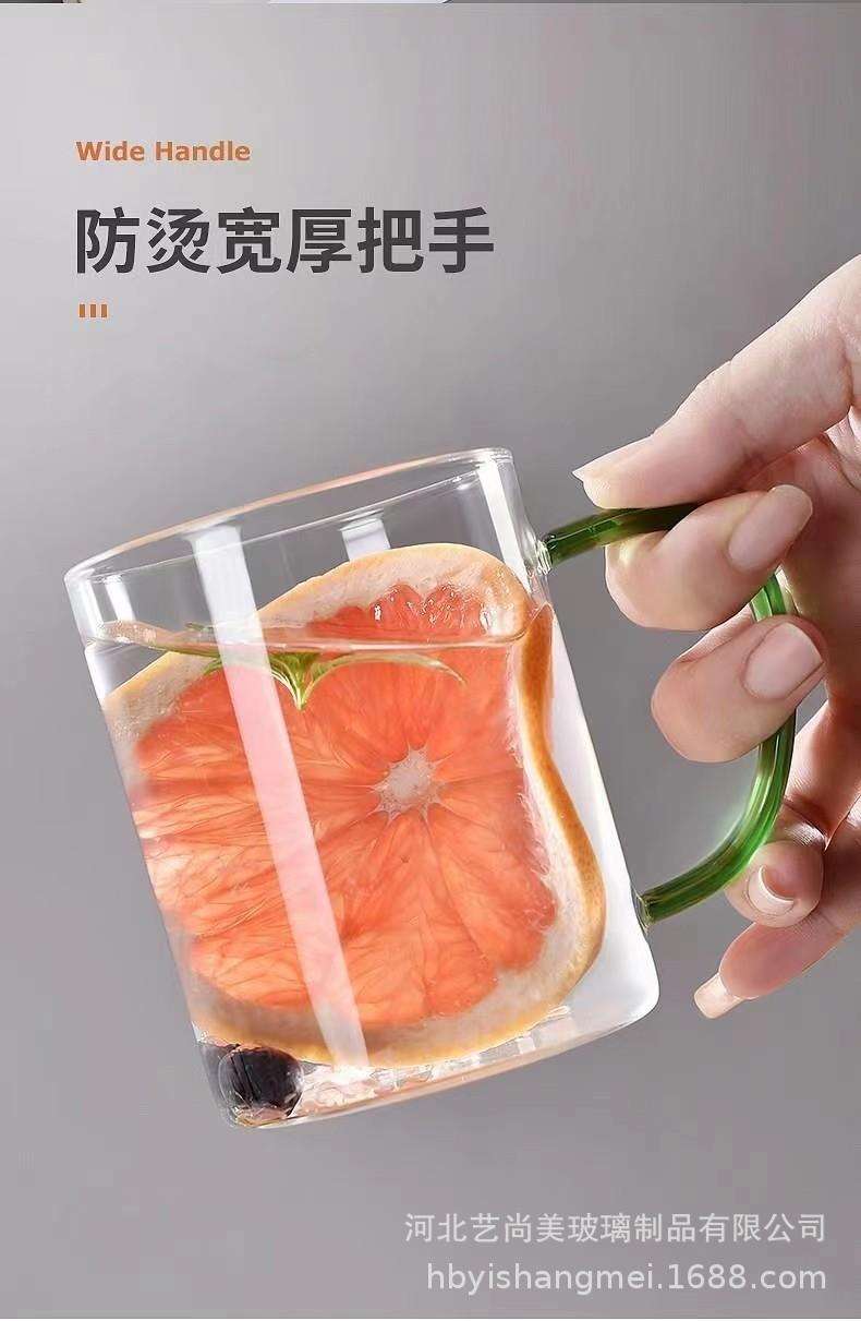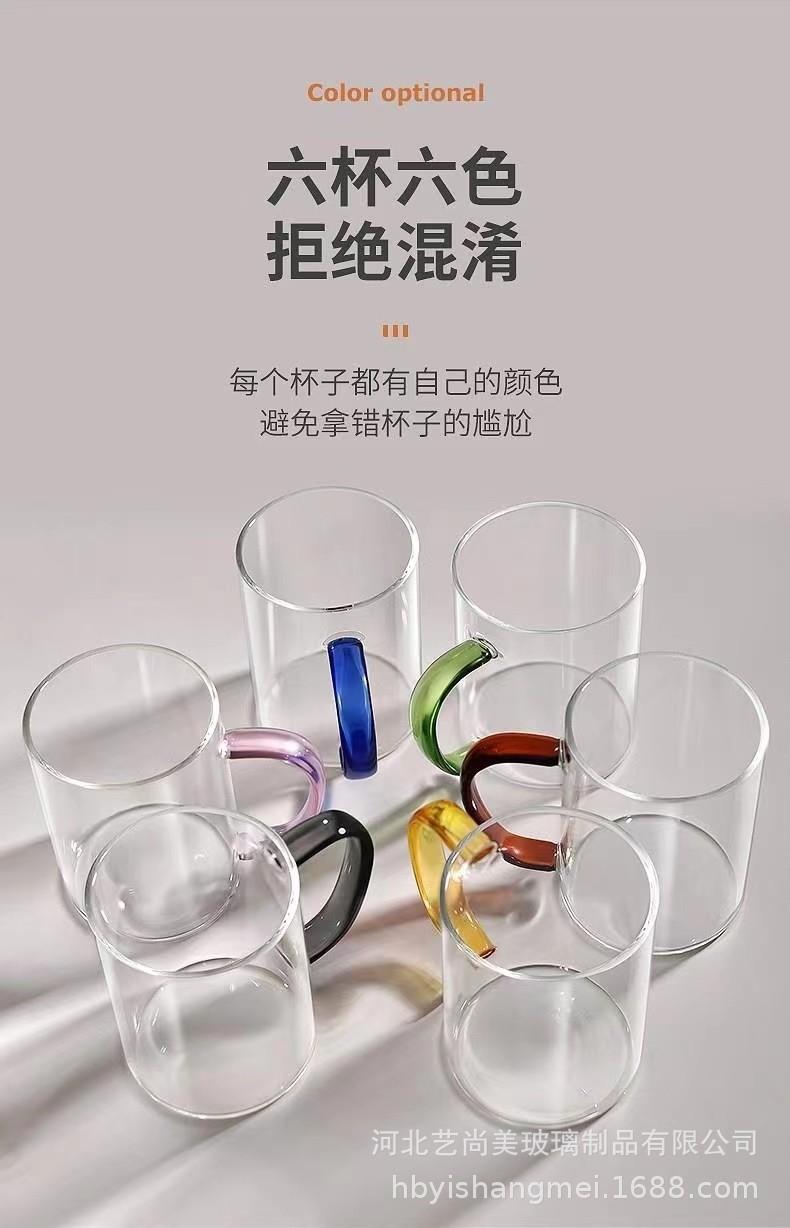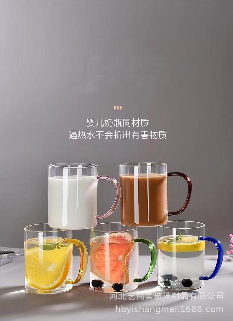 Copo de chá de vidro simples resistente ao calor com alça colorida, copo de café com leite de alto valor, copo de vidro para beber em casa