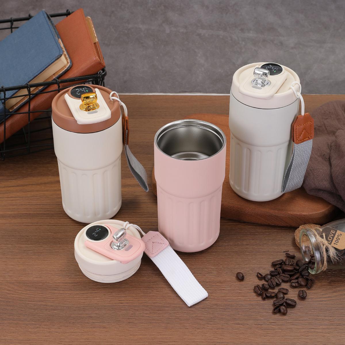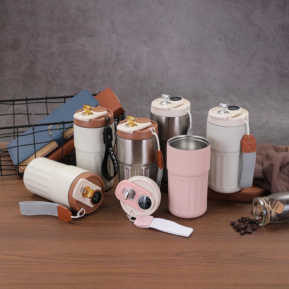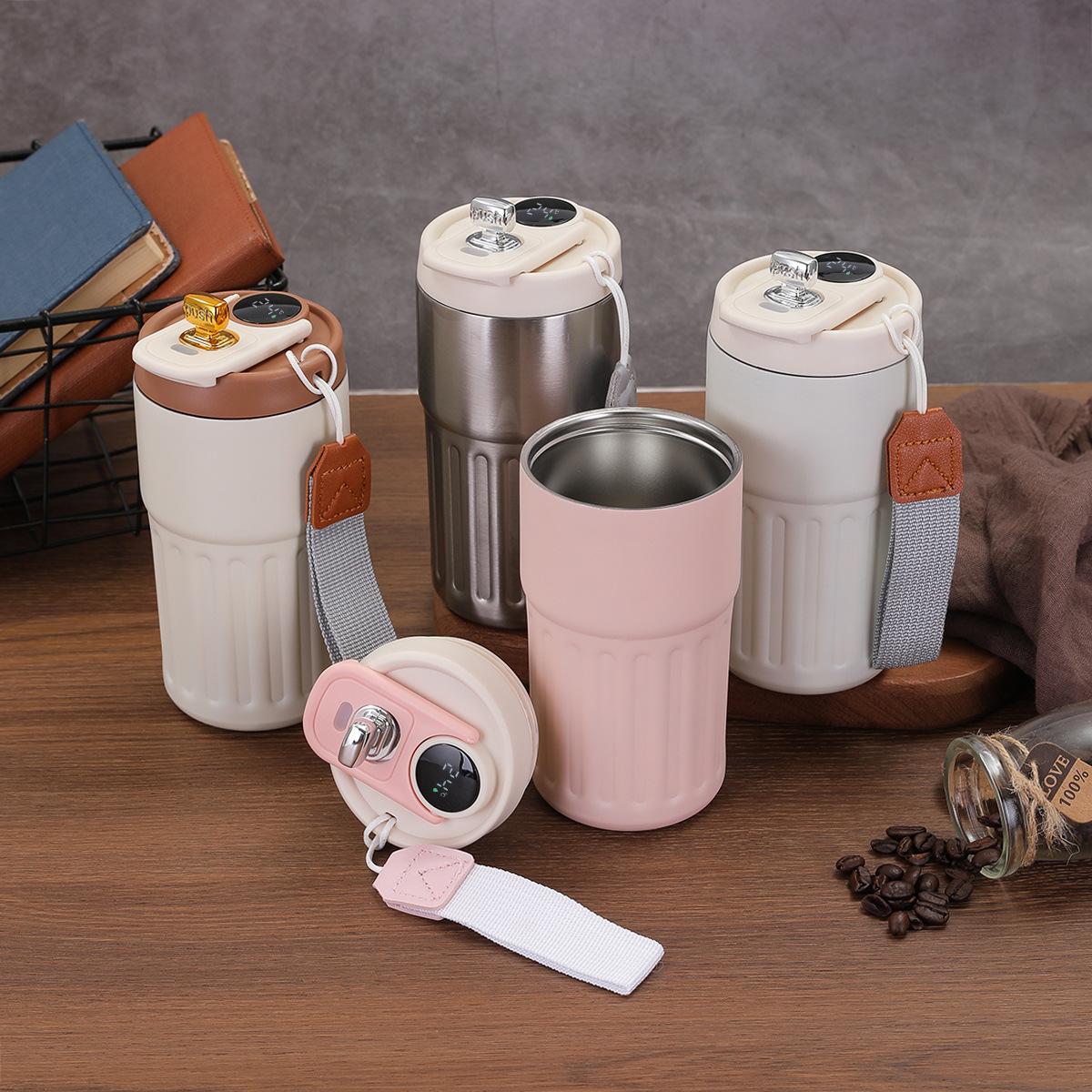 Copo de café com display inteligente de temperatura, aço inoxidável 316, copo térmico de vácuo duplo, portátil com corda, copo atacado