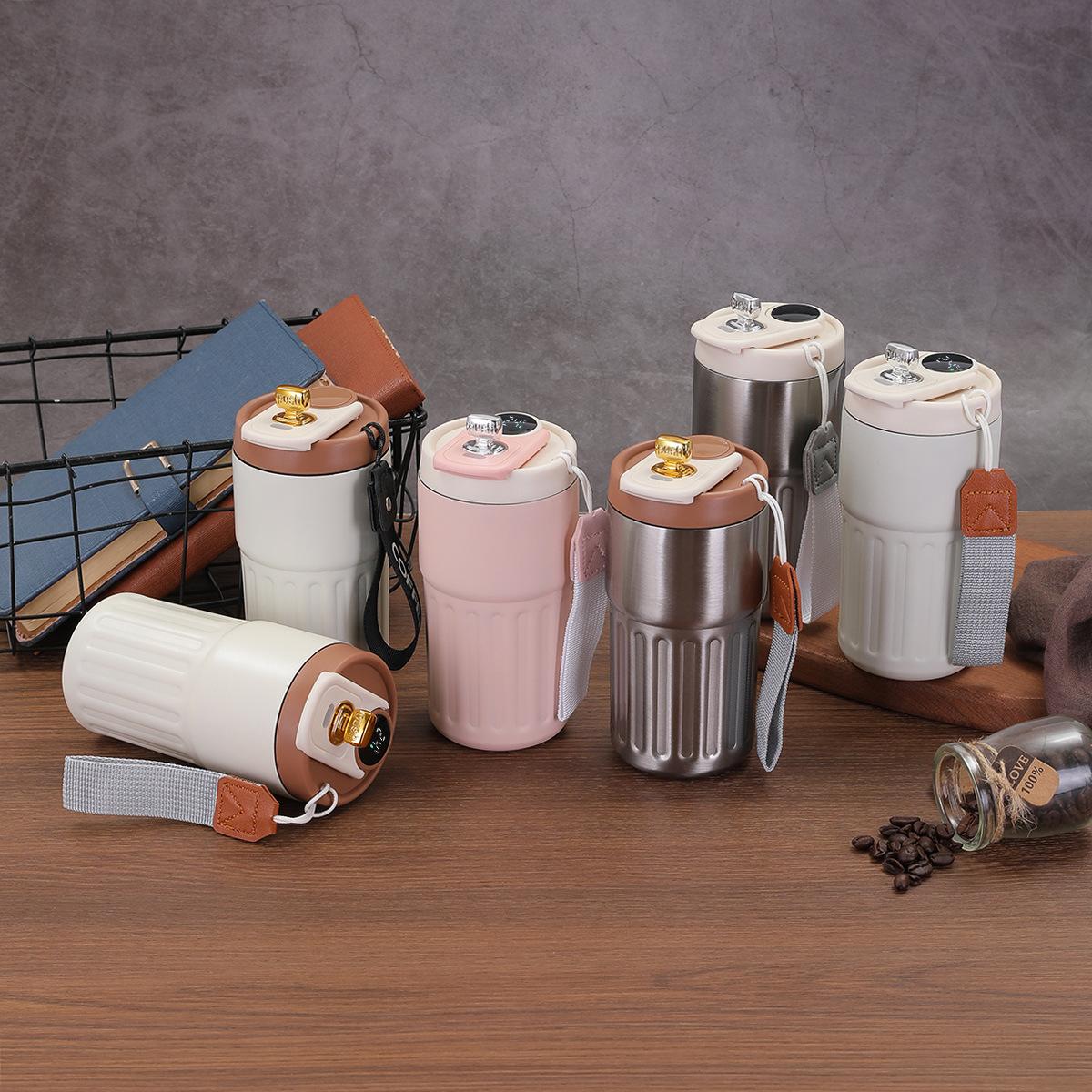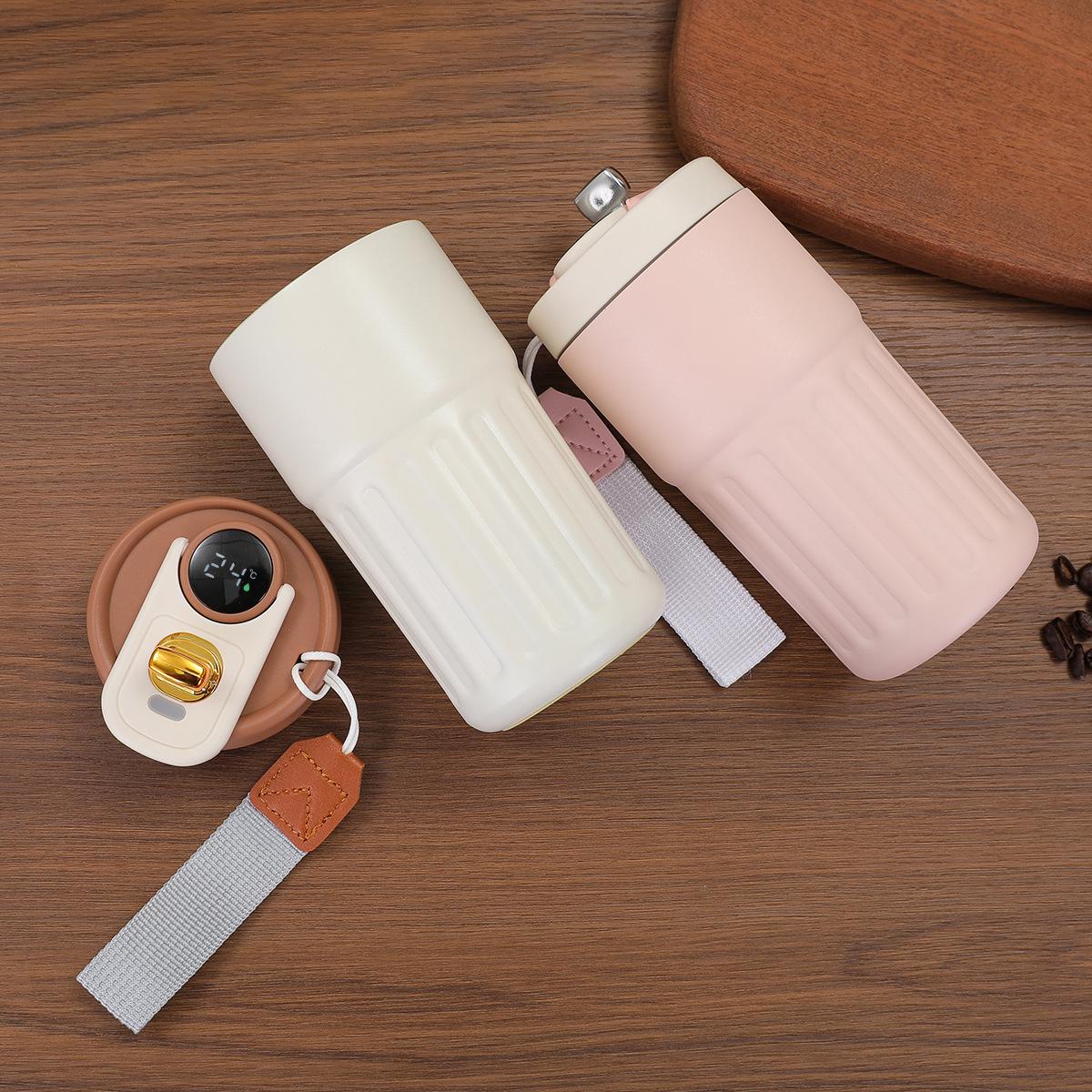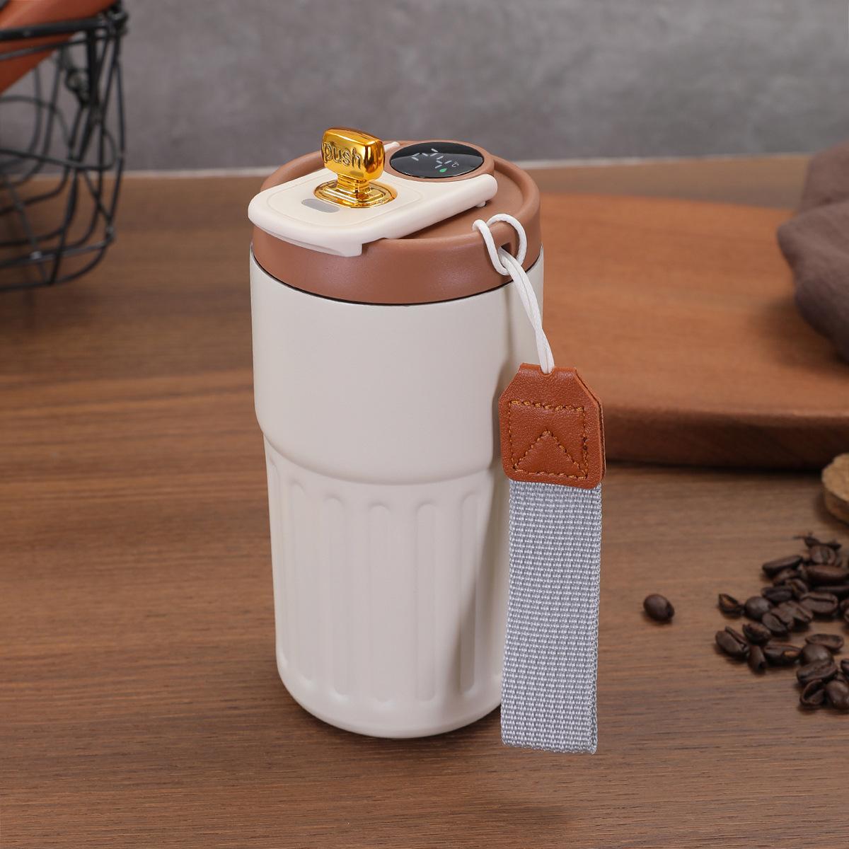 Copo de café com display inteligente de temperatura, aço inoxidável 316, copo térmico de vácuo duplo, portátil com corda, copo atacado