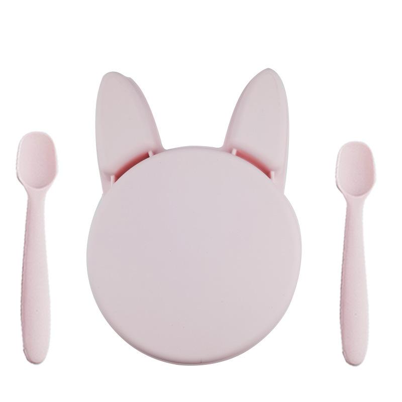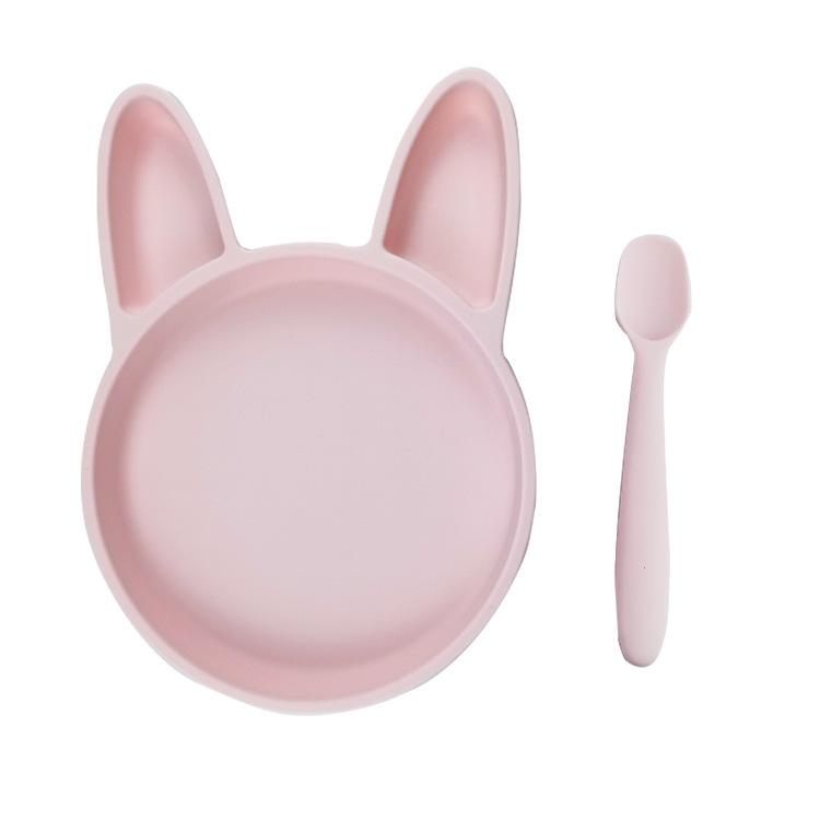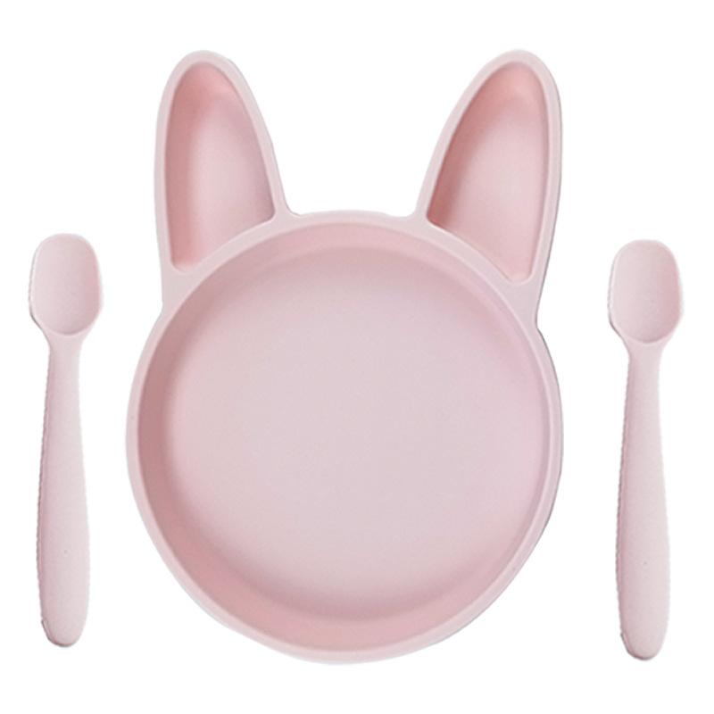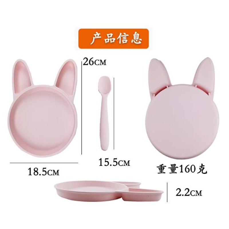 Ins Tigela especial de suplemento alimentar para bebês coreanos, colher, prato de coelho, conjunto de tapete, tigela de silicone anti-queda para crianças