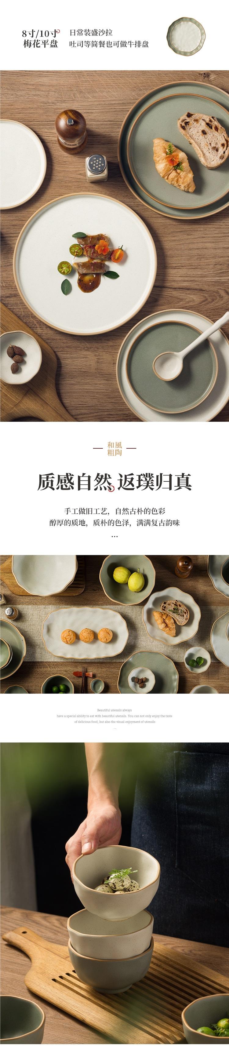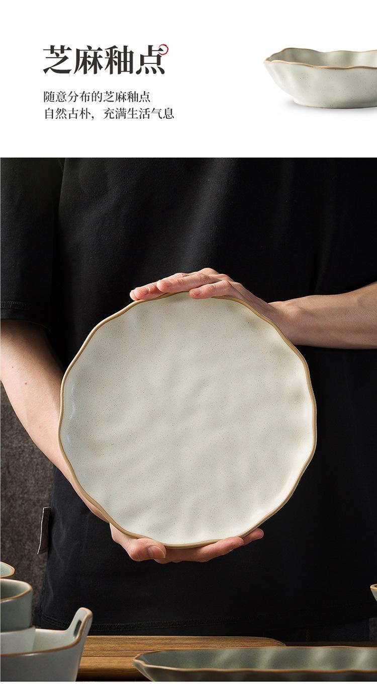 Louça de Mesa Japonesa Feita à Mão Prato Fundo Prato Grande Doméstico Prato Raso Prato de Servir Prato de Sopa de Cerâmica Prato de Arroz Retrô