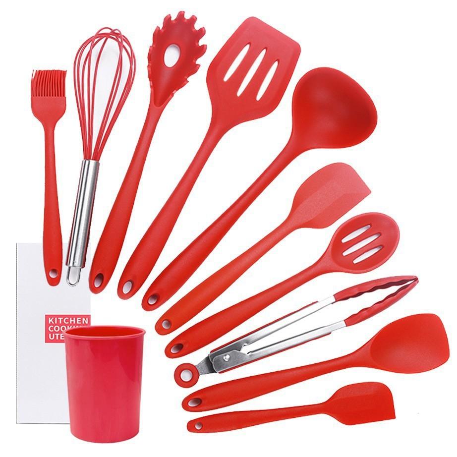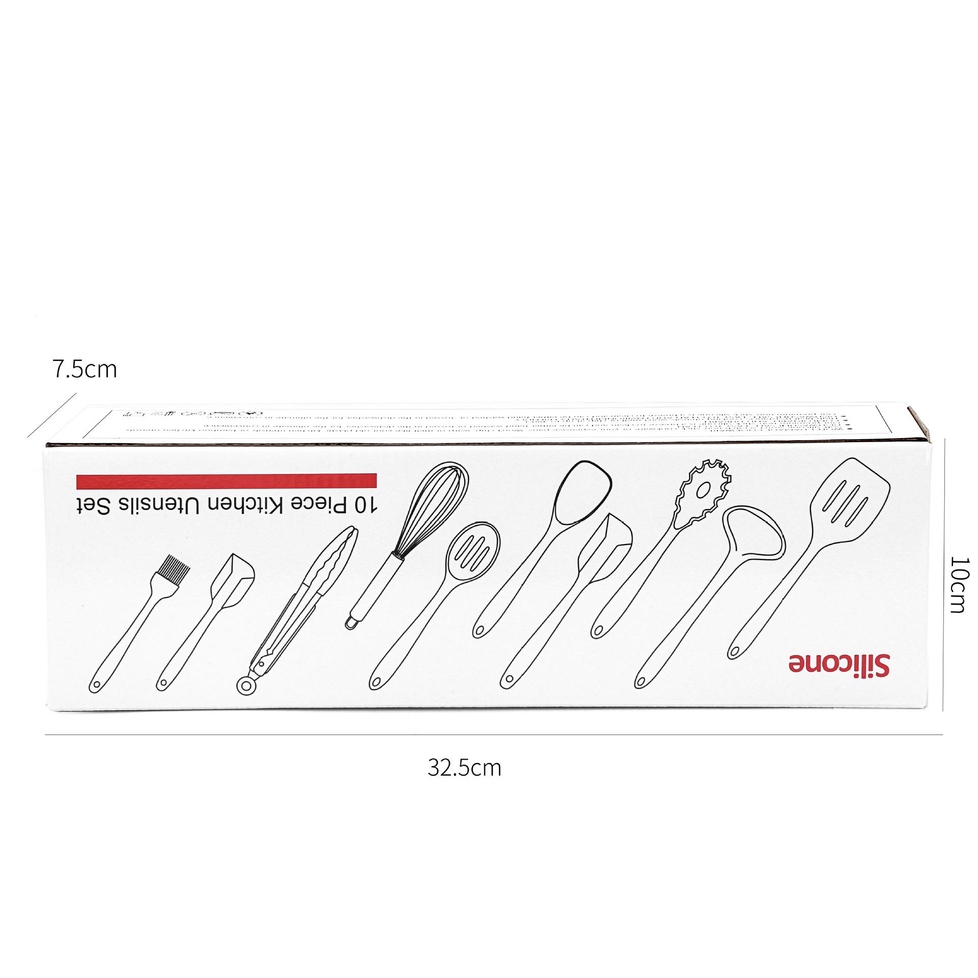 | Amazon atacado de utensílios de cozinha de silicone conjunto de 10 peças de panela antiaderente conjunto de ferramentas de cozinha utensílios de cozimento em caixa colorida |