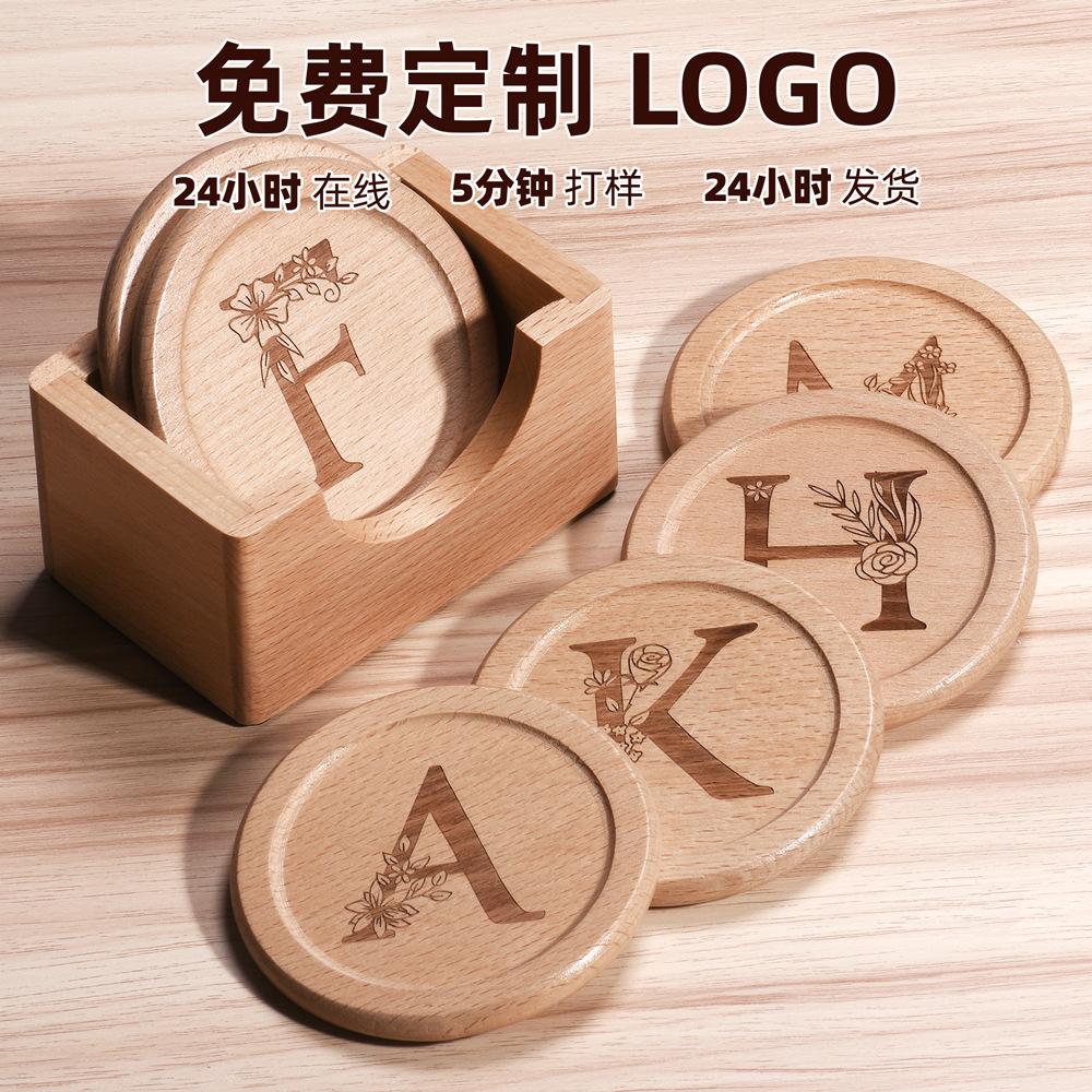 Porta-copos de Madeira Estilo Japonês Cerimônia do Chá Porta-copo para Xícara de Chá Madeira de Faia Tapete Isolante Tapete para Xícara de Chá Porta-copos com Entalhe de Logotipo