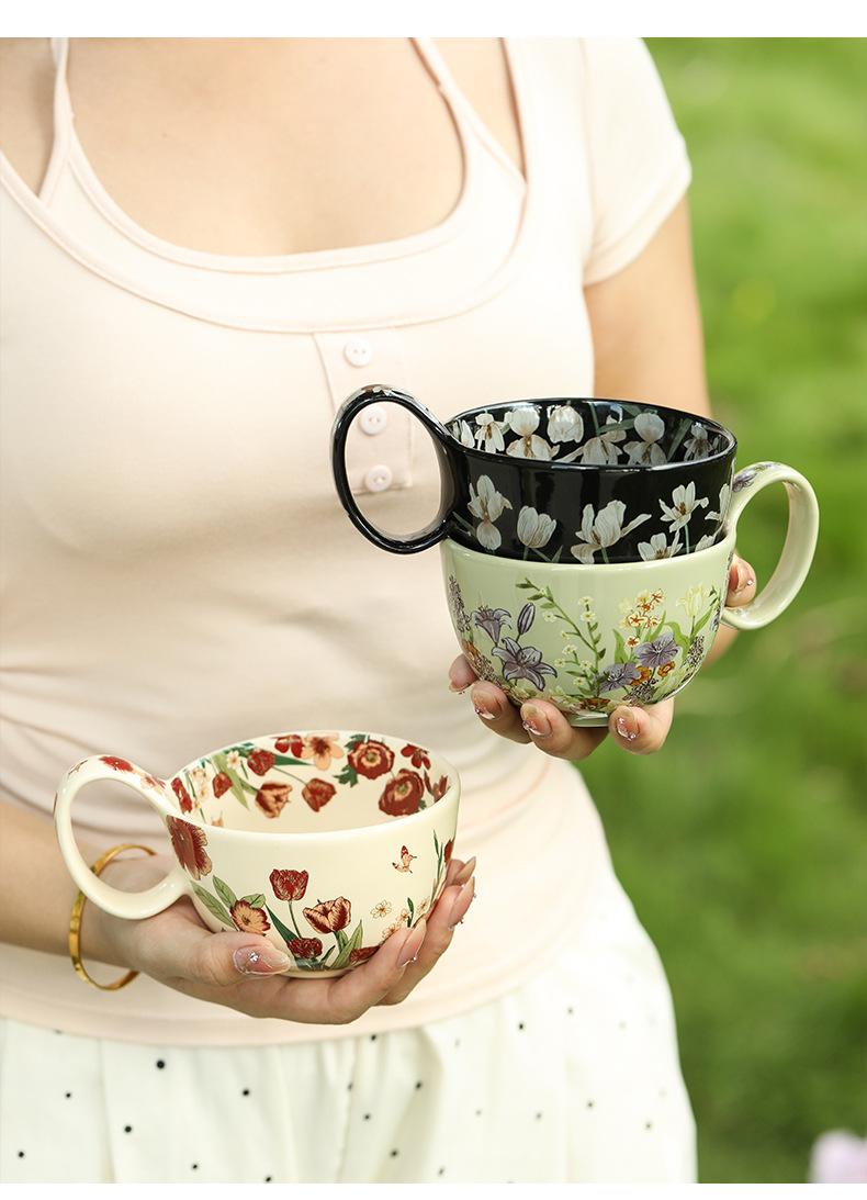 Caneca de cerâmica de alto valor, copo de grande capacidade para mulheres, copo de água doméstico com senso de design, nicho de luxo leve