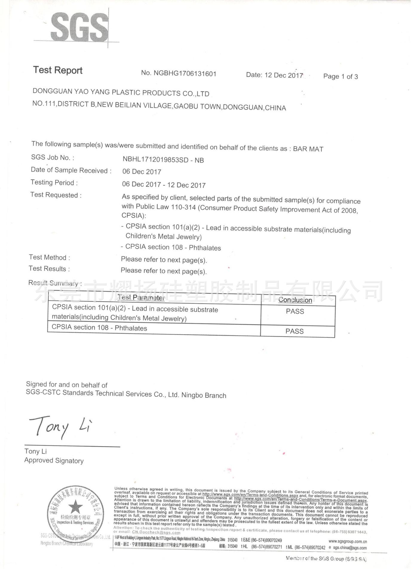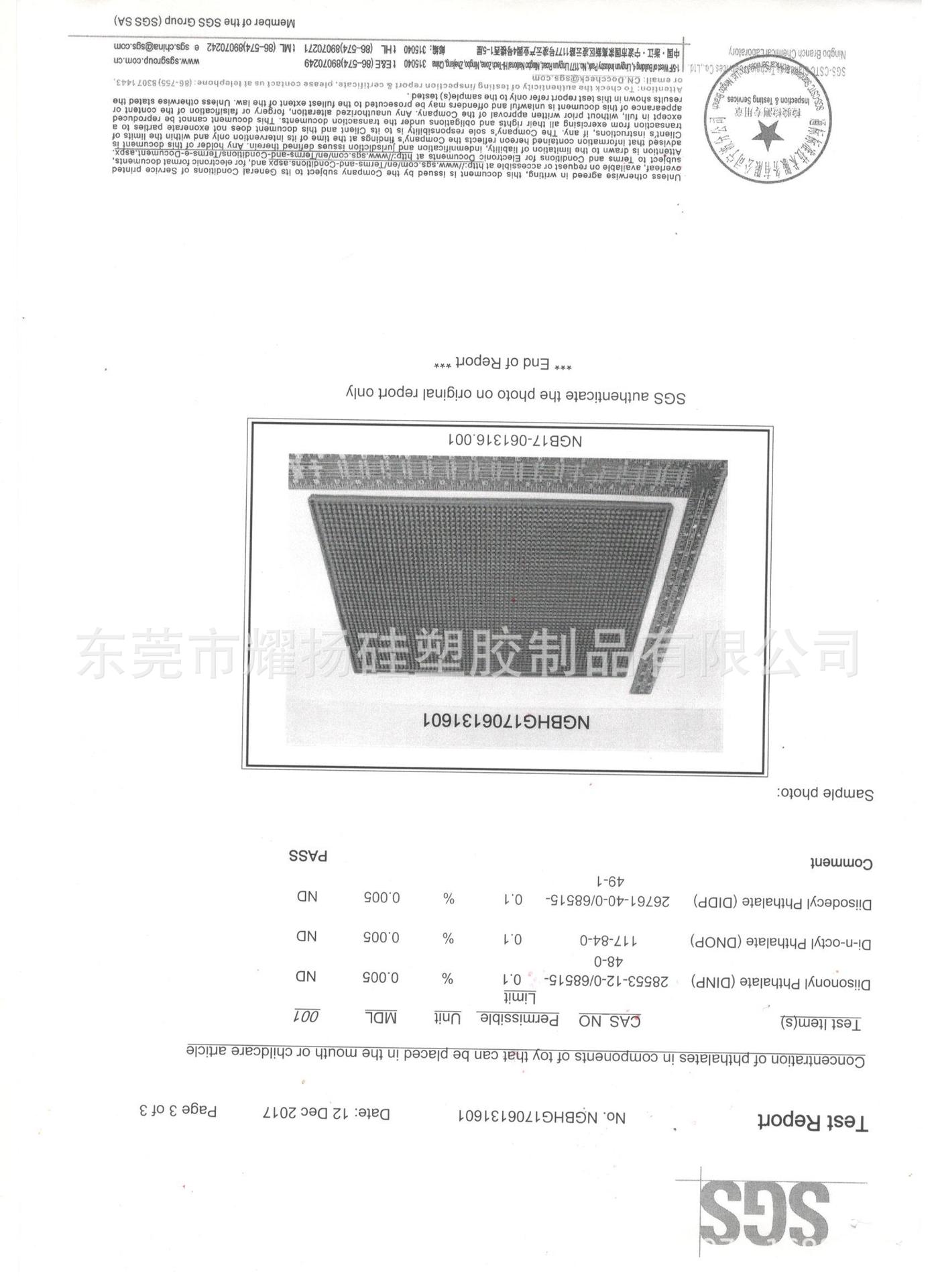 Todos os produtos produzidos por nossa empresa podem atender aos padrões de proteção ambiental: eles podem passar nos testes SGS, EN-71, elementos de cádmio e testes de proteção ambiental sem ftalatos.