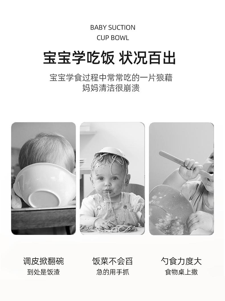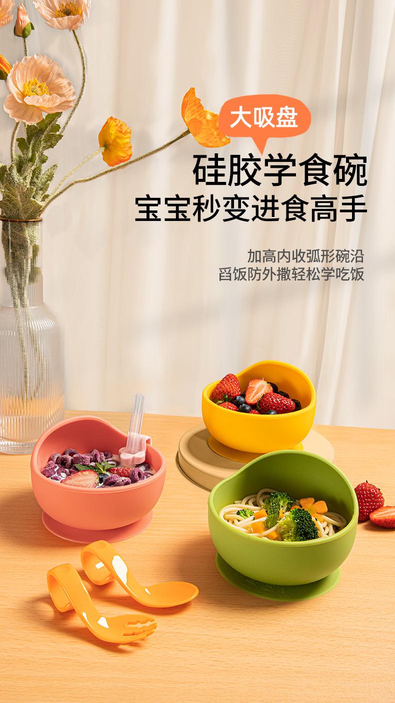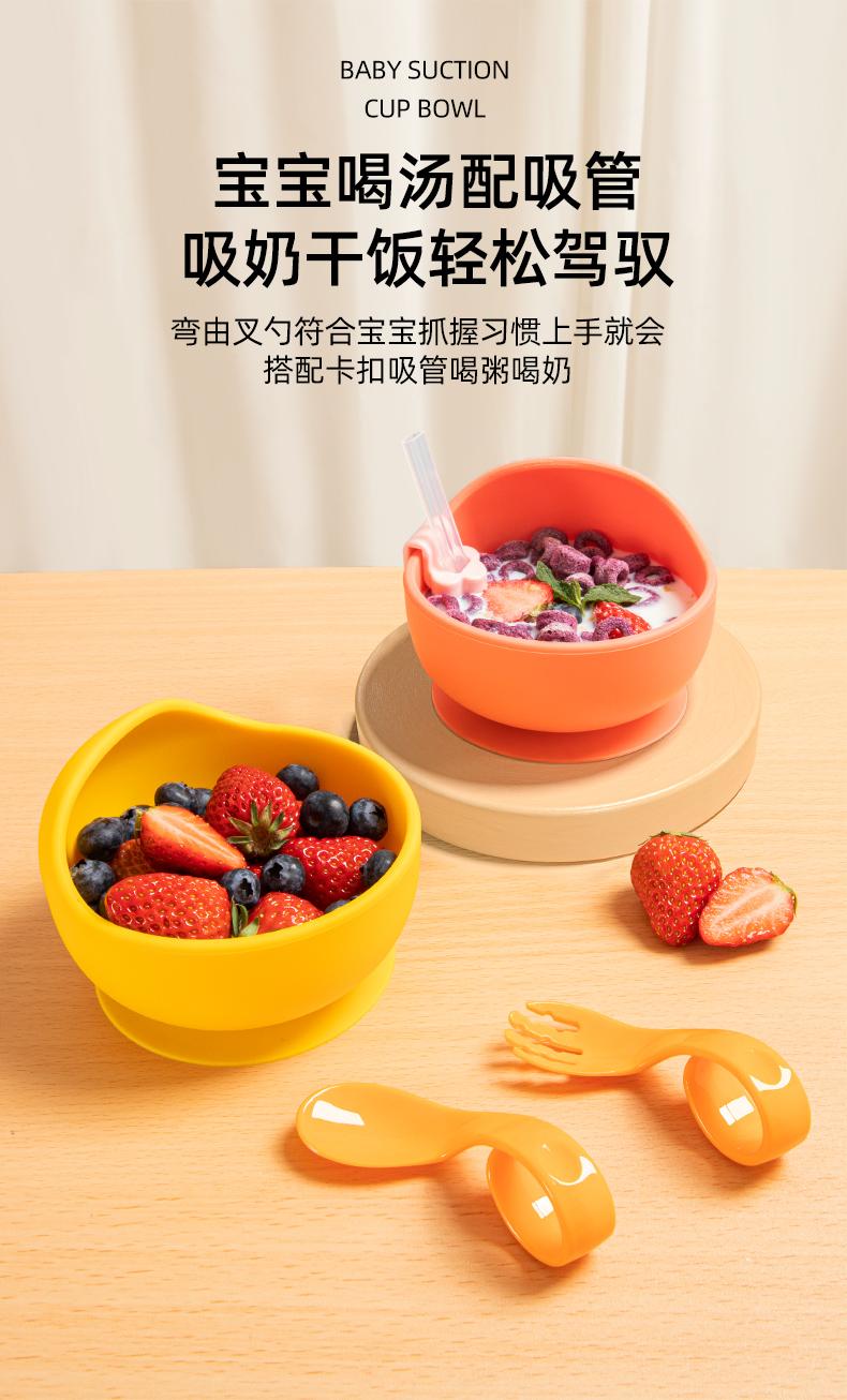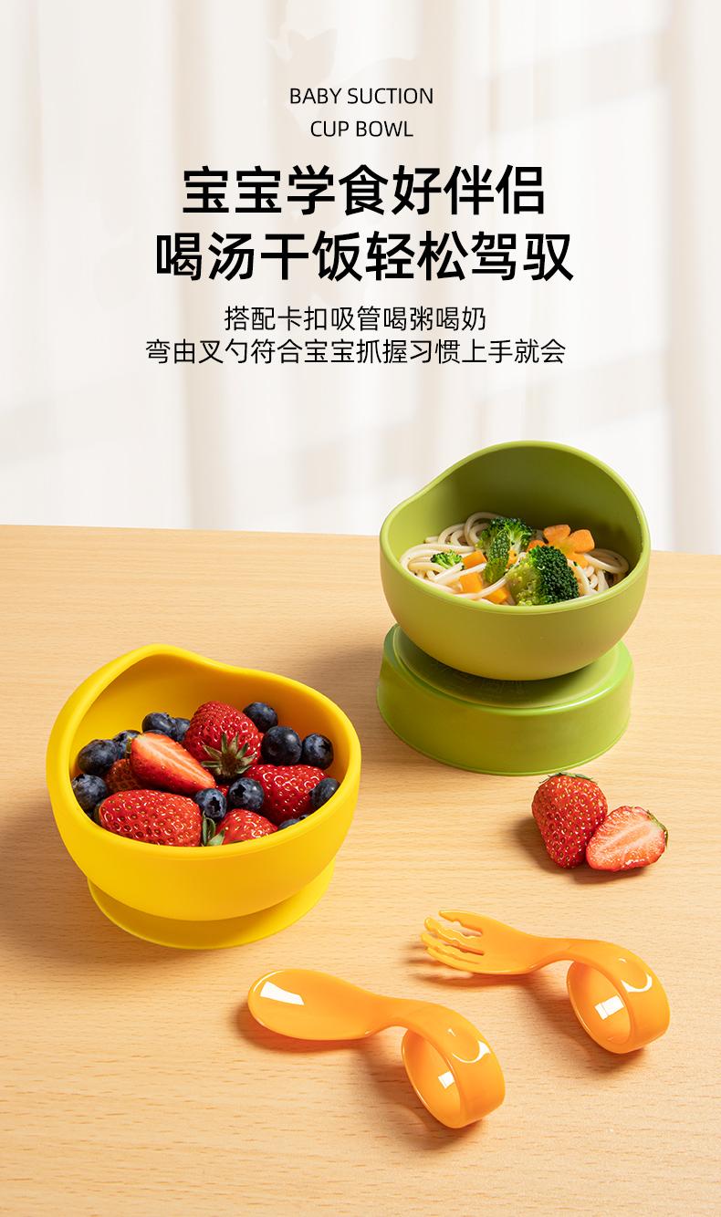 Tigela de Comida para Bebê para Bebês Aprendendo a Comer Tigela Ventosa de Silicone Integrada Anti-Escaldante Louça Infantil Tigela com Ventosa