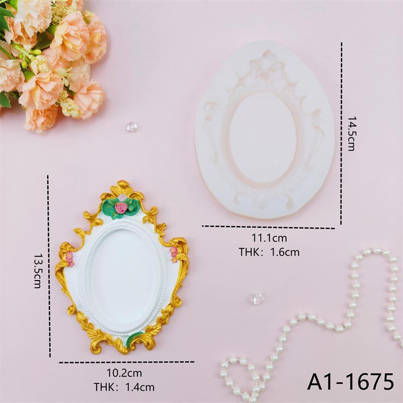Nome: Molde de Silicone para Porta-Retrato Vintage Europeu em Relevo Molde de Gesso de Resina Epóxi Molde para Ornamento de Decoração de Porta-Retrato DIY
