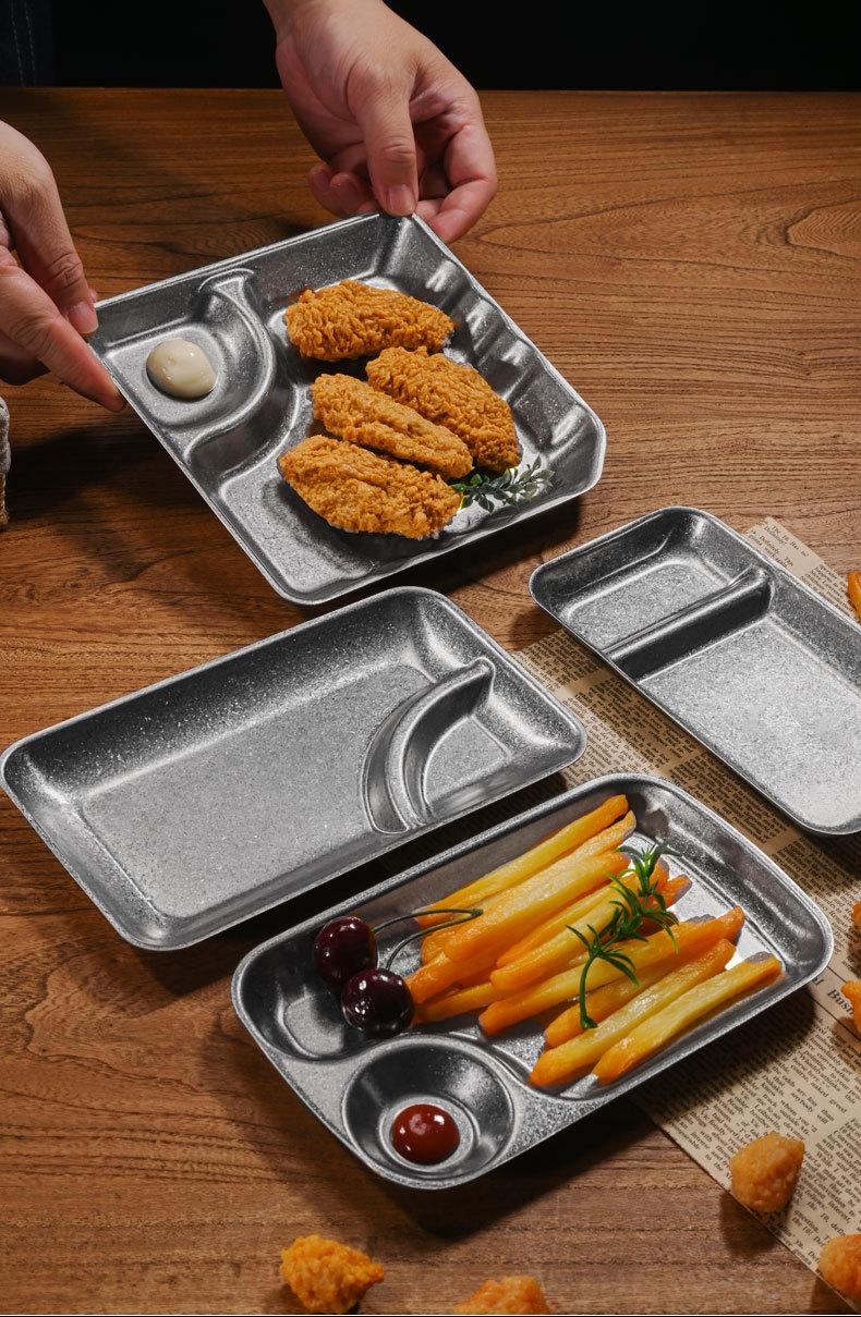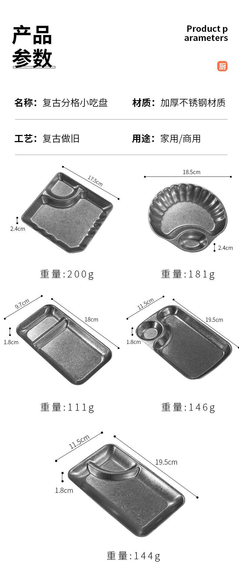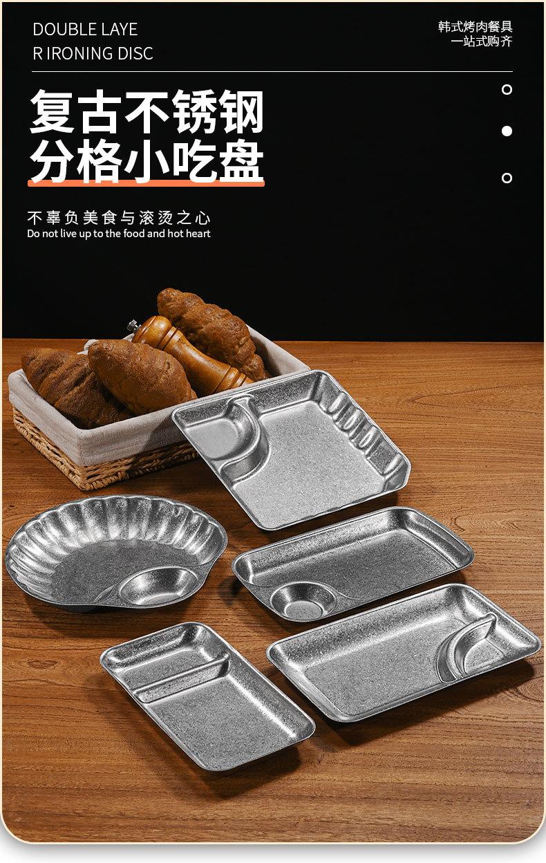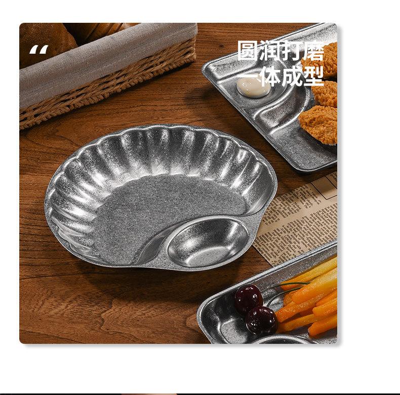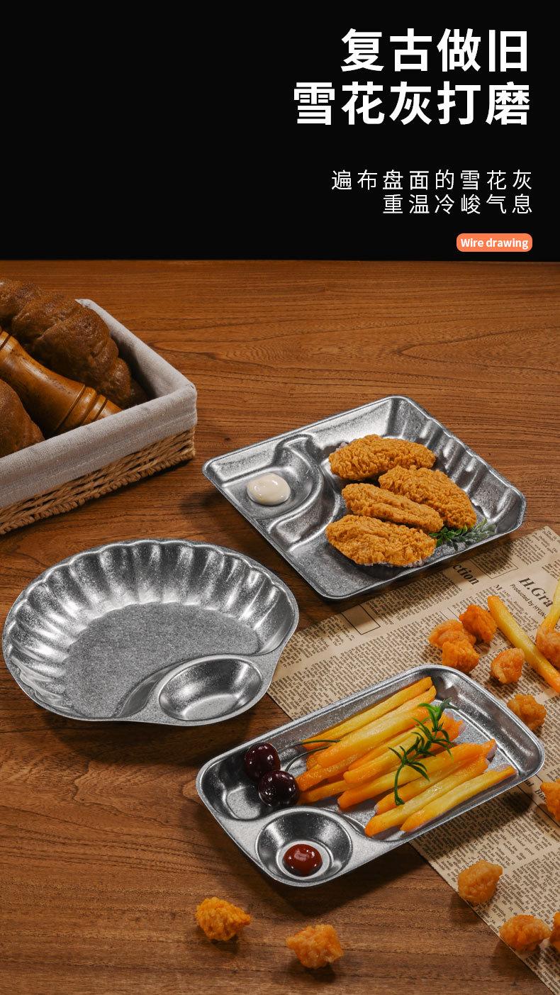 Compre Prato de Lanche Retrô de Aço Inoxidável com Compartimento para Molho Prato Concha Envelhecido Criativo Bar KTV Prato para Frango Frito Batata Frita no atacado no Joom.pro