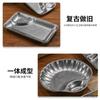 Prato de Lanche Retrô de Aço Inoxidável com Compartimento para Molho Prato Concha Envelhecido Criativo Bar KTV Prato para Frango Frito Batata Frita