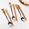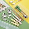 Desenho Animado Aço Inoxidável Estudante Crianças Talheres Portáteis Conjunto de Quatro Peças Estatueta Fofa Colher de Arroz Garfo de Sobremesa Hashis Faca